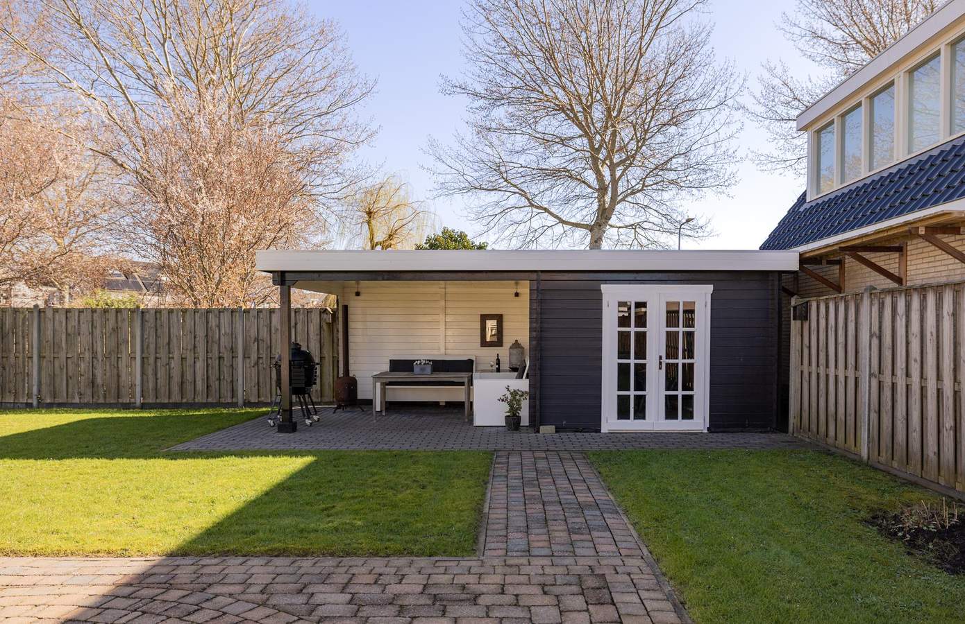 De tuin rondom de woning is een ware verrassing. Aan de achterzijde ligt een prachtig, groen perceel met diverse terrassen, een overkapping met elektra en een berging. De veranda vormt een sfeervolle buitenkamer en is een ideale plek voor borrels en barbecues. De berging is een ideale ruimte voor het opstallen van uw tuingereedschap. Doordat de tuin rondom de woning is gelegen, geniet u hier de gehele dag van de zon. De tuin is goed onderhouden en voorzien van diverse beplating die zich door het jaar heen laten zien.