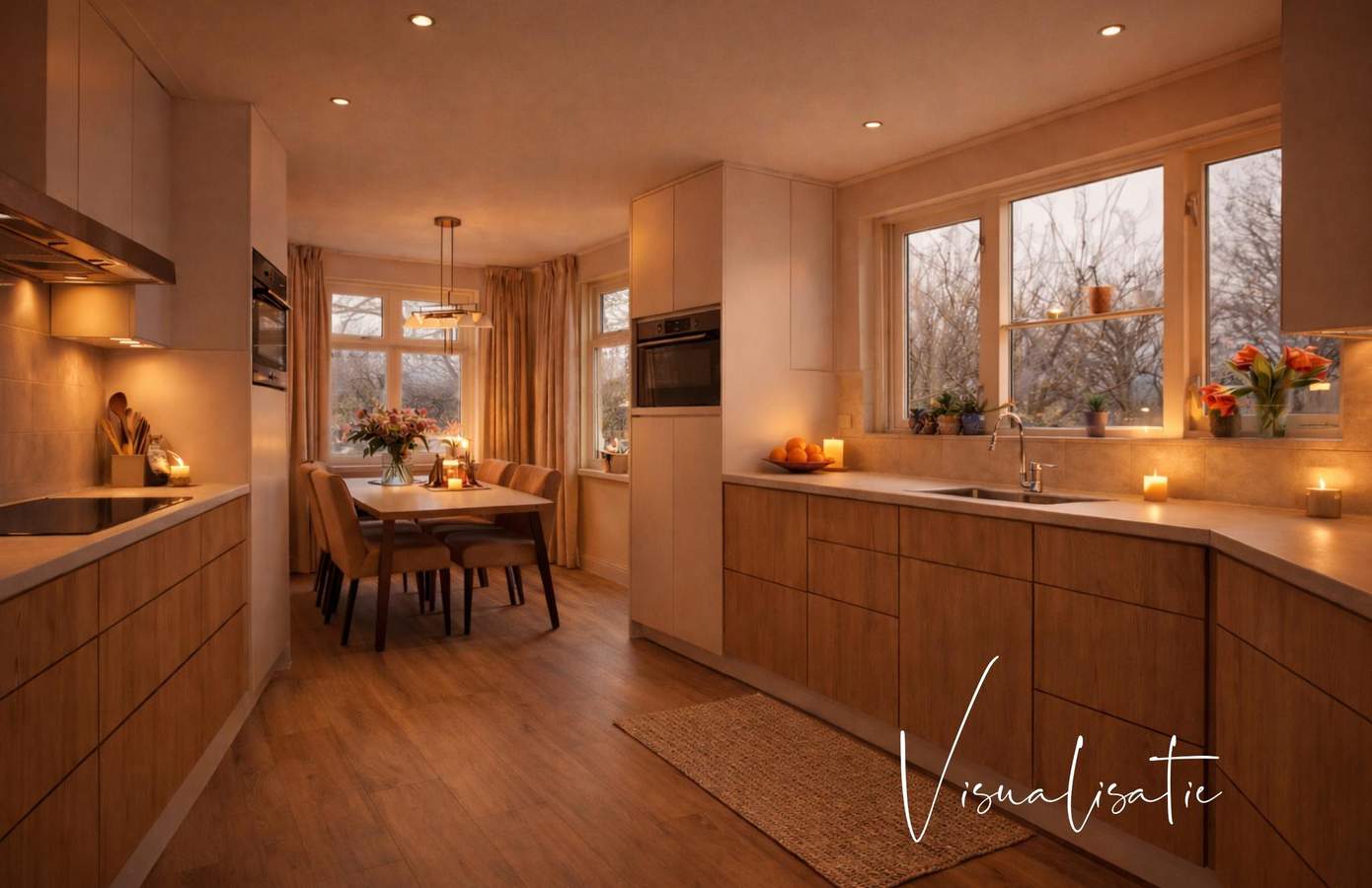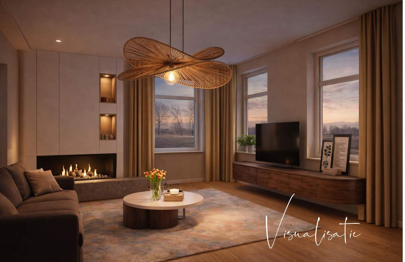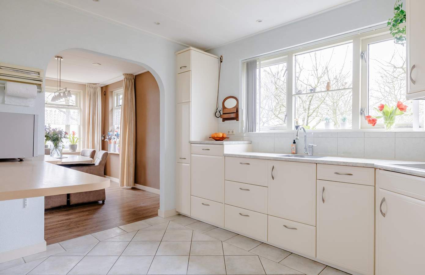 De woning is praktisch ingedeeld, met het dagelijks wonen grotendeels op de begane grond. Vanuit de entree komt u in de woonkamer, waar grote raampartijen zorgen voor veel licht en een vrij uitzicht over het omliggende landschap. De eethoek en keuken sluiten hier op aan en bieden zicht op het erf en de buitenruimte. Een belangrijk pluspunt is de slaapkamer op de begane grond, gecombineerd met de badkamer, wat gelijkvloers wonen mogelijk maakt. Op de verdieping bevinden zich drie slaapkamers en bergruimte. De woning is degelijk gebouwd, beschikt over geïsoleerde gevels en is voorzien van 12 zonnepanelen.
