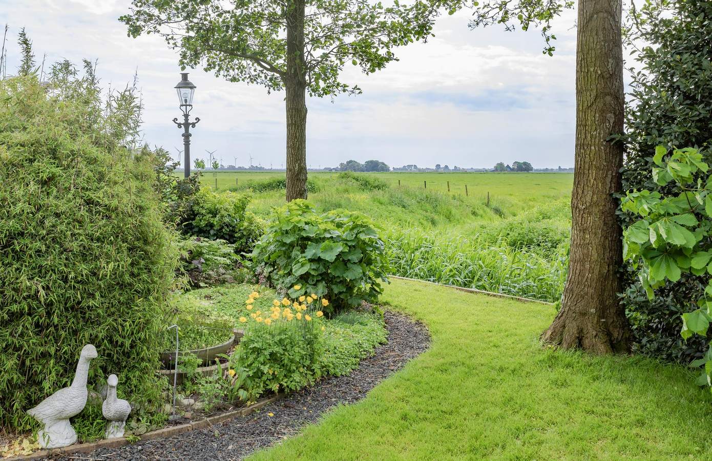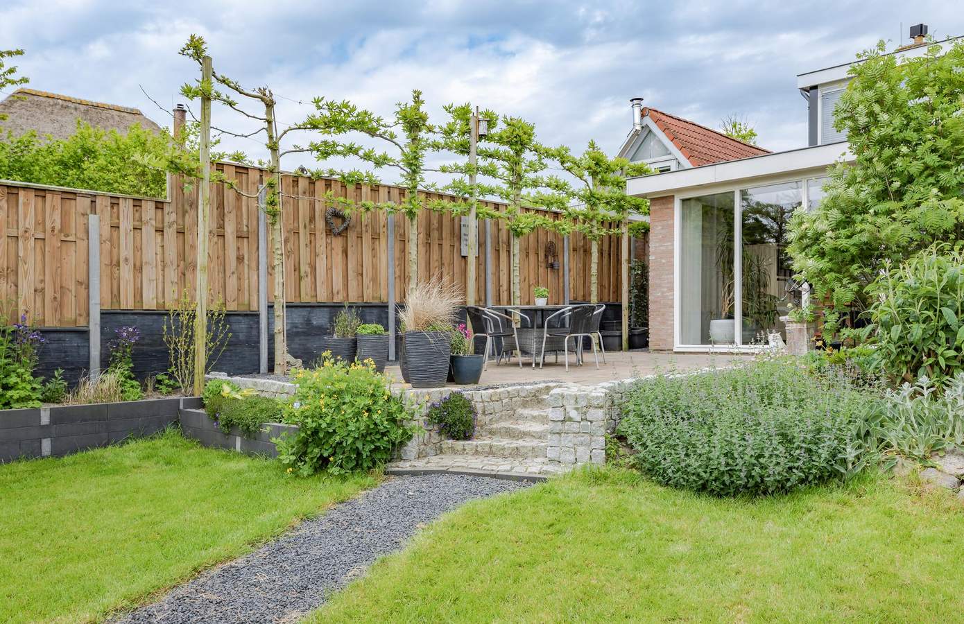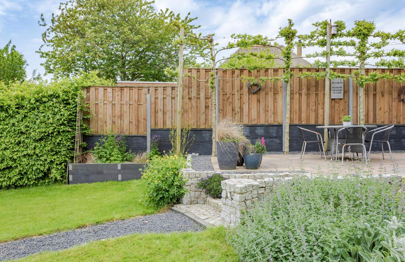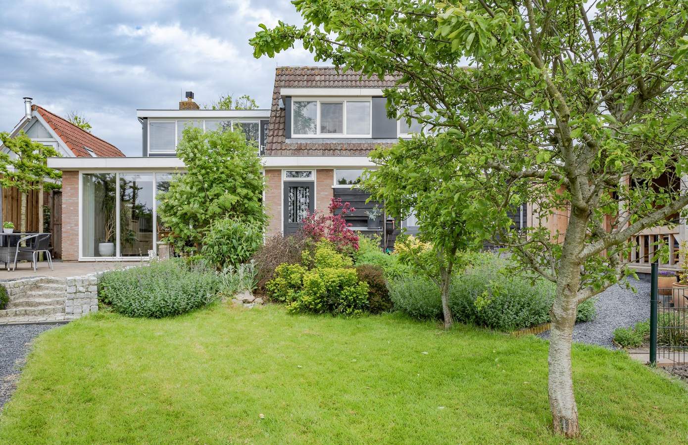 De tuin heeft een paar leuke verrassingen. Zo vindt u hier onderandere een kas en een grote veranda met bergruimte. Aangrenzend aan de woning is een inpandig te bereiken garage en u heeft genoeg ruimte op de parkeerplaats naast het huis om uw auto(’s) te parkeren. De tuin is volledig besloten en ligt aan het water. Het is mooi aangelegd met vele vaste planten. In 2021 is de veranda met aangrenzende berging gebouwd.