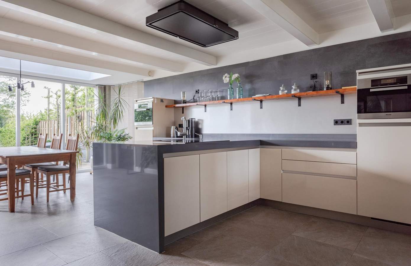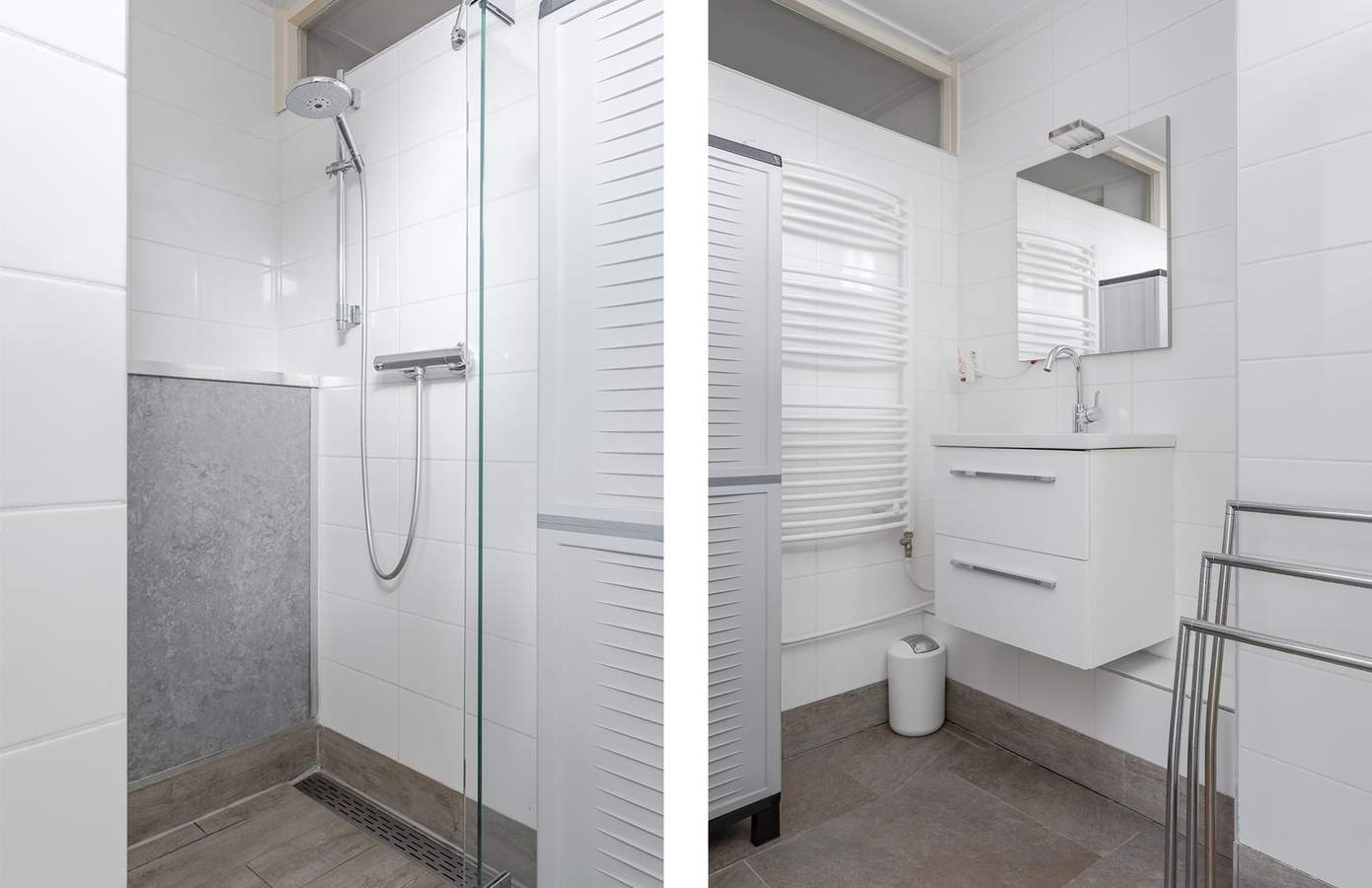 De moderne keuken is voorzien van een inductiekookplaat, koel-vriescombinatie, apothekerskast, vaatwasser, stoomoven, modern afzuigkap en combimagnetron. Er is op de begane grond een aparte doucheruimte met wastafel én wasmachine aansluiting. De gehele benedenverdieping is voorzien van vloerverwarming.