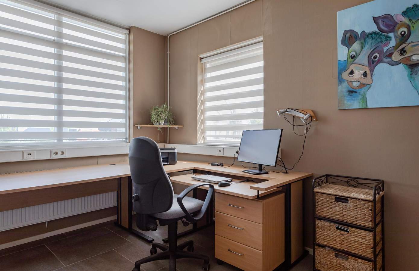 De bovenste verdieping beschikt over drie ruime slaapkamers en een badkamer met douche, toilet en urinoir. De kamers zijn licht en ruim, en bieden eveneens een prachtig uitzicht over de landerijen. Als u de mogelijkheid wilt hebben om thuis te werken, is deze woning ideaal, want grenzend aan de woonkamer bevindt zich een ruim kantoor. Beneden is er nog een extra doucheruimte gerealiseerd.