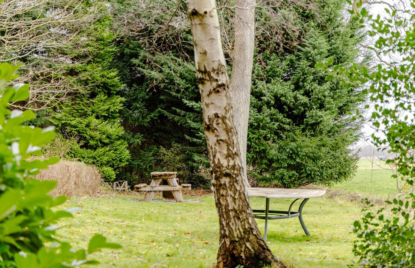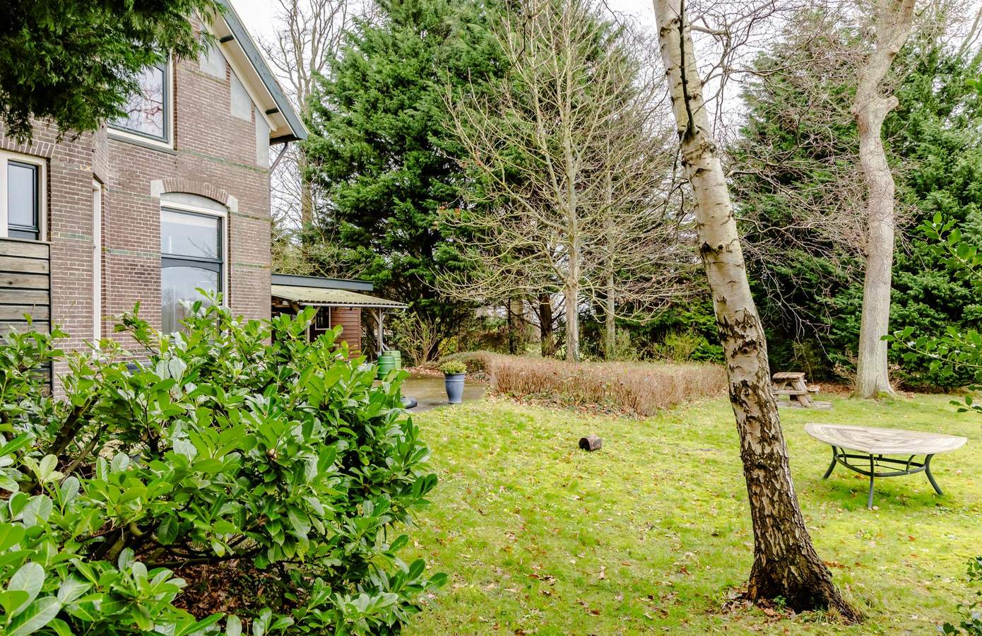 De tuin rondom de woning vormt een natuurlijk verlengstuk van het huis. Aan de voorzijde geniet u van de beschutting en het groen langs de Herenweg, terwijl de achterzijde zich opent naar het polderlandschap. Hier zorgen hoge, volwassen bomen voor een natuurlijke erfafscheiding en een groot gevoel van privacy.