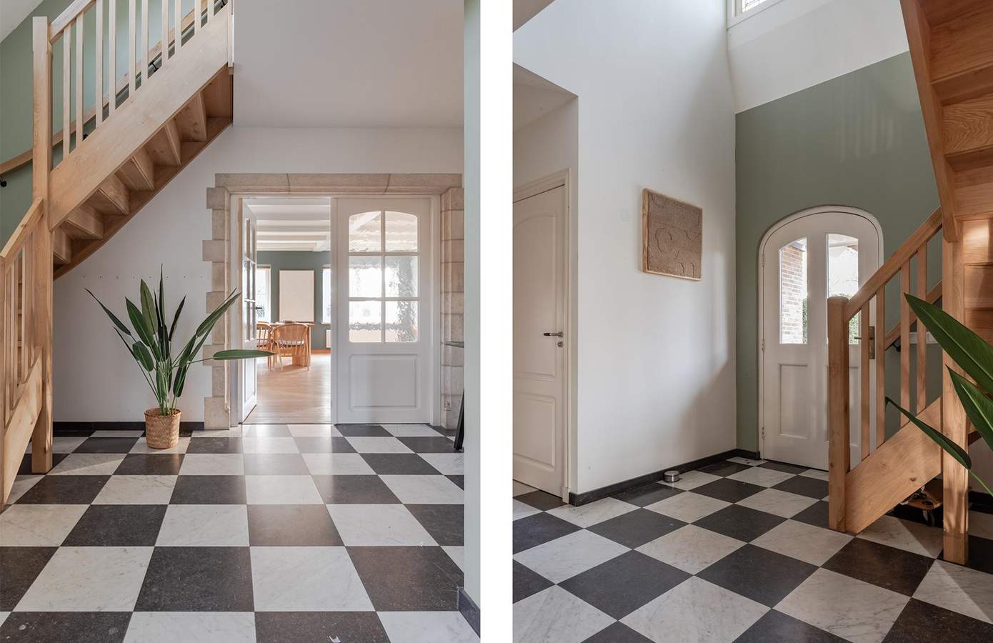 Een imposante hal met hoog plafond, glas-in-loodramen en een elegante vide verwelkomt u op stijlvolle wijze. Via dubbele deuren betreedt u de royale woonkamer, omgeven door grote ramen die zorgen voor een overvloed aan natuurlijk licht. De begane grond is prachtig afgewerkt met een parketvloer van Canadees hardhout. De robuuste, massieve schouw met houthaard vormt de absolute eyecatcher in de woonkamer. De woonkamer loopt naadloos over in de riante woonkeuken, waar een sfeervolle serre zorgt voor een prachtige verbinding tussen binnen en buiten. Vanuit de keuken en diverse delen van de woonkamer bieden dubbele openslaande deuren directe toegang tot de tuin. Daarnaast beschikt de begane grond over een praktische bijkeuken en een riante slaapkamer of kantoor voorzien van openslaande deuren naar buiten. Vanuit de hal leidt een handgemaakte houten trap, vernieuwd in 2020, u naar de verdieping. Hier bevindt zich een ruime overloop met entresol, die een open en ruimtelijk gevoel creëert. Op deze verdieping vindt u drie comfortabele slaapkamers, waaronder een kamer met een charmante loggia, en twee badkamers.