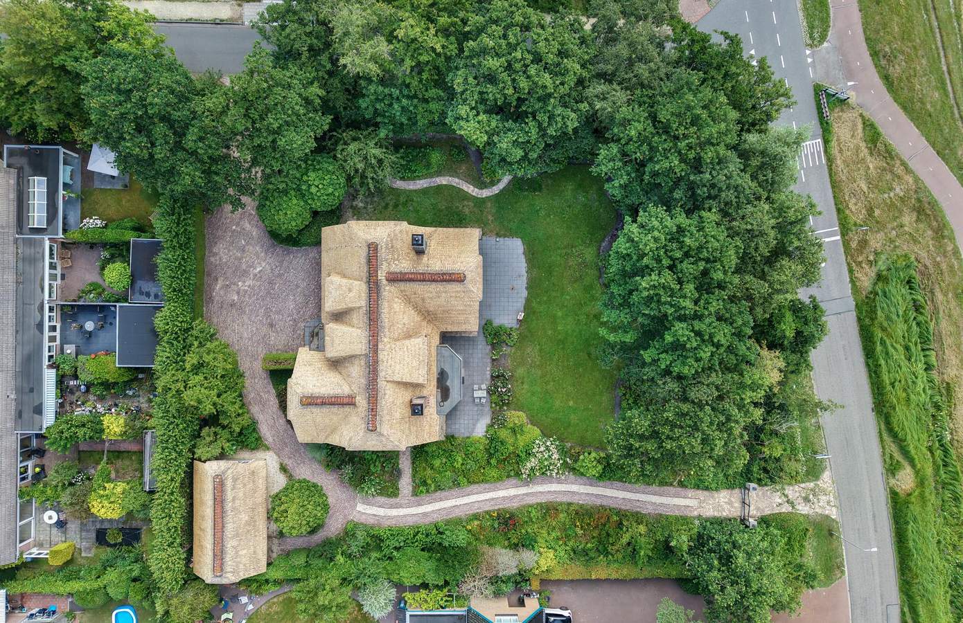 Rondom de woning strekt zich een groene tuin uit die volop privacy biedt en volledig is afgeschermd van de buitenwereld. Hier geniet u in alle rust van de natuur en de serene sfeer van deze unieke plek.