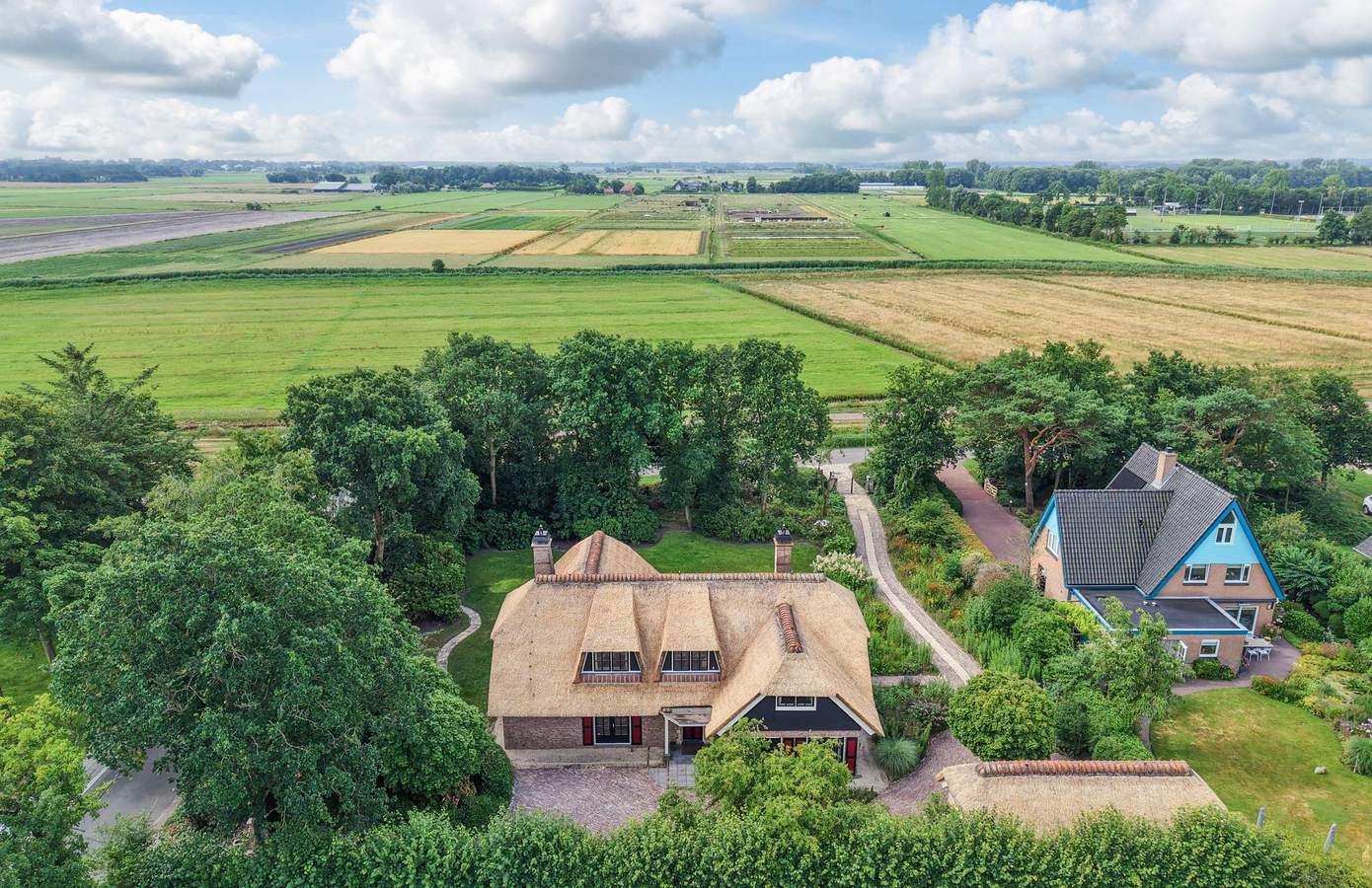 De woning is bereikbaar via twee toegangspoorten, één gelegen aan de Nesdijk en de andere aan de Lijtweg. Aan de voorzijde van de woning is het terrein volledig bestraat, met voldoende parkeergelegenheid voor maar liefst vier auto’s. Vanuit deze plek bereikt u ook het multifunctionele bijgebouw, dat is voorzien van een kleine badkamer met toilet en een keukenopstelling. Dit bijgebouw biedt tal van mogelijkheden: perfect als gastenverblijf, Bed & Breakfast, kantoorruimte of eenvoudig in te richten als schuur.
