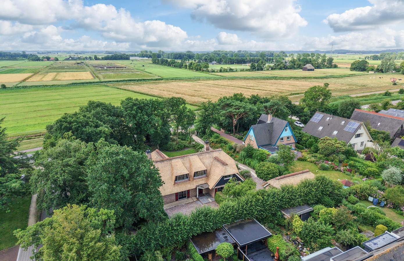 Op een unieke locatie in Bergen, staat verscholen achter het groen, deze rietgedekte villa uit 1993 met een multifunctioneel bijgebouw. De woning is gelegen op de hoek van de Nesdijk en de Lijtweg en is verrijkt met een fenomenaal uitzicht over het uitgestrekt weide- en natuurgebied van de Bergermeerpolder. Het centrum van Bergen ligt op loopafstand. Een op en top familiehuis met vier slaapkamers en twee badkamers. Door de gunstige ligging midden op de kavel is er rondom de woning veel ruimte. Een fijn oprij pad aan de voorzijde en een riante en privacyvolle achtertuin op het zuiden. In 2025 is het volledige dak opnieuw met riet gedekt, dus hier kunt u voorlopig weer mee vooruit!