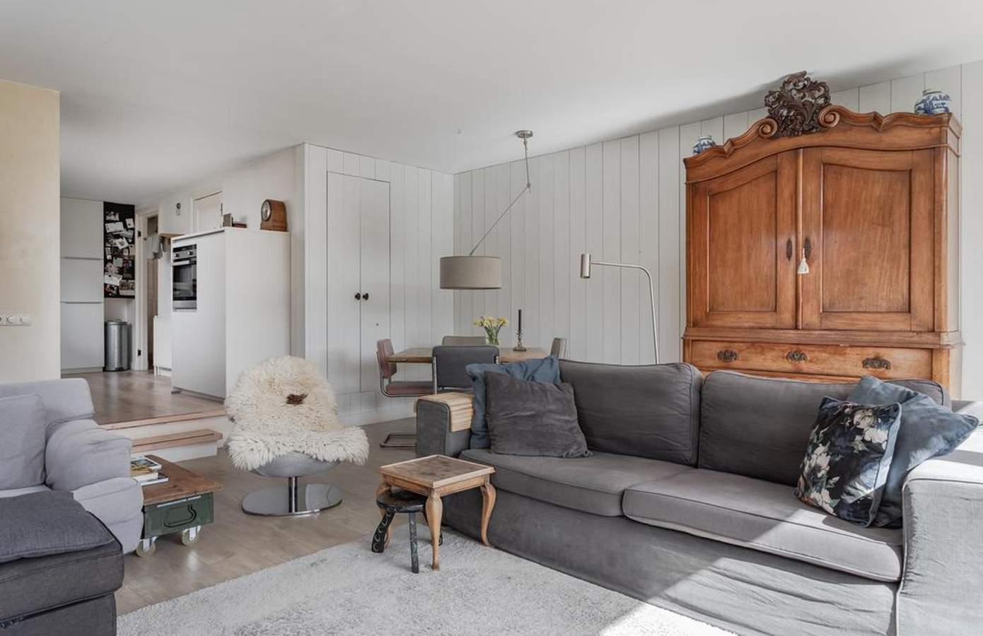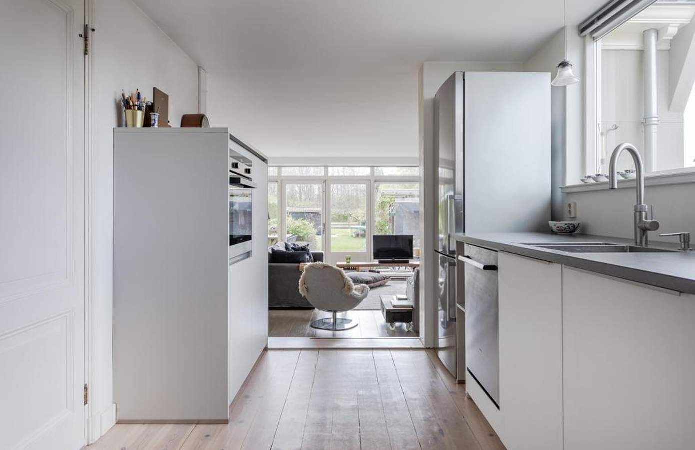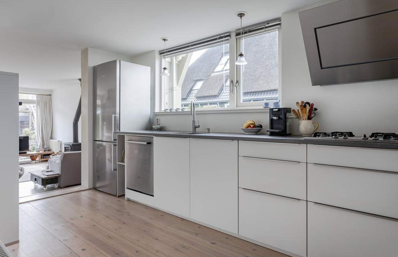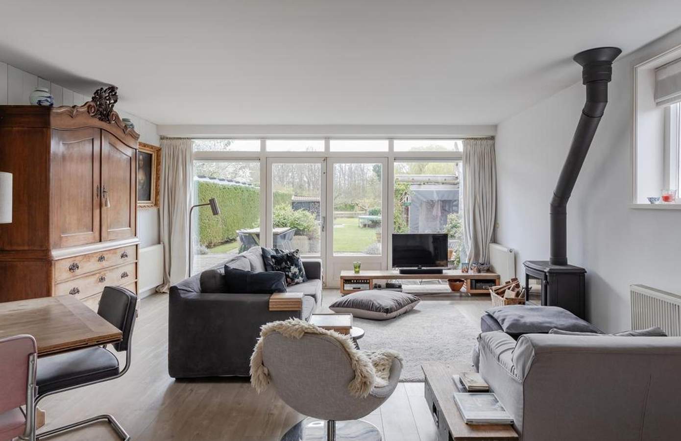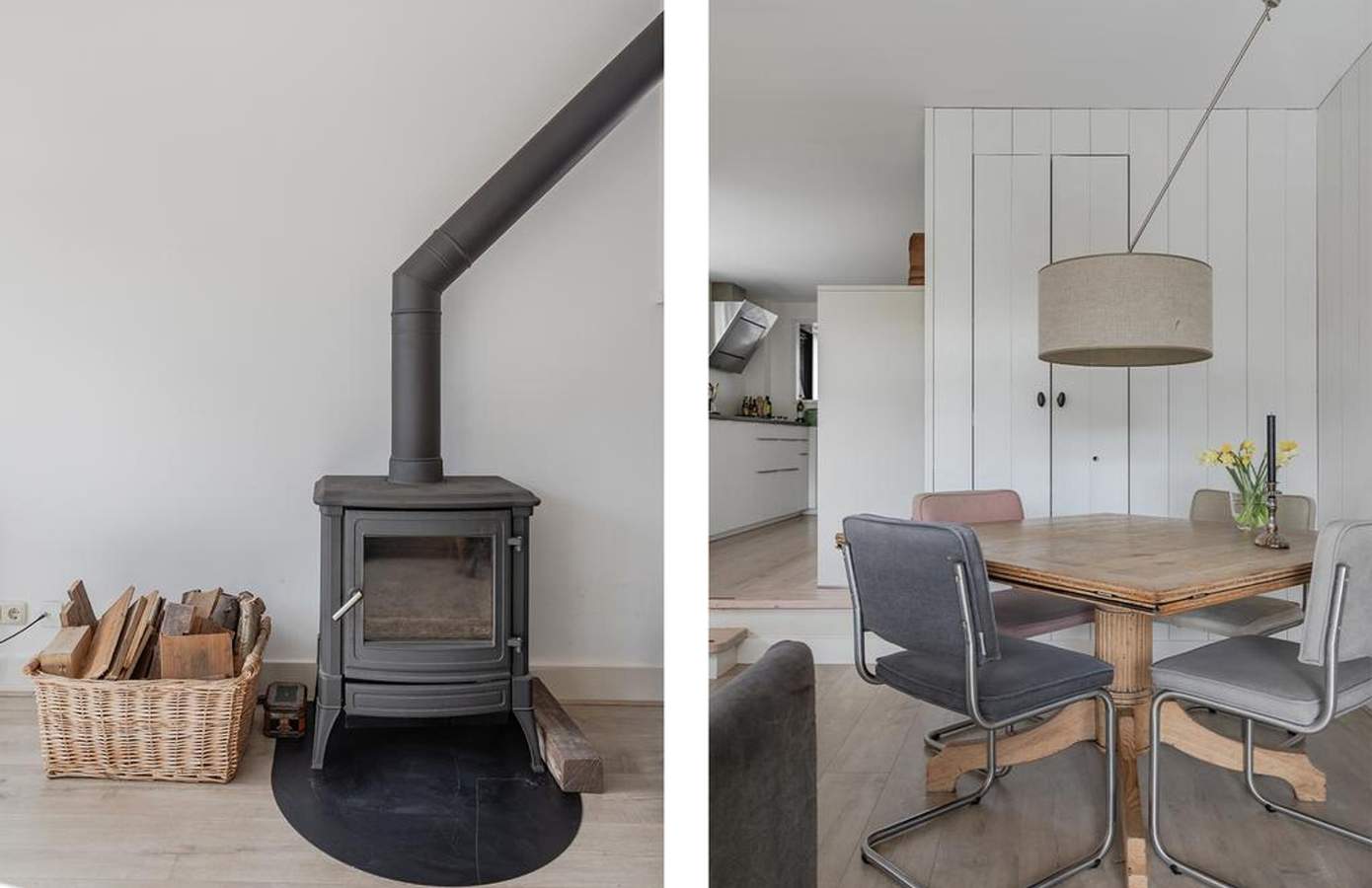 Binnen in de woning vallen meteen de ruimte en het (lichte) karakter van de woning op. Aan de achterzijde richting de tuin zorgt een grote raampartij voor een fijne lichtinval en levert het met de kleinste zonnestralen al warmtewinst op. Het balkenplafond in het kantoor zorgt voor sfeer, eveneens als de houtkachel in de woonkamer. De recent vernieuwde keuken bevindt zich in het hart van de woning en is van alle gemakken voorzien. Aan de voorzijde bevindt zich een multifunctionele kamer die ideaal is als kantoor of speelkamer. Verder is er een garage/berging voor extra opbergruimte. Op de verdieping zijn de slaapkamers te vinden, waarvan enkele voorzien zijn van vaste kasten. De badkamer is ruim opgezet met een ligbad, douche en dubbele wastafel. Daarnaast biedt de overloop een vaste kastenwand met veel extra bergruimte. De woning is in 2024 voorzien van een nieuwe cv-ketel, wat zorgt voor optimaal wooncomfort.