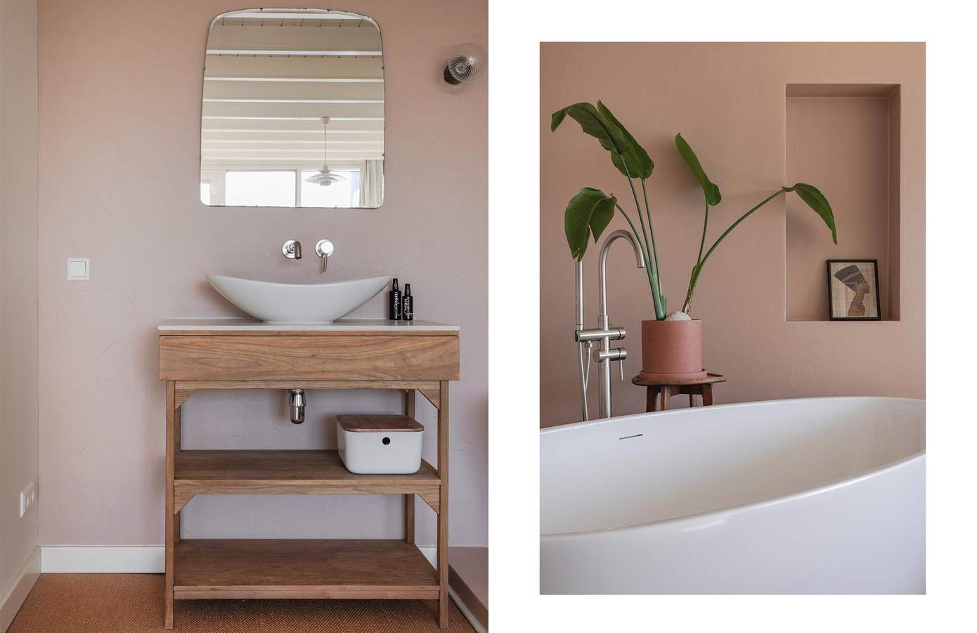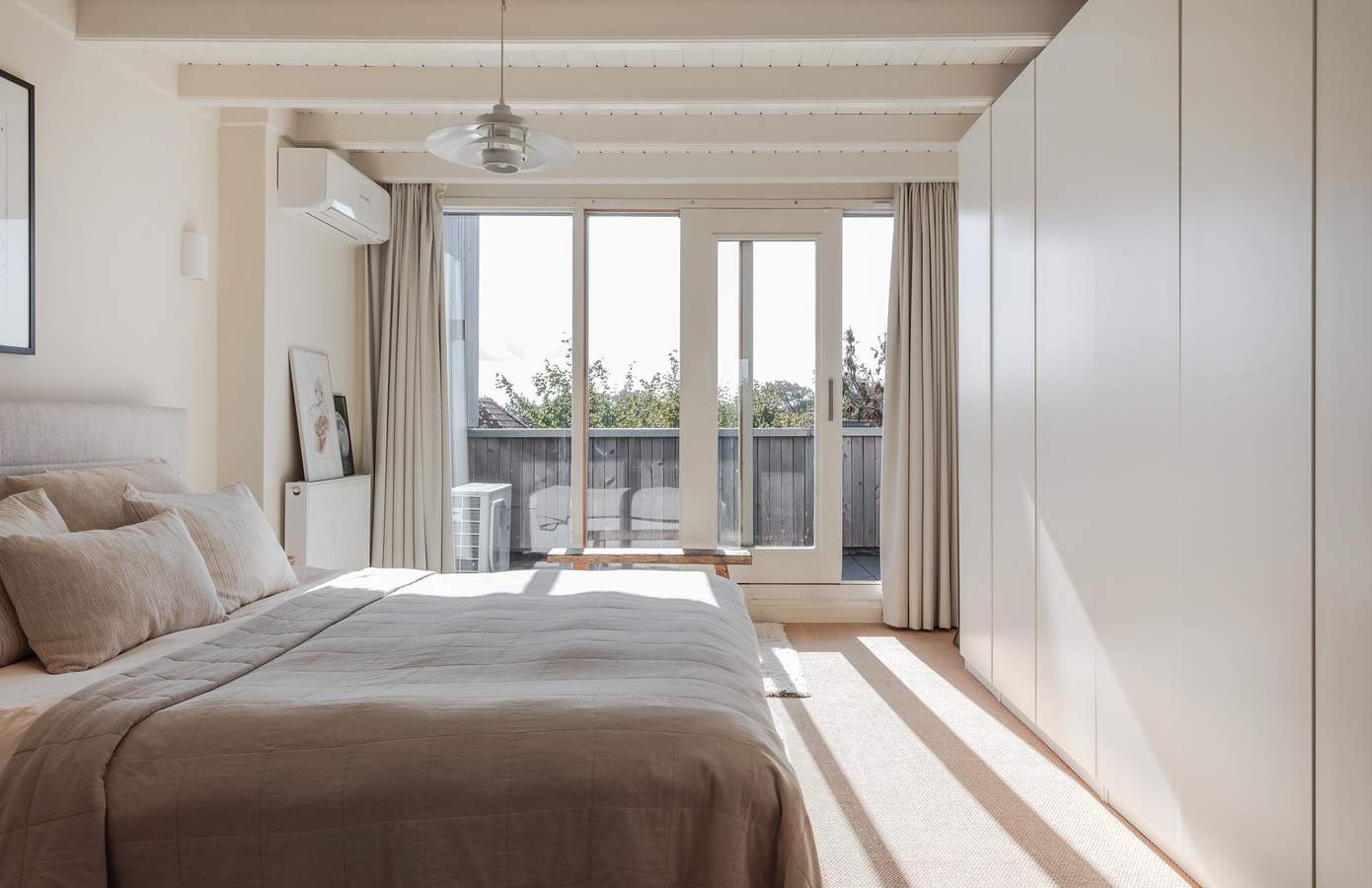 Via de trap in de hal bereikt u de kelder en de verdieping met twee ruime slaapkamers, beide voorzien van airconditioning en royaal daglicht. De masterbedroom verrast met een losstaand bad, een eigen wastafelmeubel én toegang tot het balkon. Hier kunt u al vroeg in het voorjaar, in de luwte, genieten van uw eerste kop koffie met uitzicht op de duinen.