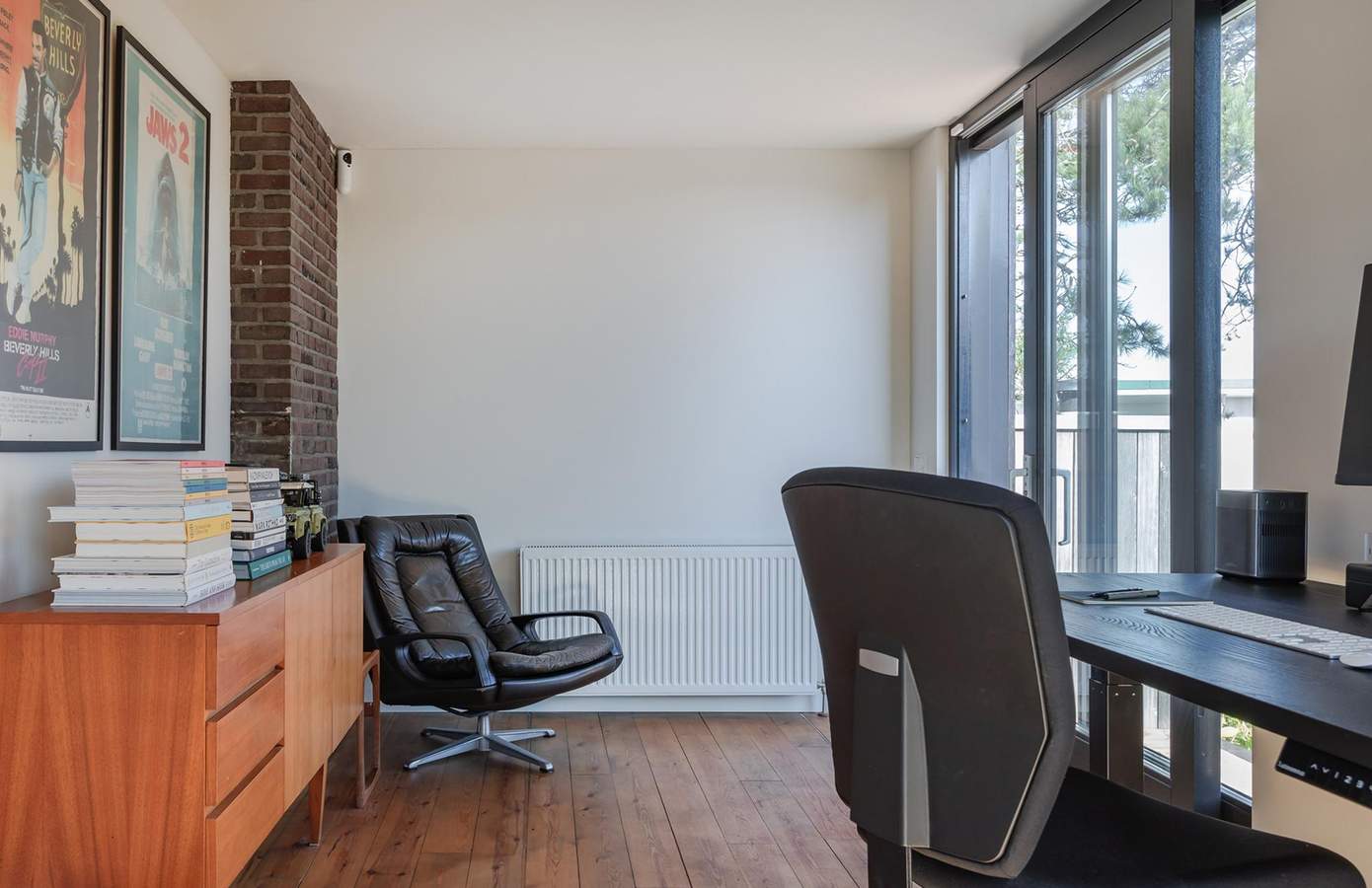 Via een eigen opgang aan de achterzijde bereikt u het kantoor, een ideale thuiswerkplek waar u in alle rust kunt werken. Onder dit kantoor bevindt zich tevens een praktische berging.