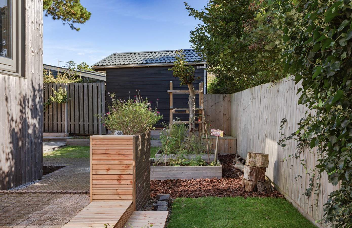Vanuit de schuifdeuren in de woonkamer bereikt u de recent aangelegde tuin. Hier vindt u onder andere moestuinbakken, houten vlonders, nieuwe bestrating en een vers ingezaaid gazon. Rondom de woning zijn meerdere terrassen en zitplekken gecreëerd, zodat u op elk moment van de dag van de zon kunt genieten.