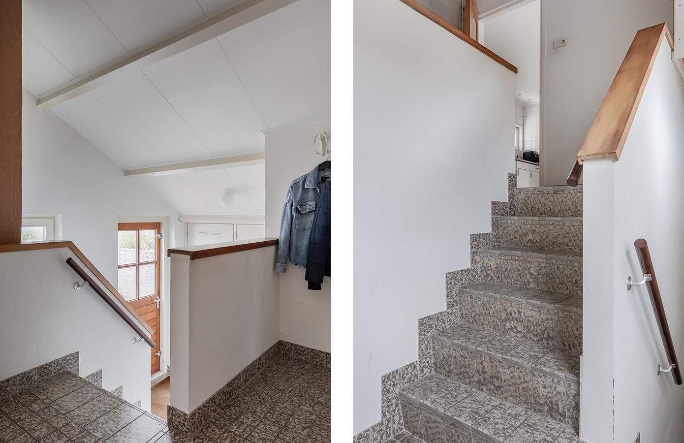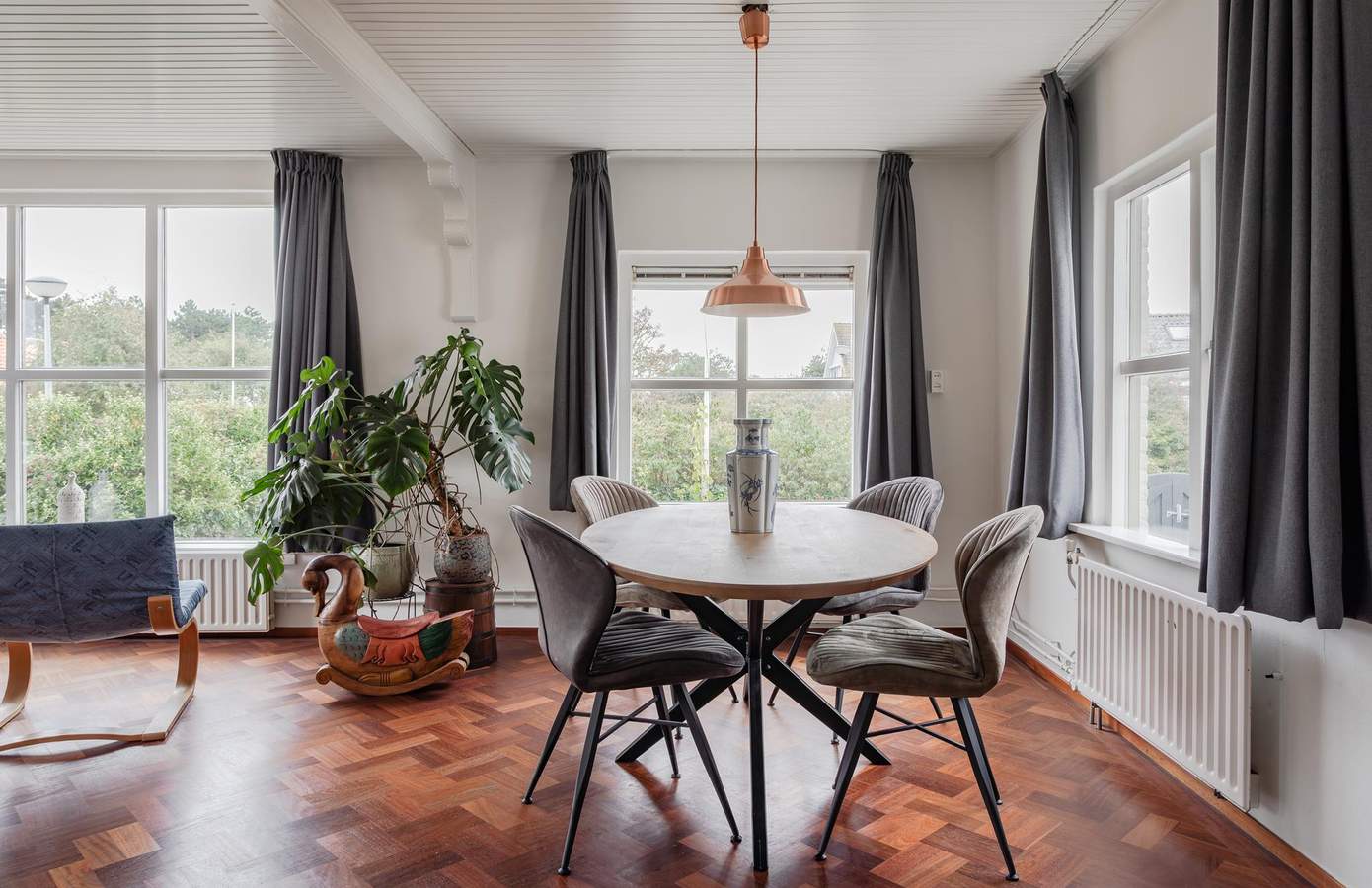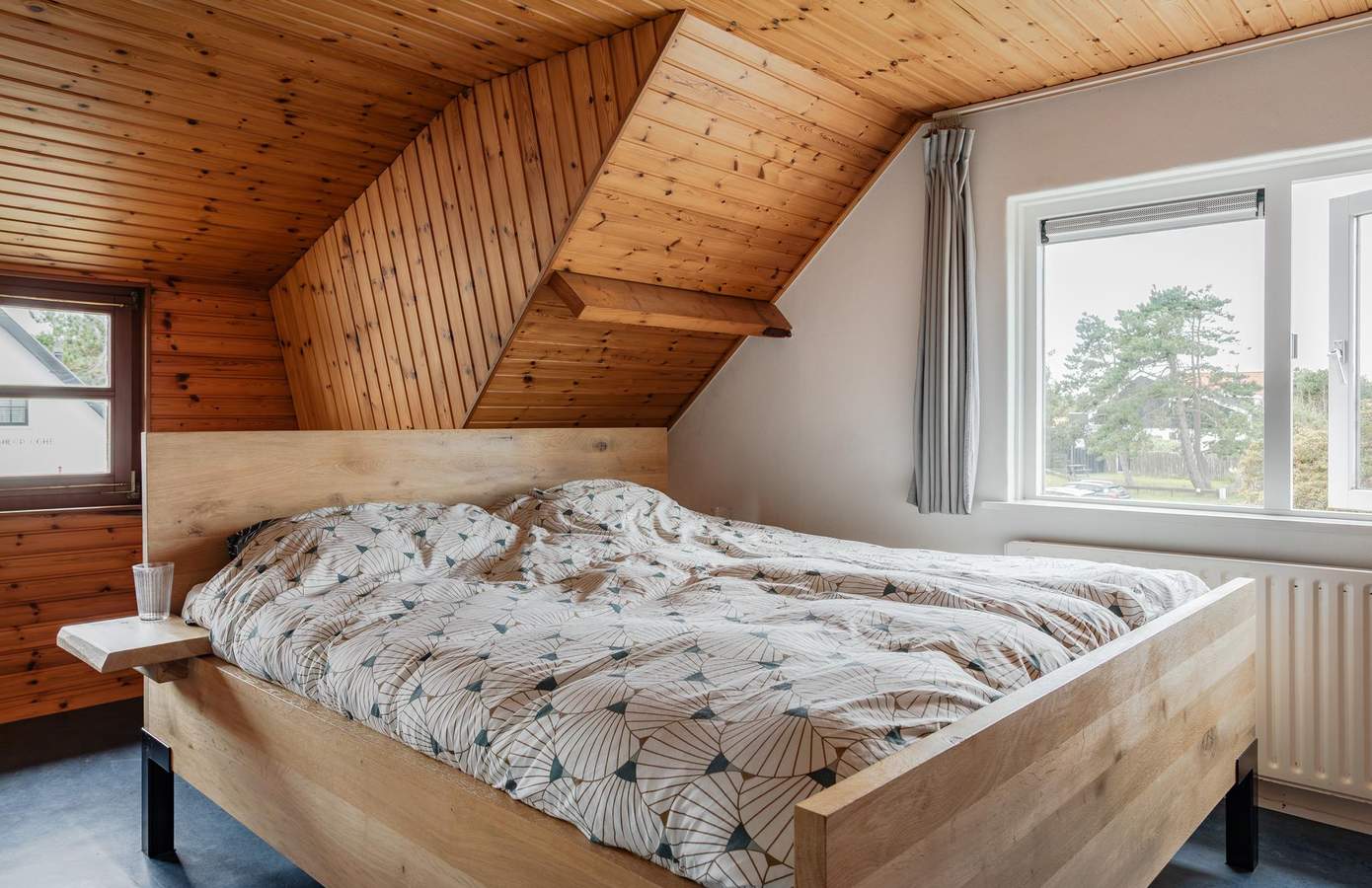 Bij binnenkomst wordt u direct omringd door het vele daglicht. De royale woonkamer is voorzien van grote ramen die uitzicht geven op het omliggende landschap en zorgen voor een aangenaam daglicht. De houten vloer brengt karakter in de ruimte en vormt een goede basis voor elk interieur. De eetkamer sluit hier mooi op aan. De keuken is praktisch ingedeeld en voorzien van een vaatwasmachine, oven en een koelkast. Op de eerste verdieping bevinden zich drie slaapkamers. De kamers geven door middel van het houten plafond een knusse sfeer, wat perfect past bij de kustlocatie. De badkamer is praktisch ingericht met een douche, wastafel en toilet, en biedt daarnaast de aansluitingen voor zowel wasmachine als droger.