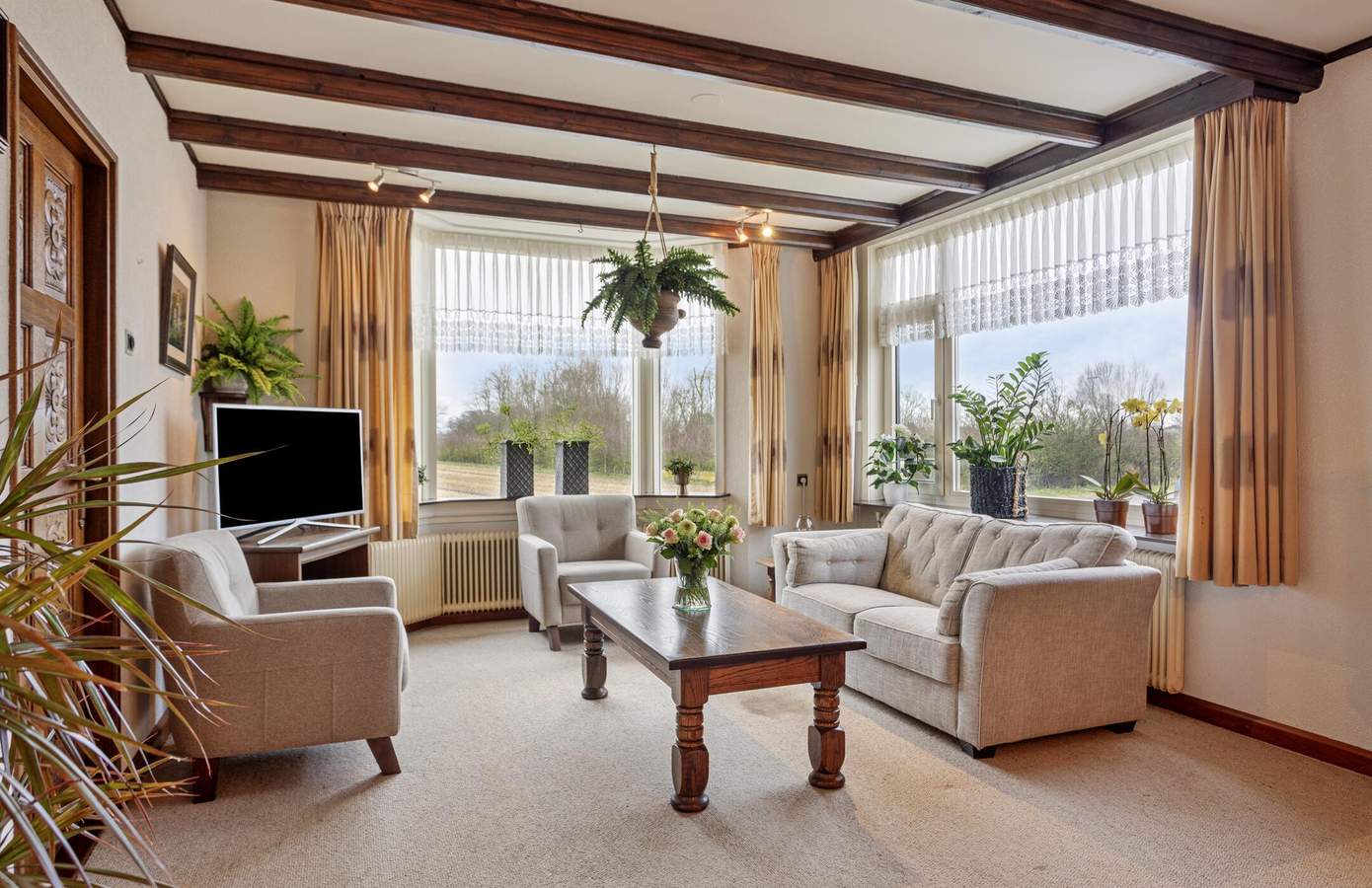 Het betegelde erf biedt veel ruimte, hier is natuurlijk nog een geheel eigen invulling aan te geven. Denk daarbij aan een tuin met een terras om te genieten van het prachtige vrije uitzicht over de velden en de schitterende zonsondergangen. De woning heeft twee royale garages/werkplaatsen/schuren voor het stallen van auto’s of het uitoefenen van een hobby.