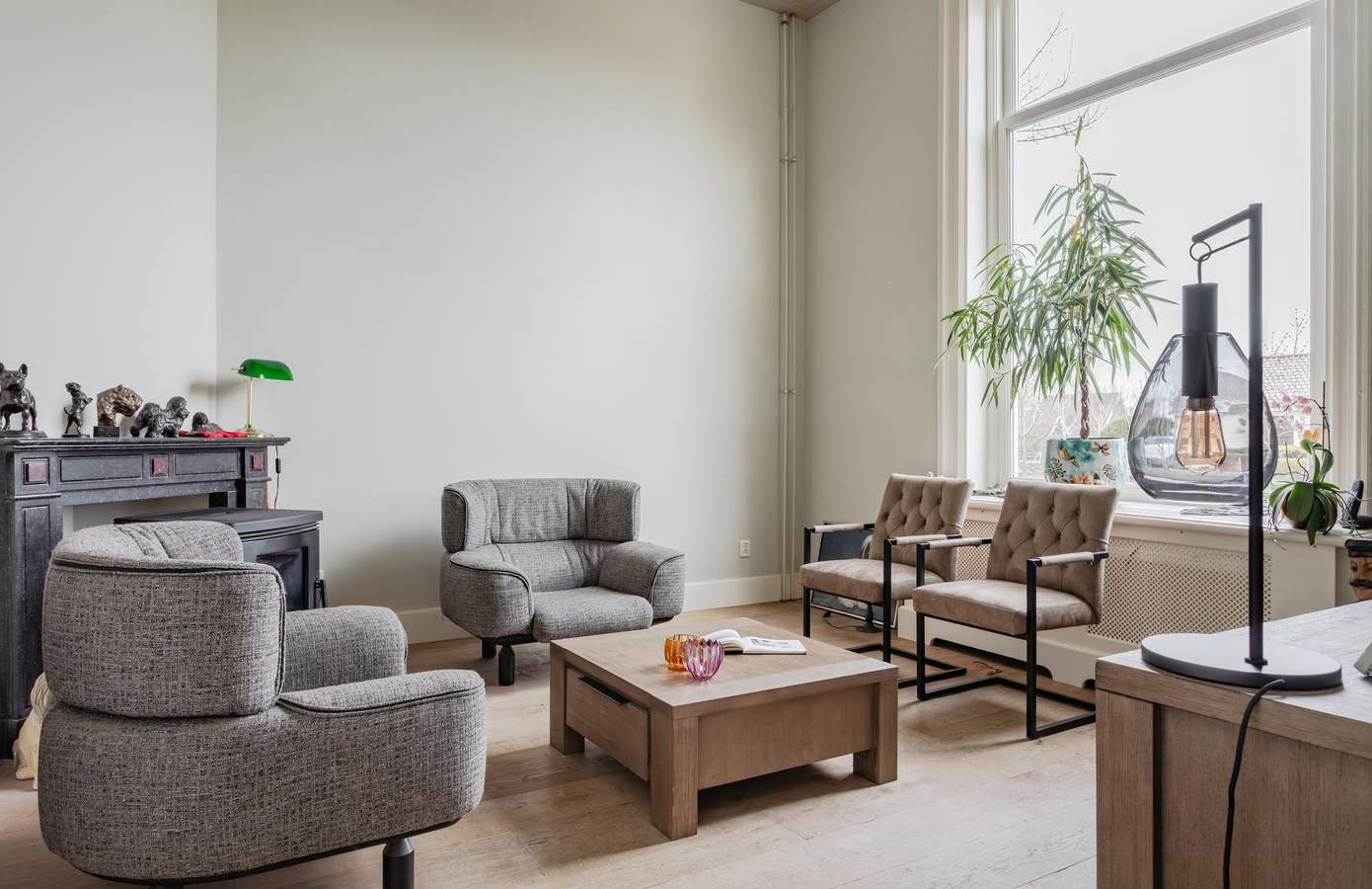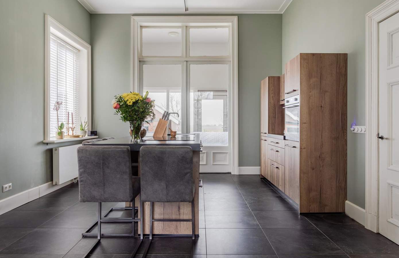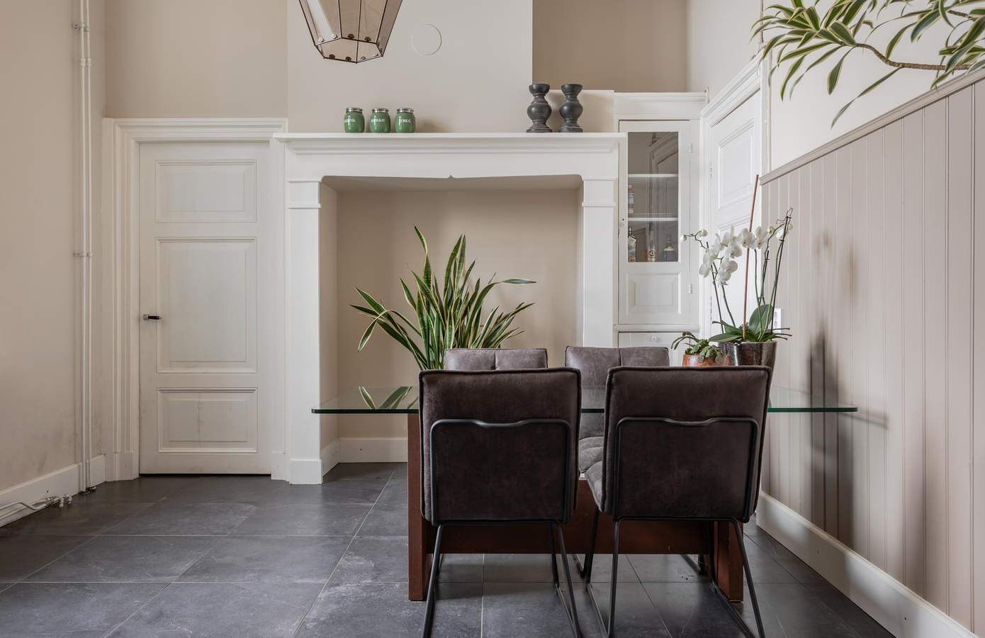 De huidige eigenaren zijn gevallen voor de charme en hebben de woning met zorg teruggebracht naar een meer originele staat, waarbij karakter en detail centraal staan. De hoge plafonds, de imposante hal en de fraaie indeling zorgen voor een statige uitstraling. In de voorkamer ligt een prachtige eikenhouten vloer die warmte en klasse toevoegt aan de ruimte. De verschillende woonkamers en de keuken (2024) sluiten op natuurlijke wijze op elkaar aan, waardoor er een fijne balans ontstaat tussen openheid en geborgenheid. De achterste woonkamer staat bovendien in directe verbinding met de bijkeuken met badkamer, waardoor het mogelijk is om hier een slaapkamer te realiseren en gelijkvloers te wonen.