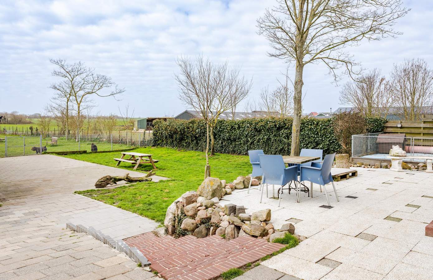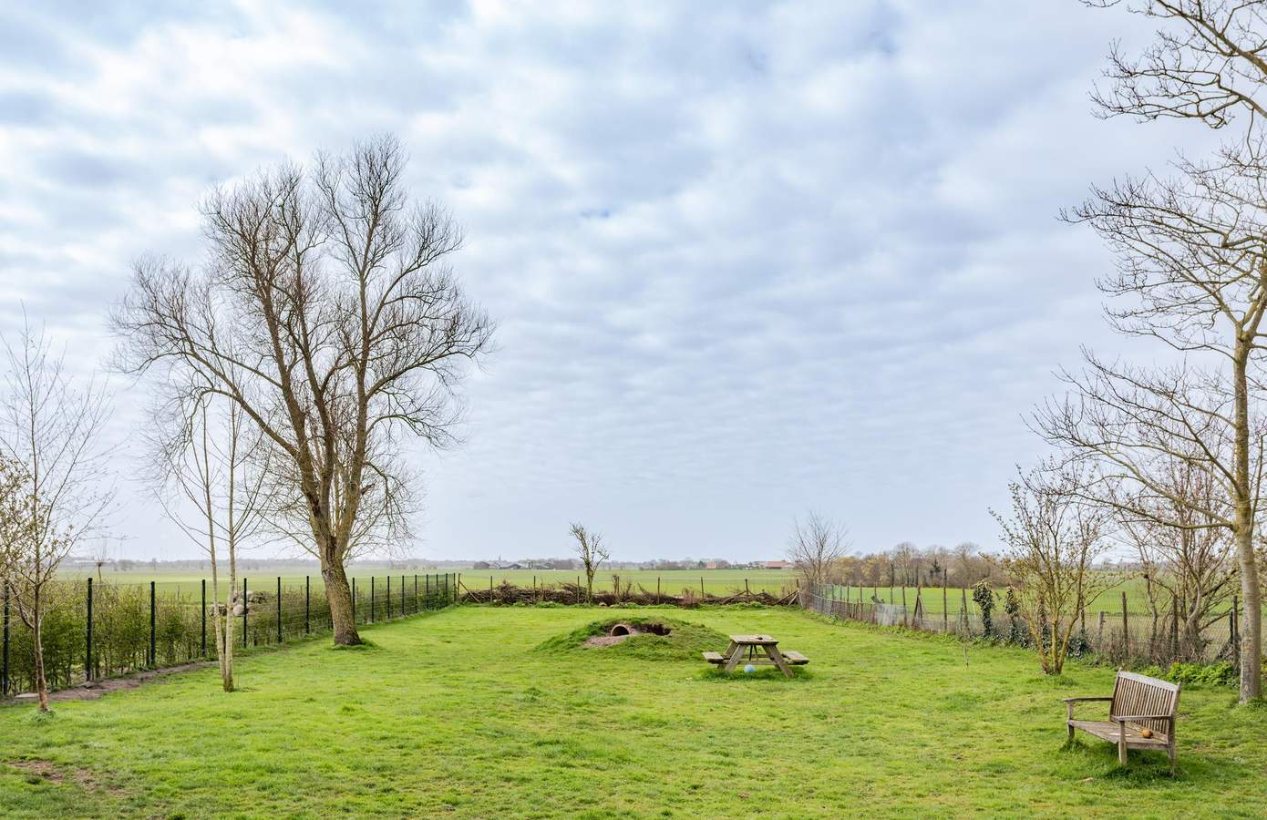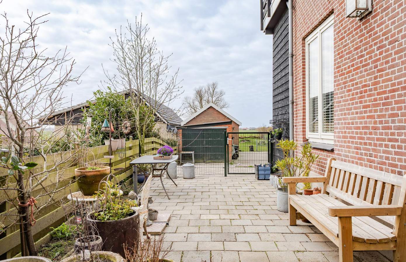 Aan de achterzijde kijkt u uit over weidse landerijen, een uitzicht dat nooit verveelt en ieder seizoen een ander decor biedt. Het erf is ruim opgezet en beschikt over een schuur/garage van circa 46 m², ideaal voor opslag, hobby of werk aan huis.