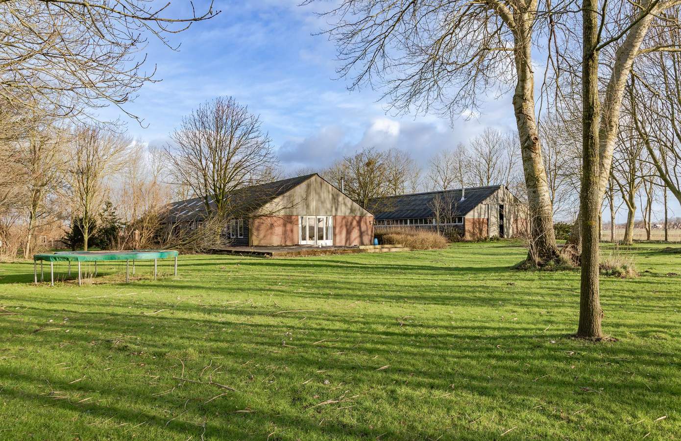 Op het erf staan twee royale schuren met een totale oppervlakte van: 20.790 m² die beide een eigen verhaal vertellen. De rechter schuur, gebouwd in 1980, is ingericht met maar liefst 25 paardenboxen en is een stille getuige van de professionele hippische activiteiten die hier ooit plaatsvonden. De linker schuur volgde in 1986 en herbergt aan de voorzijde een destijds als noodwoning ingerichte verblijfsruimte, die tot op heden nog steeds dienstdoet als woonruimte. Achter het erf strekt zich een renbaan uit: destijds professioneel aangelegd en een prachtige herinnering aan een verleden vol beweging. Deze buitenruimte vormt een inspiratiebron voor nieuwe plannen, of het nu gaat om het realiseren van een woondomein, een familielandgoed of een kleinschalige woon-werkcombinatie.
