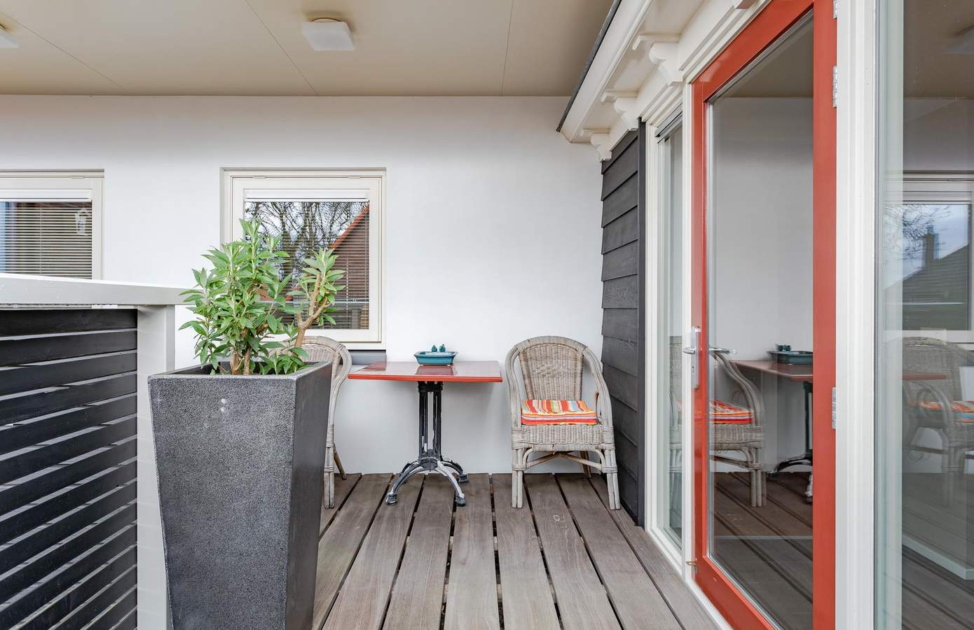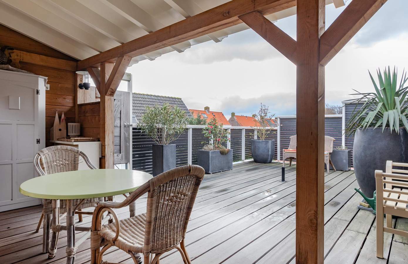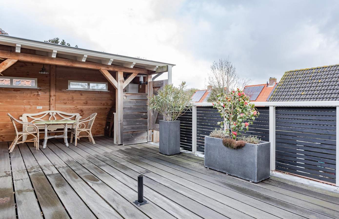 - Nieuw dakterras (2015) met veranda en hardhouten vlonder 2 cm dik en hek van hardhout