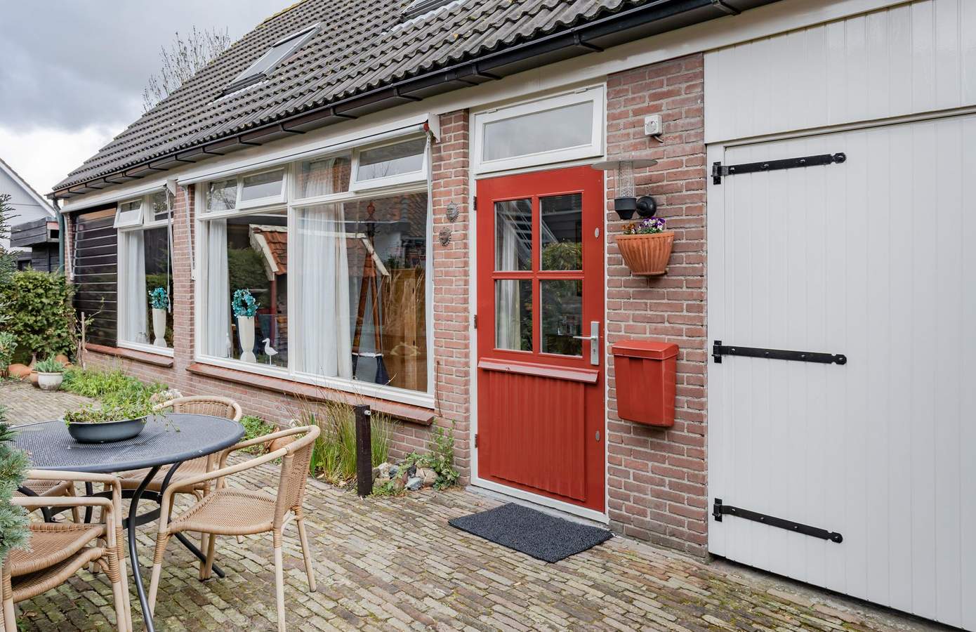 Deze woning, met een gebruiksoppervlakte van maar liefst 110 m², heeft een woonkamer met open keuken, een badkamer, twee slaapkamers en een apart toilet. Aan de rechterzijkant bevindt zich nog een ruime schuur met bovenverdieping.