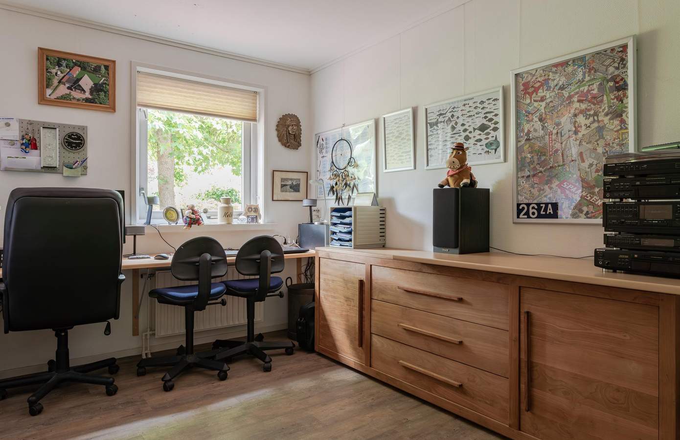 Rust en comfort, dit ervaart u bij binnenkomst. Een fijne woning, een echt thuis! Door de verschillende ruimtes is het een compacte indeling. Vanuit de hal bereikt u het kantoor, de woonkamer en de bijkeuken. De woonkamer (voorzien van vloerverwarming) is sfeervol met een houtkachel en openslaande deuren naar de tuin. De halfopen keuken is onder andere uitgerust met een vaatwasser, kookplaat en een combi-oven/magnetron. Met de eettafel erbij in deze ruimte is het gezellig koken en tafelen met het hele gezin. Op de verdieping treft u drie riante slaapkamers en een luxe badkamer uit 2022 met voerverwarming. Middels een vaste trap bereikt u de zolder. Deze is nu in gebruik als opslag, maar met een dakkapel is hier nog een goede kamer van te maken.