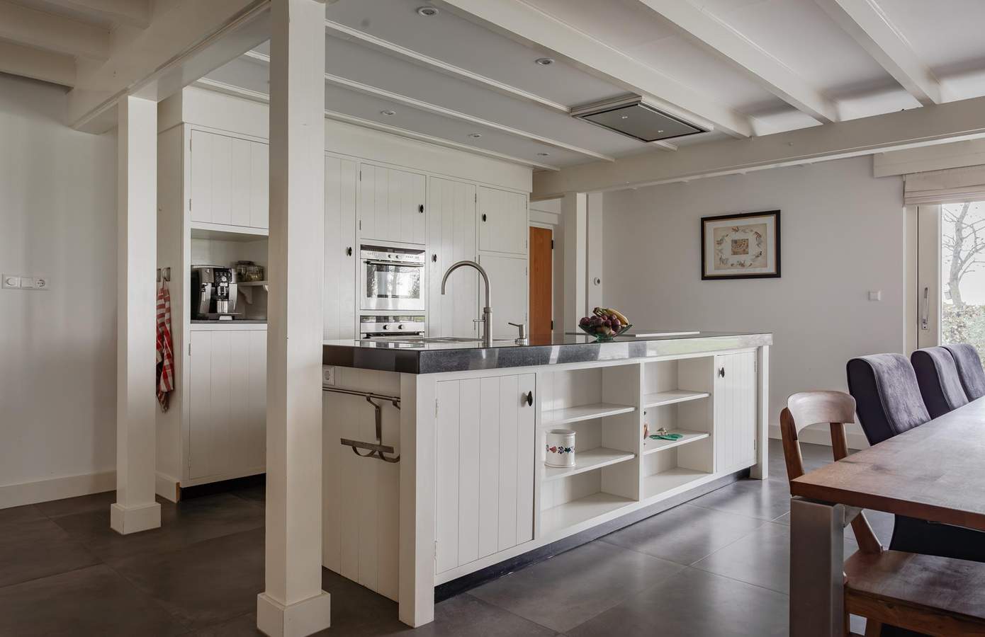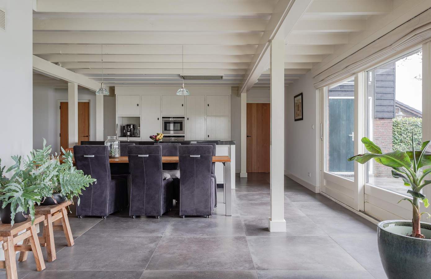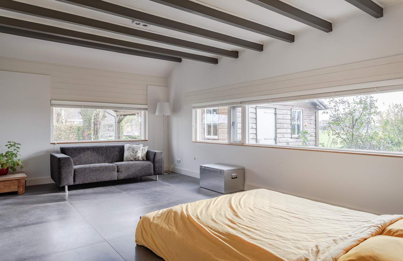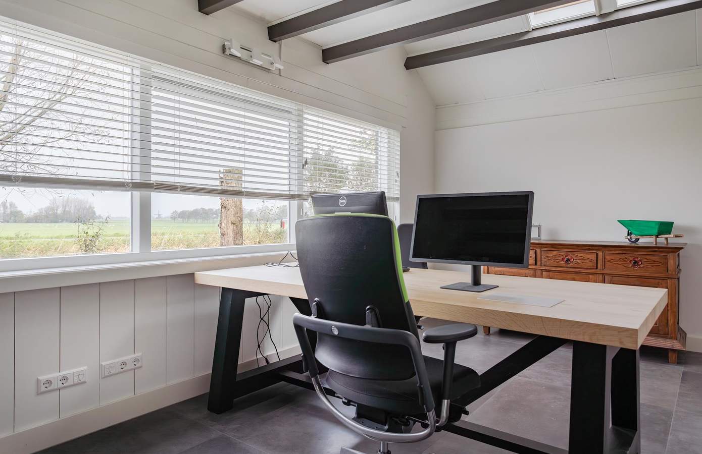 In de living ervaart u door het plafond tot de nok de optimale beleving van ruimte. Met veel natuurlijke lichtinval door de grote raampartijen en de houtkachel is dit een zeer aangename plek in de woning. De open keuken is voorzien van diverse apparatuur. Staat (de mogelijkheid tot) gelijkvloers wonen op uw woonwensenlijst? Op de begane grond is een riante slaapkamer met badkamer en suite aanwezig. Vanuit de slaapkamer heeft u een prachtig uitzicht over de landerijen om de woning. De multifunctionele kamer aan de voorzijde is momenteel in gebruik als werkkamer. Een andere invulling is hier ook uitstekend mogelijk. Op de verdieping zijn nog een drietal zeer ruime slaapkamers (alle kamers hebben uitzicht over de landerijen) en de tweede complete badkamer aanwezig. In de slaapkamer aan de achterzijde zijn de balken tot de nok prachtig in het zicht gebracht. Er is een ruime walk-in-closet waar al uw kleiding netjes opgeborgen kan worden. In de slaapkamer in het midden van de woning is voldoende ruimte voor een groot tweepersoonsbed, een werk-/studeerplek en vanaf hier is er toegang tot de vide die in open verbinding staat met de living. In de badkamer is een wastafel, bad, inloopdouche, toilet en bidet aanwezig.