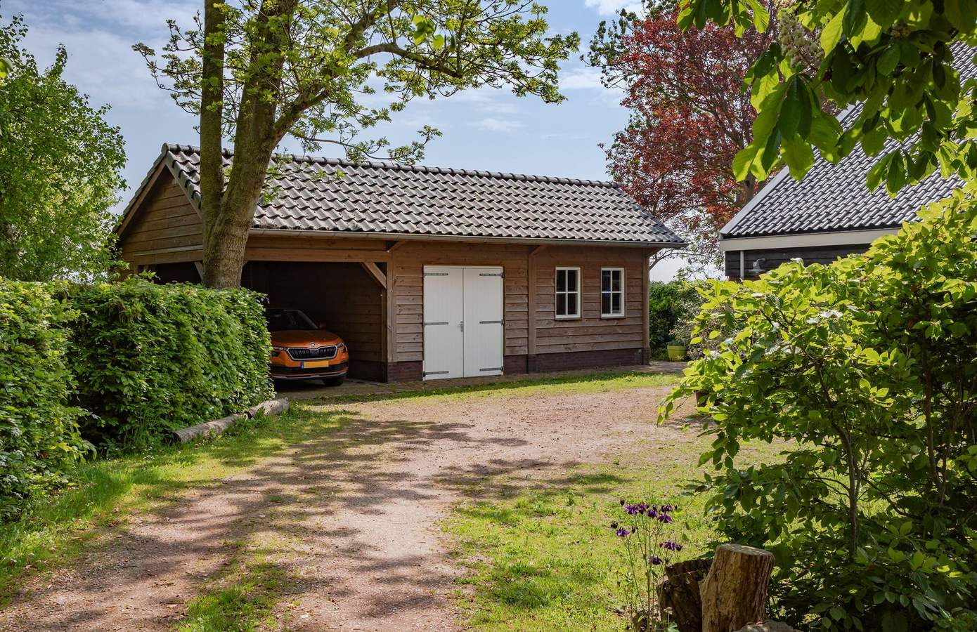 De tuin rondom de woning is een waar paradijs voor mens en dier, een echte natuurtuin waar de natuur zo veel mogelijk haar eigen gang kan gaan. Zowel jong als oud kan in deze tuin naar hartenlust genieten van het buitenleven. Het geheel wordt omsloten door volwassen groen en water. Vanuit hier vaart u gemakkelijk de Eilandspolder in. In de winter is het natuurlijk ook fantastisch om hier de schaatsen onder te kunnen binden en een mooie tocht te schaatsen. De tuin bestaat als het ware uit twee grote eilanden. Daarnaast zijn er een heus ‘’eendeneiland’’ en ‘’broedeiland’’ waar in het broedseizoen er in alle rust en stilte door de diverse vogels die dit gebied rijk is gebroed kan worden. In deze tuin komt u helemaal tot rust, het verveelt hier werkelijk nooit! Ieder seizoen heeft haar eigen charme. Varen met een boot, hout sprokkelen uit eigen tuin, lange zomeravonden met een knapperend vuur, alles kan hier! Er staat naast de woning een grote vrijstaande schuur (35 m²) met carport. Veel bergruimte voor bijvoorbeeld uw (tuin)gereedschap en een overdekte plek om uw auto te parkeren. Er is ook plek om op eigen erf meerdere voertuigen te parkeren. Het perceel wordt afgesloten door een elektrische afsluitbare poort (2019). Er staat een tweede berging in de tuin van ca. 17 m².