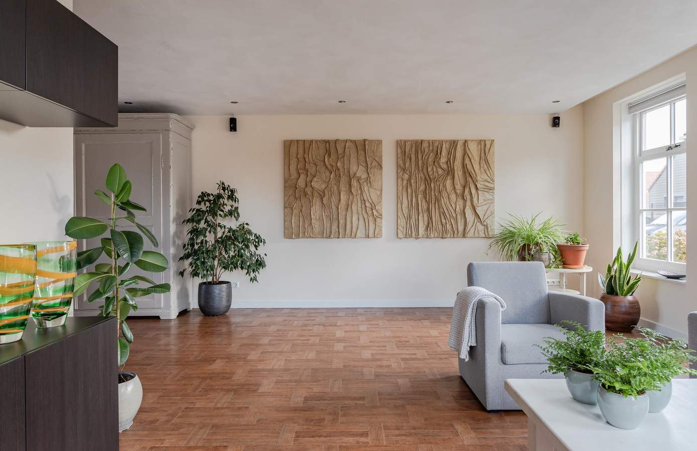 Kom binnen via de zij-entree. Hier vindt u naast de meterkast, garderobe en toiletruimte nog een praktische bergkast. De heerlijk lichte en ruime living bevindt zich aan de voorzijde van de woning. Een speels effect in de living is het verlaagde plafond met inbouwverlichting. Aan de achterzijde is de open keuken, deze heeft alle nodige kookgemakken om een smakelijke maaltijd op tafel te zetten. Op zomerse dagen zet u de openslaande deuren lekker open en betrekt u het terras eenvoudig bij de woonkeuken. Grenzend aan de keuken vindt u de bijkeuken met de wasmachine- en droger opstelling, de CV-opstelling en de toegang naar de achtertuin. Via de bijkeuken komt u in de multifunctioneel te gebruiken kamer. Deze kan voor verschillende doeleinde worden gebruikt: werk-/kantoorruimte aan huis, speelkamer voor de kinderen of een slaapkamer op de begane grond. Mogelijkheden alom! De speciaal voor deze woning ontworpen extra brede trap brengt u naar de eerste verdieping. Aan de achterzijde is de zeer ruime master bedroom. Het is mogelijk om van deze kamer twee slaapkamers te maken. De overige drie slaapkamers zijn van goed formaat, aangenaam licht en keurig afgewerkt met een doorlopende laminaatvloer (drempelloos). De badkamer heeft een inloopdouche, dubbele wastafel, een designradiator en vloerverwarming. Het tweede toilet is separaat gelegen naast de badkamer. Op de overloop is een luik met de vlizotrap naar de bergzolder. Deze is in gebruik als bergruimte en loopt over de gehele diepte van de woning.