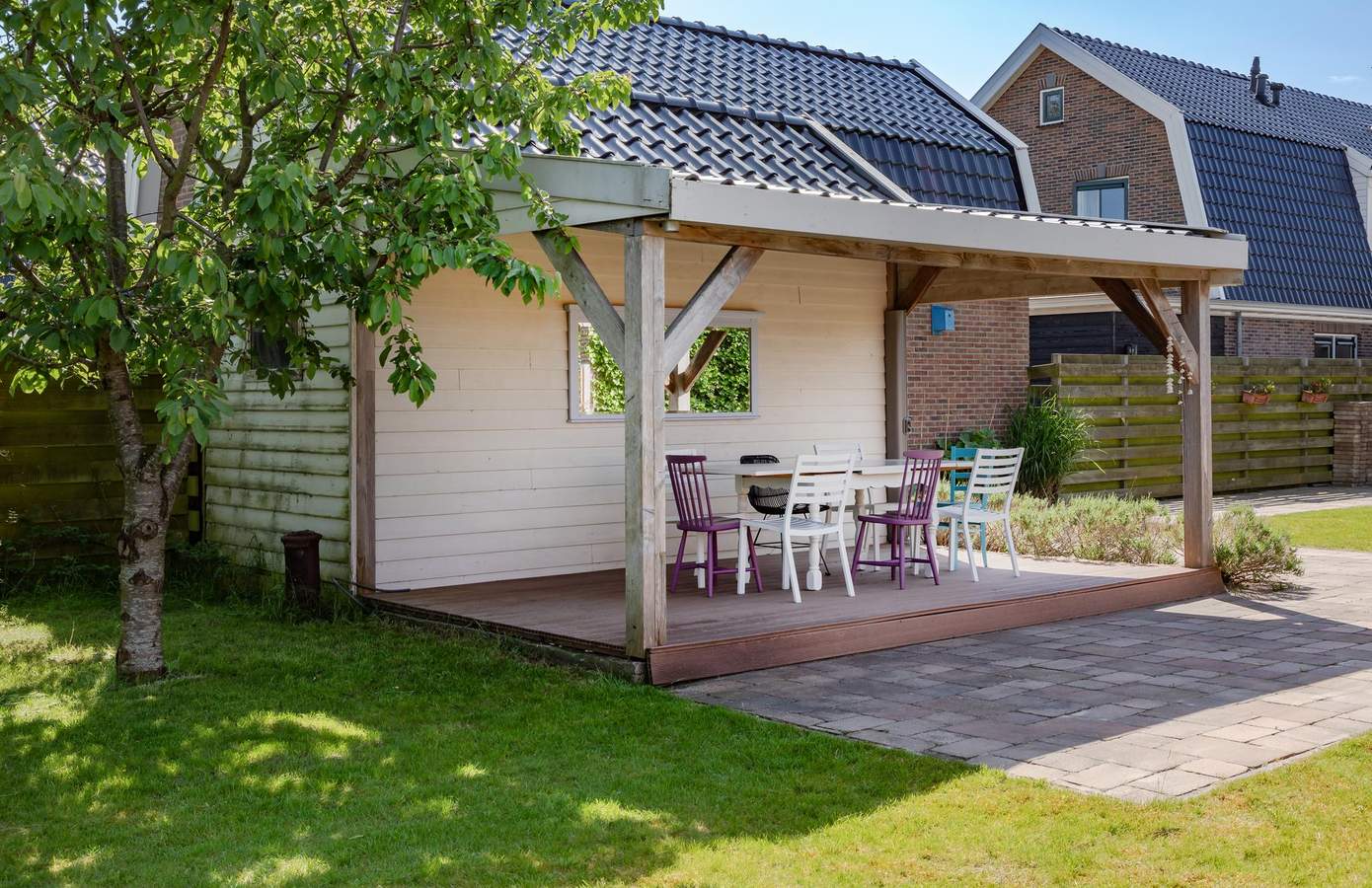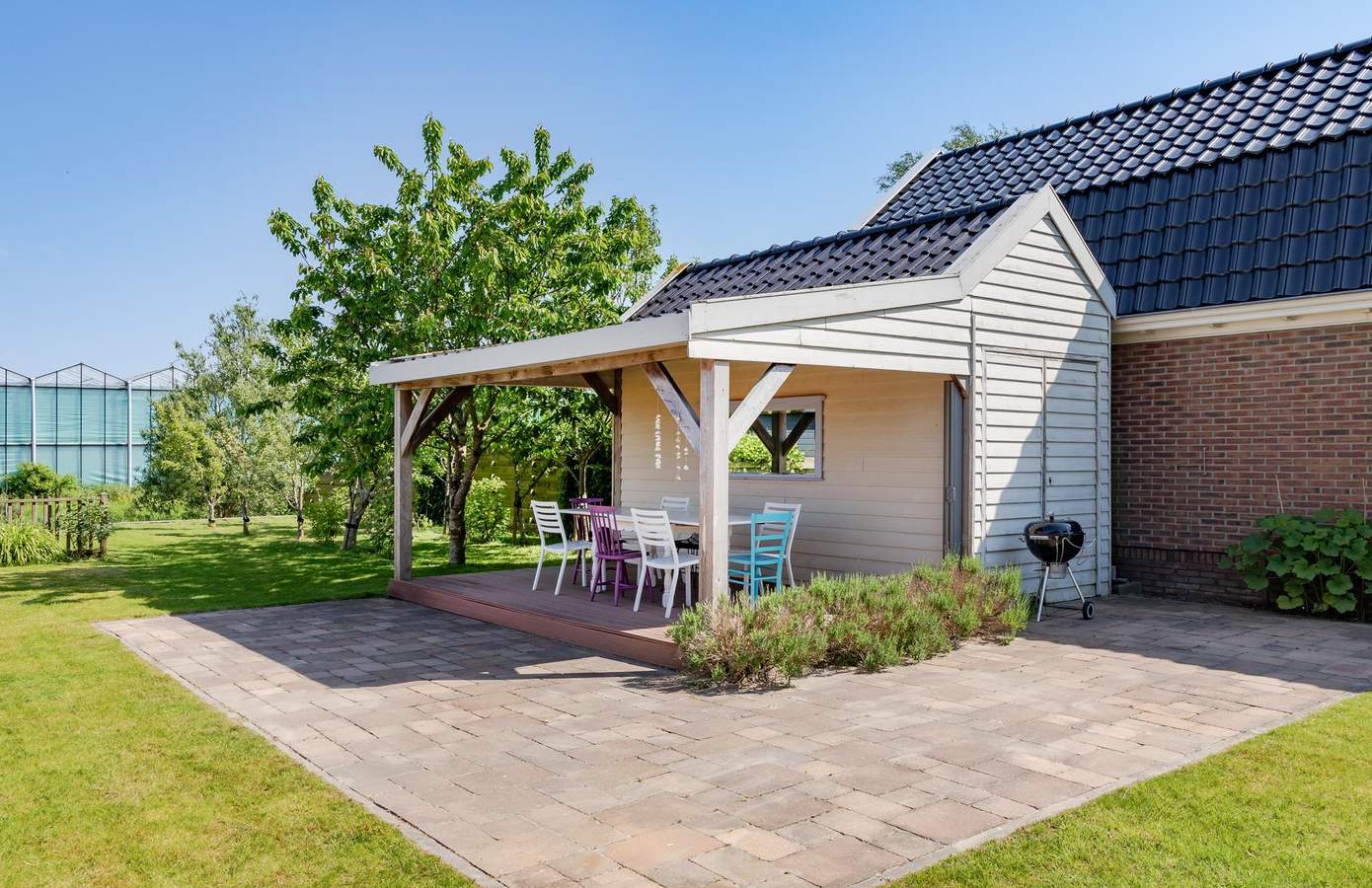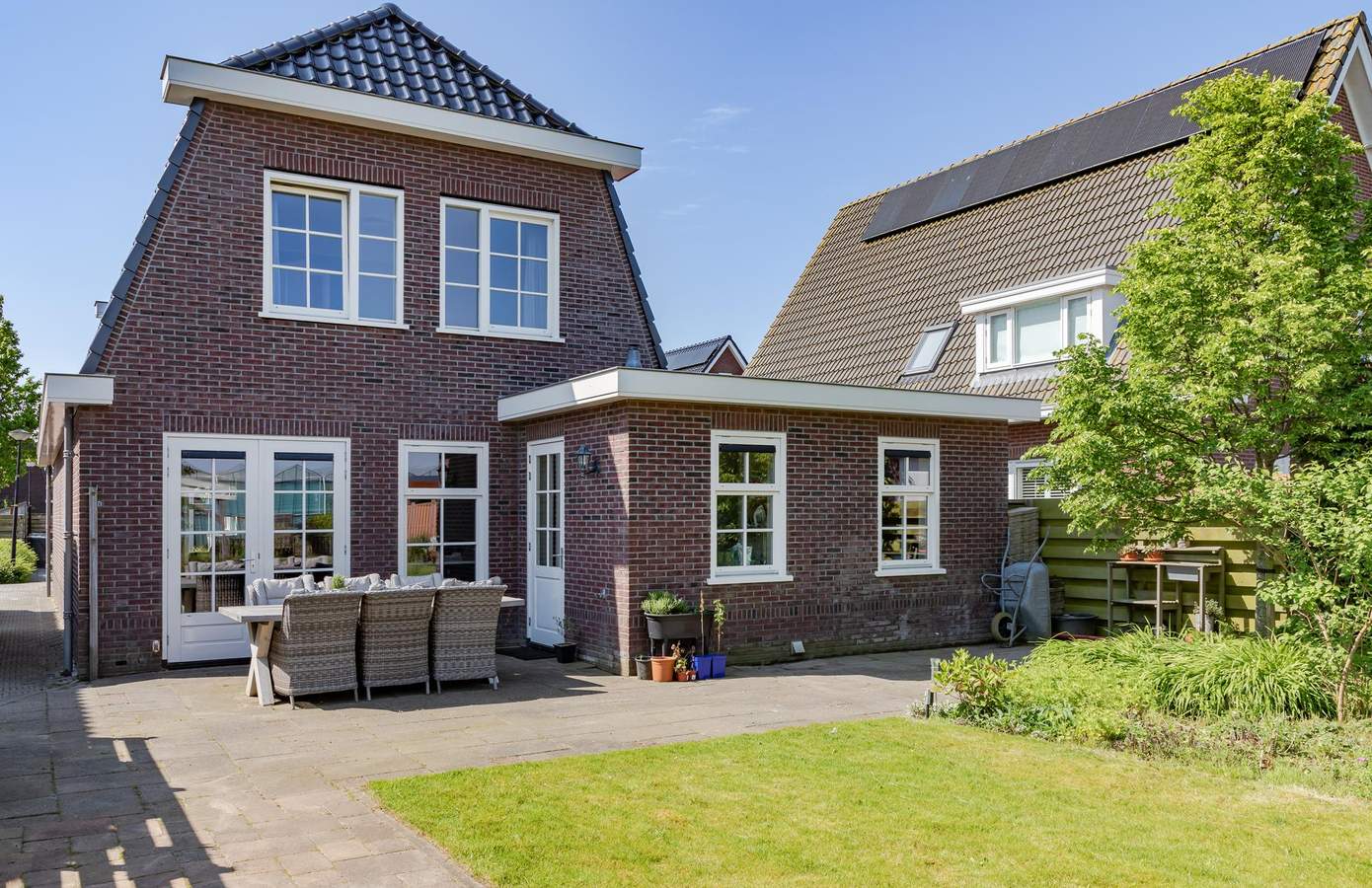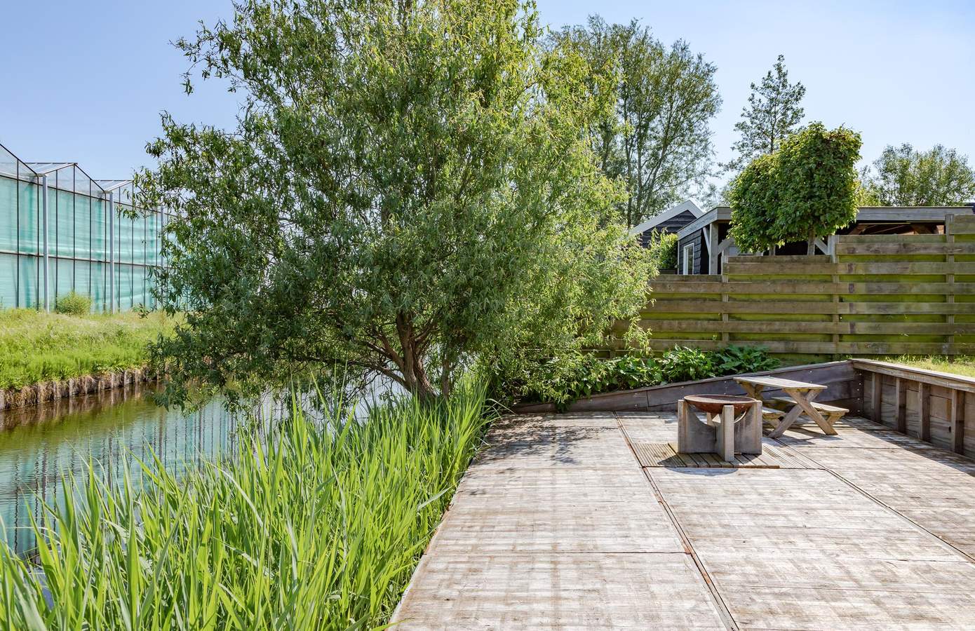 Ruimte alom in de ruim 40 meter diepe achtertuin. De ligging is aan het water, ideaal om een hengeltje te werpen of om in de winter de schaatsen onder te binden. Aan de waterkant is het op het ’‘zonnedek’‘ heerlijk vertoeven! Voor ieder moment van de dag is er in deze fijne tuin een lekkere plek in zowel de zon als de schaduw te vinden. De tuin is verzorgd aangelegd met een combinatie van terras, gazon en een diversiteit aan groen. Er is zelfs een moestuin waar eigen groente, fruit en kruiden verbouwd kunnen worden. Ook zijn er meerdere fruitbomen in de tuin aanwezig. De vrijstaande houten berging van 11 m² is ideaal voor het stallen van fietsen, gereedschap en tuinmeubilair. Grenzend aan deze berging is een overkapping van ruim 13 m² waar u beschut kunt zitten voor lange zomeravonden. Vanaf een kop koffie in de ochtend tot een uitgebreide barbecue in de avondzon, het kan hier allemaal! Uw auto parkeert u overdekt in de garage of op de oprit.
