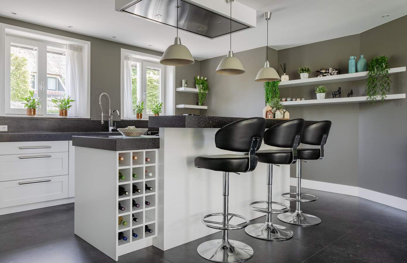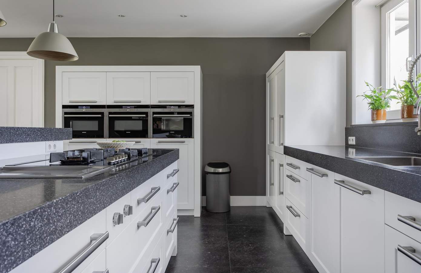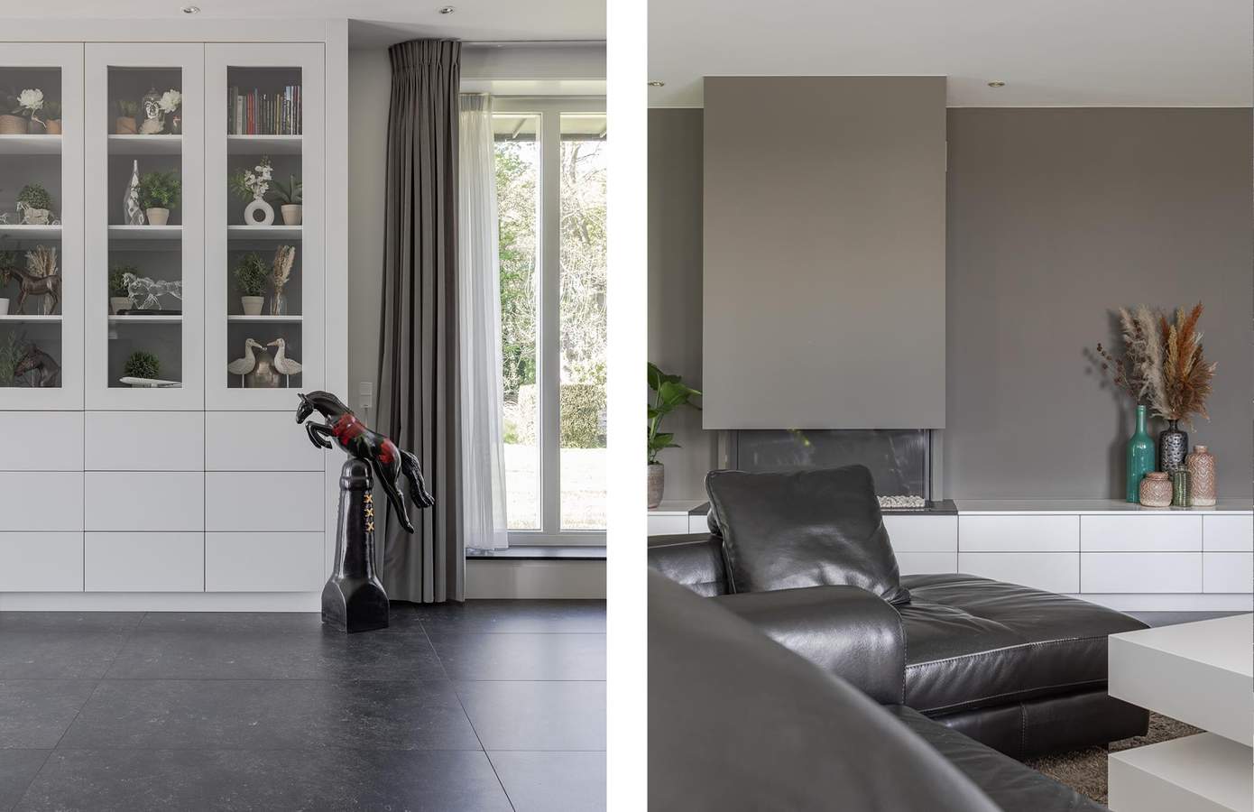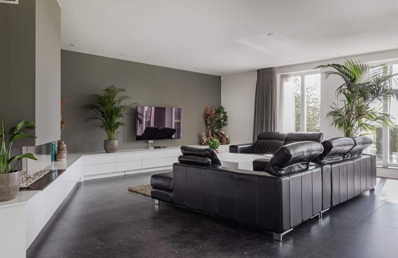 Zodra u de woning betreedt, valt het ruimtelijke karakter op. De hal is hoog en statig. Het trappenhuis is centraal in de woning geplaatst en in het ontwerp door de architect een slag gedraaid, waardoor de ruimtes eromheen interessante afmetingen en vorm krijgen. De trap zelf is als een modern slakkenhuis bedacht dat omhoog cirkelt, een waar meesterwerk. De woonkamer is riant, met grote raampartijen en een sfeervolle gashaard. De keuken is een droom voor elke kookliefhebber: strak wit, voorzien van hoogwaardige en uitgebreide inbouwapparatuur en een centraal kookeiland met een Hi-Macs aanrechtblad. Vanuit de hal bereikt u de werkkamer, een prettige ruimte waar rustig gewerkt en/of gestudeerd kan worden. Op de verdiepingen vindt u in totaal zes slaapkamers, twee stijlvolle badkamers en praktische bergruimtes. Uniek is de kelderverdieping: hier treft u een complete wellness met een spa, sauna, fitnessruimte en een separate ontspanningsruimte met een pantry, ruimte voor een pooltafel en een grote zithoek. Gegarandeerd dat u hier volledig tot rust komt na een drukke dag.