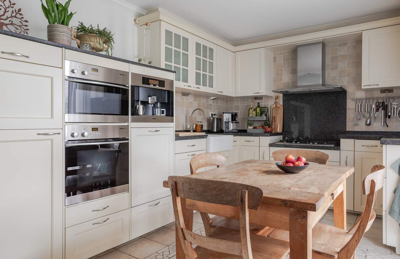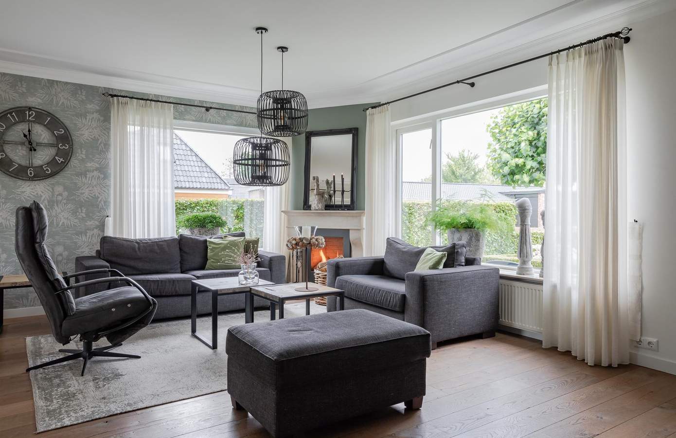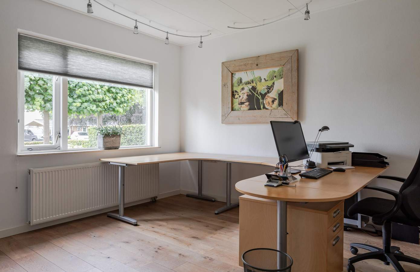 Op de begane grond zijn er naast de ruime living met openslaande deuren naar het terras aan de achterzijde, een ruime woonkeuken, bijkeuken en multifunctionele kamer. In de living ligt een fraaie houten vloer en op een druilerige dag geniet u bij een sfeervol haardvuur. Momenteel wordt de multifunctionele kamer gebruikt als kantoor. Deze kamer is ook perfect voor diegene die op zoek is naar ruimte voor zijn of haar eigen salon-/ praktijkruimte aan huis. U bereikt de kamer vanuit de hal, zo hoeft men niet door al uw leefruimtes heen. Wat is er nu mooier dan wonen en werken op één en dezelfde unieke plek.