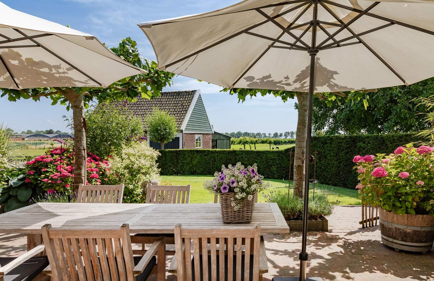 Het is hier een oase van rust met landelijke charme. Een paradijs voor liefhebbers van buitenleven waar de hectiek van het dagelijks leven plaatsmaakt voor rust en schitterende landelijke vergezichten. Geniet van lange zomerdagen op het ruime terras dat vanuit de woning te bereiken is. Hier zijn meerdere zitplekken waar u kunt ontspannen en de landelijke omgeving in u op kunt nemen. Achter de tuin ligt een stuk grasland, ideaal voor het houden van dieren. Hier kunt u uw eigen walnoten oogsten van de walnotenboom en vers fruit plukken van de perenbomen. Aan de achterzijde van het perceel staan tien oude knotwilgen, zij lijken u vriendelijk toe te wuiven, wanneer de wind zachtjes door de bladeren ritselt. Beleef het ultieme buitenleven op dit perceel, waar rust, natuur en comfort naadloos in elkaar overgaan. Een plek waar u kunt ontsnappen aan de drukte en echt tot rust kunt komen. De overkapping is met 36 m² een heus verlengstuk van uw woongenot. Bij uitstek de plek om na een drukke dag loungend van het zicht over de prachtig aangelegde tuin te genieten. Door de diverse bomen op het perceel weten de vogels deze plek ook goed te vinden en wordt u zo nu en dan getrakteerd op een concert van tjilpende vogels. De garage, ook wel ‘’De Boet’’ is een bijgebouw behorende bij de stolpboerderij die hier 50 jaar geleden heeft gestaan. Aangrenzend is een overkapping waar ooit de landbouwmachines stonden.