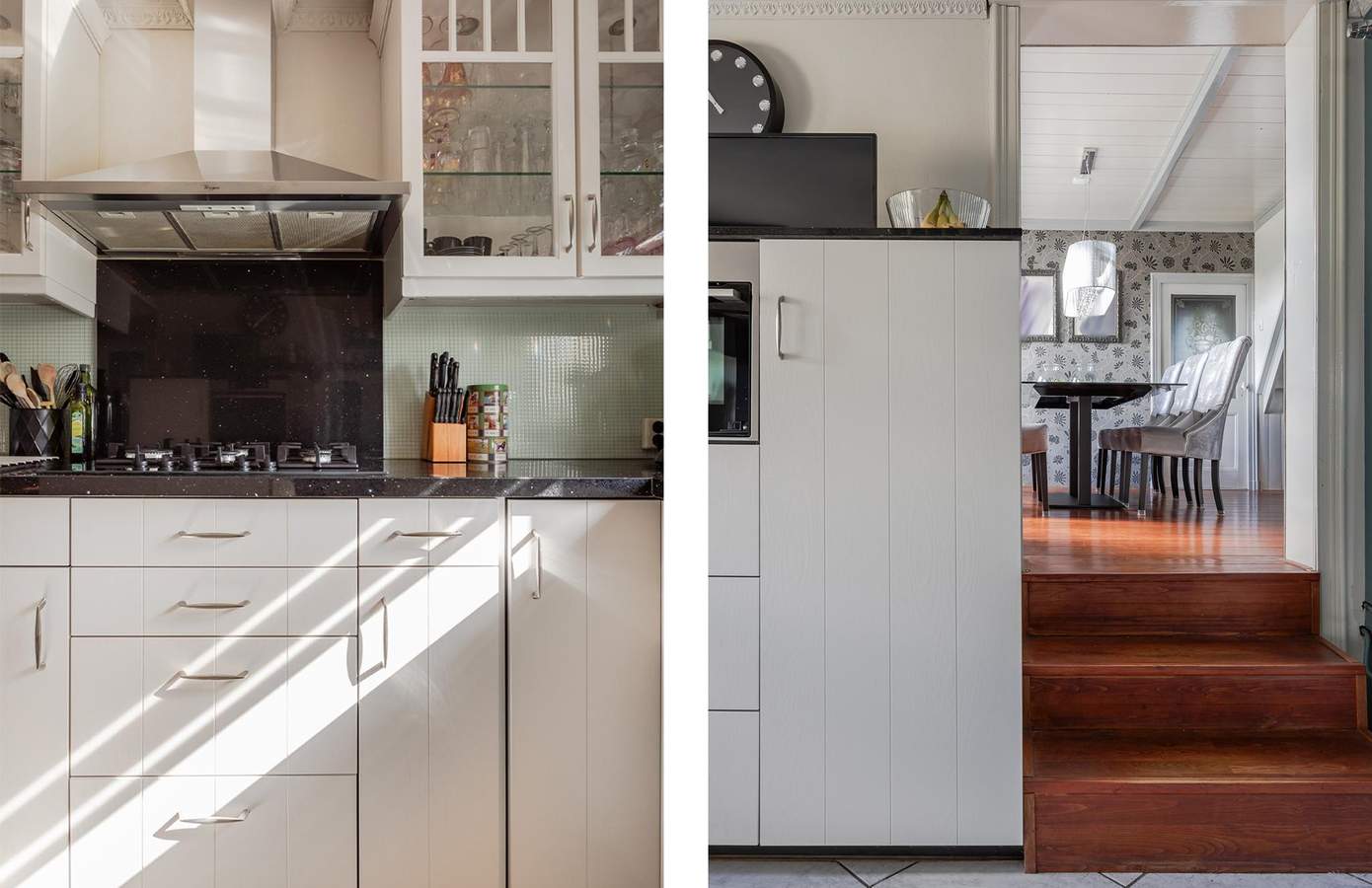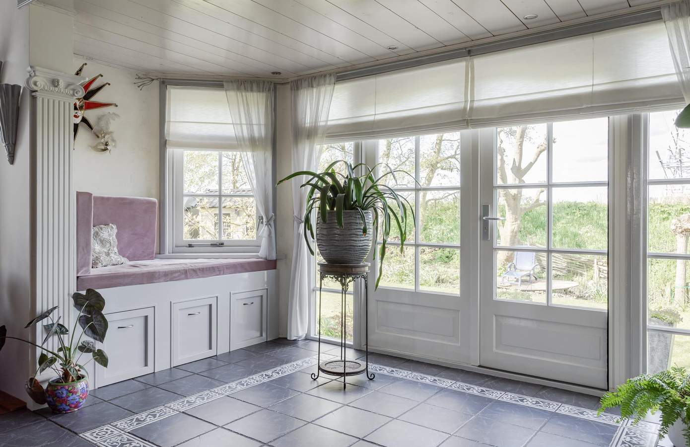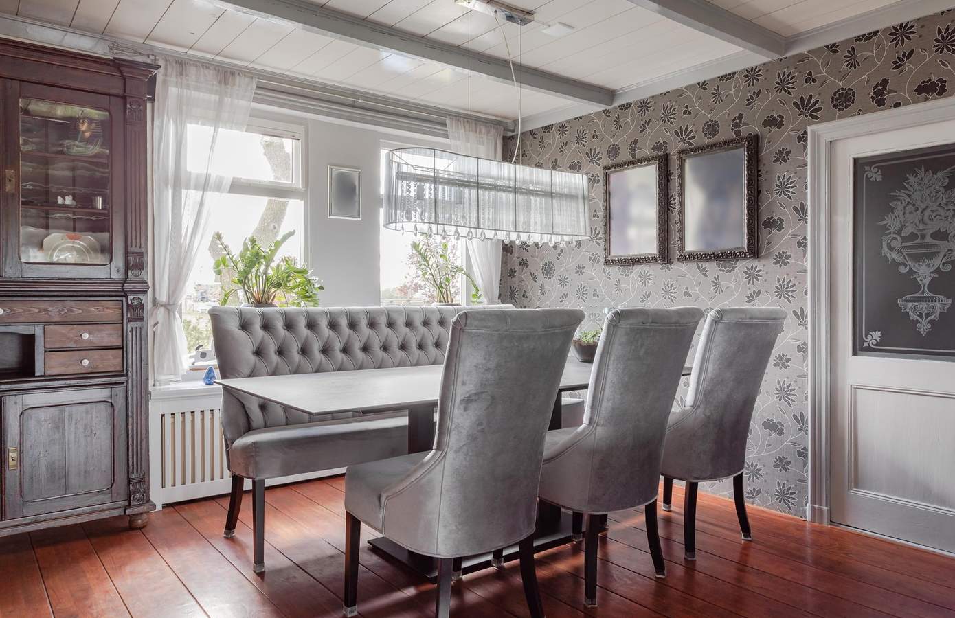 Vanuit de eetkamer heeft u toegang tot de keuken, die twee treden lager ligt dan het woongedeelte. Deze ruime keuken is volledig uitgerust met een vaatwasser, oven, 5-pits gasfornuis en koelkast. Vanuit de keuken kunt u door naar het achterste deel van de woning, waar de bijkeuken zich bevindt. Hierop aansluitend vindt u de slaapkamer en badkamer, beide op de begane grond. Deze ruime en lichte slaapkamer biedt een prachtig uitzicht op de tuin en de dijk, een schitterend tafereel om mee wakker te worden. Met openslaande deuren naar de tuin heeft u hier zelfs een eigen veranda waar u de dag goed kunt beginnen. De badkamer, die in 2016 is vernieuwd, straalt een warme en moderne sfeer uit en is uitgerust met een ligbad, inloopdouche, dubbele wastafel en toilet.