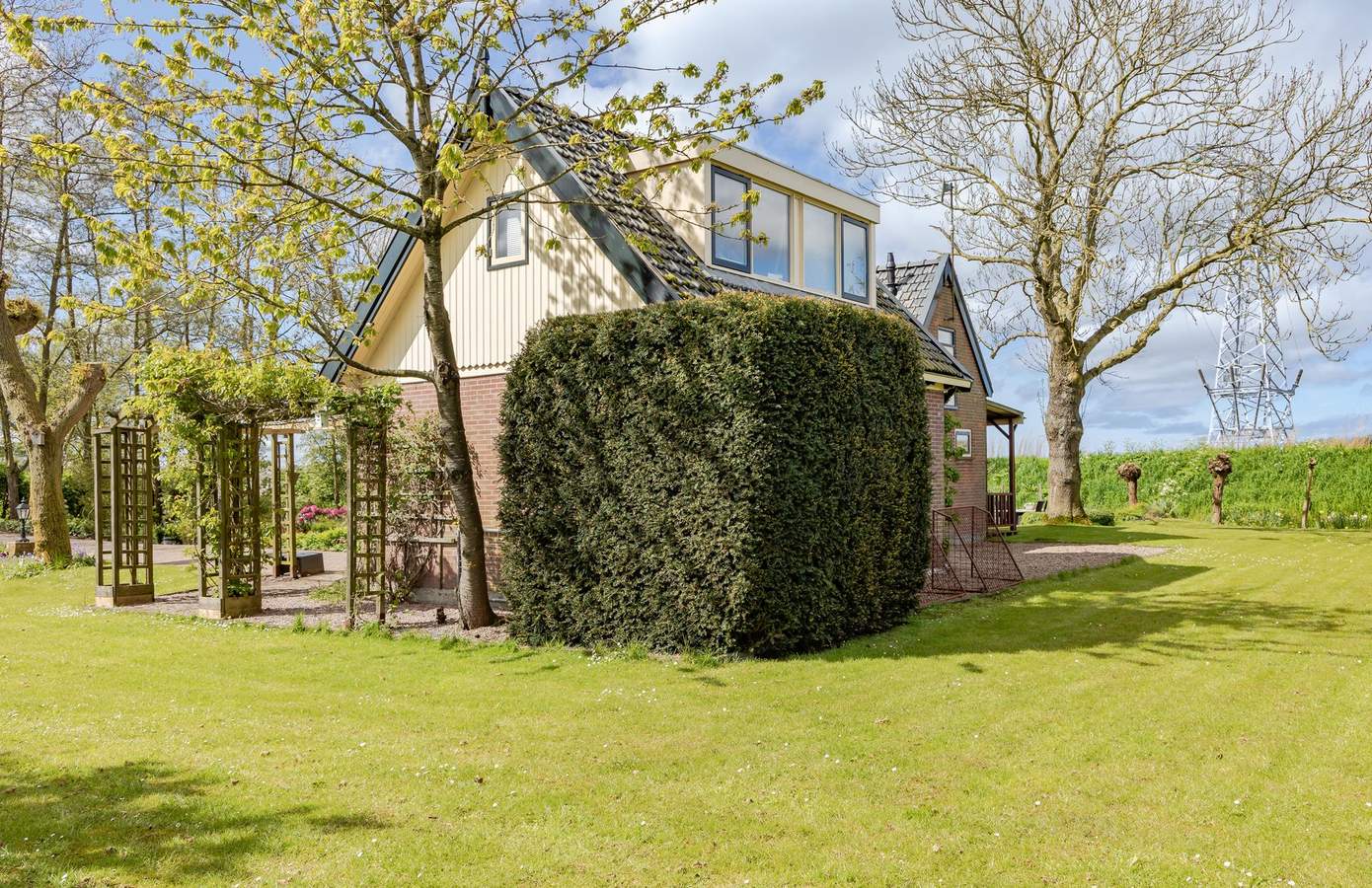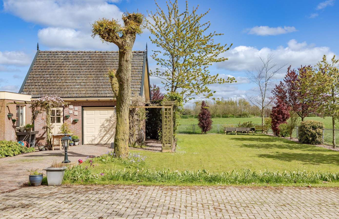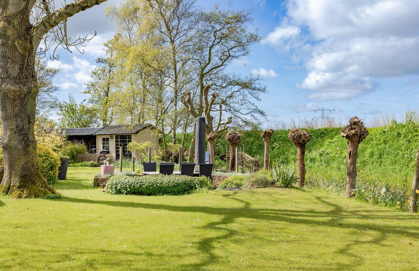 Vanaf de Gemaalweg rijdt u uw eigen oprit op, die helemaal doorloopt tot aan de garage. Rechts van de oprit is er nog een extra parkeerplaats met ruimte voor vier auto’s. Deze prachtige woning staat op een terp en wordt omgeven door een echte cottagetuin, vol met kleurrijke bloemenperken, struiken en volwassen bomen. De tuin, met een oppervlakte van maar liefst 1.920 m², is rondom de gehele woning gelegen en biedt volop ruimte om op verschillende plekken en terrassen van de zon te genieten. Of u nu wilt genieten van de zonneschijn of verkoeling zoekt onder de schaduwrijke bomen, deze tuin biedt het allemaal. De weelderige, groene oase vol planten, bomen en bloemen is het hele jaar door een genot om in te verblijven. U hoort hier de hele dag de vogels fluiten en kunt in alle privacy genieten van uw eigen stukje natuur, een tuin die perfect is voor iemand met groene vingers. Aan de zijkant van de woning, bij het water, is een gezellige zitkuil aangelegd waar u op zomerse avonden tot in de late uurtjes kunt verblijven. Voor in de tuin bevinden zich nog twee tuinhuisjes, ideaal voor het opbergen van uw tuinspullen en het opslaan van haardhout.