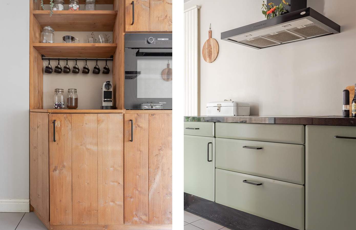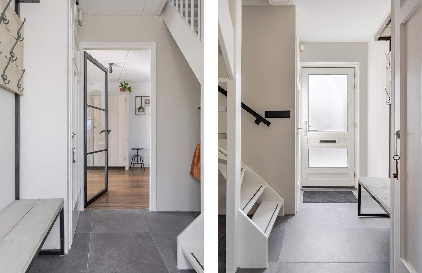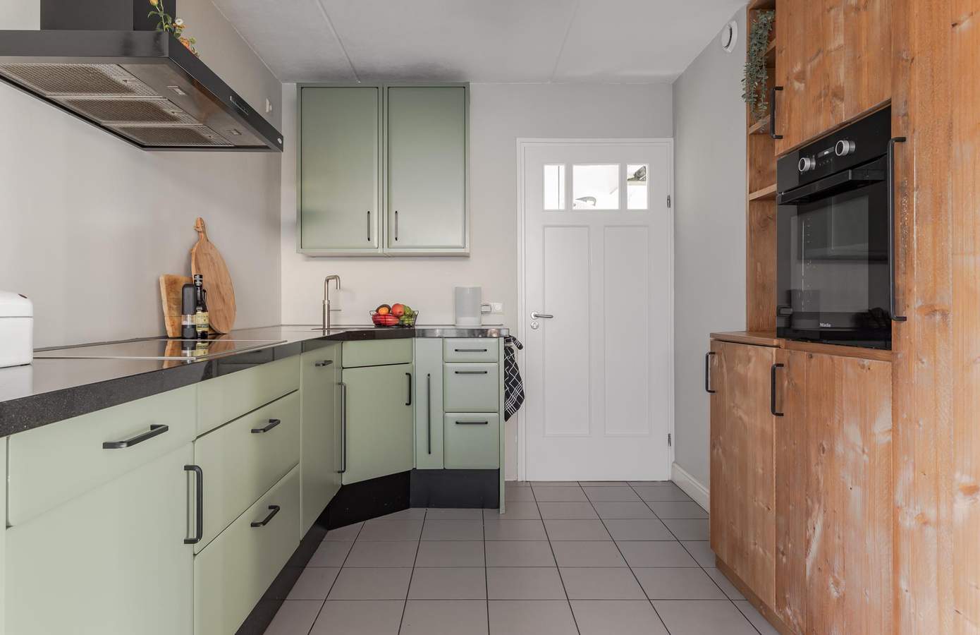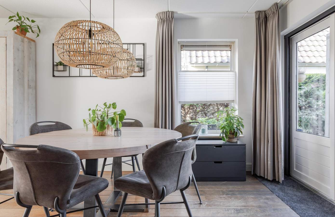 Via de zij-entree stapt u binnen in een lichte hal met toegang tot het moderne toilet (vernieuwd in 2024), de trapopgang (2025) en de woonkamer. De royale woonkamer, gelegen aan de straatzijde, is dankzij de vele ramen heerlijk licht en biedt een vrij uitzicht over de wijk. De zithoek met sfeervolle haard vormt een warme plek om te ontspannen, terwijl de eethoek in open verbinding staat met de keuken. De keuken is praktisch ingericht en voorzien van een oven, vaatwasmachine en keramische kookplaat. Met voldoende kastruimte, een koffiecorner en een moderne uitstraling is dit een fijne plek om te koken. Via de tuindeur staat u direct in de achtertuin, waardoor binnen en buiten mooi in elkaar overlopen. Aansluitend vindt u de bijkeuken met aansluitingen voor de wasmachine en droger, gevolgd door de inpandige garage.
