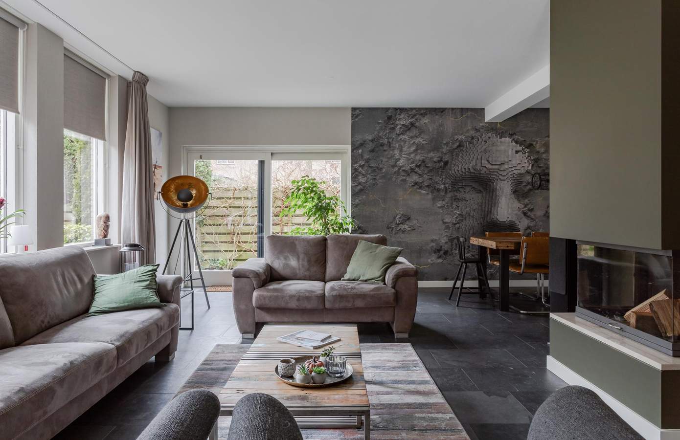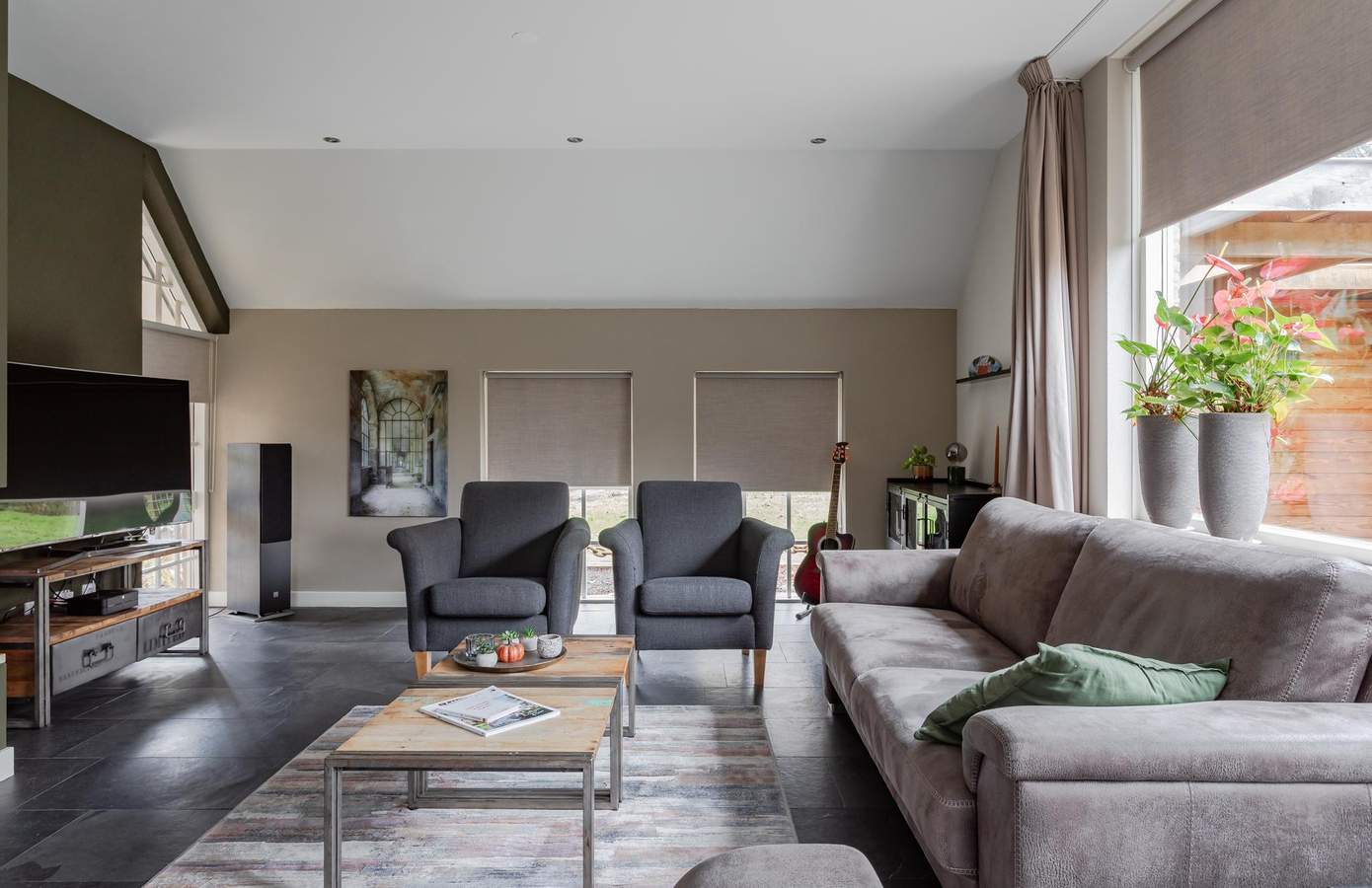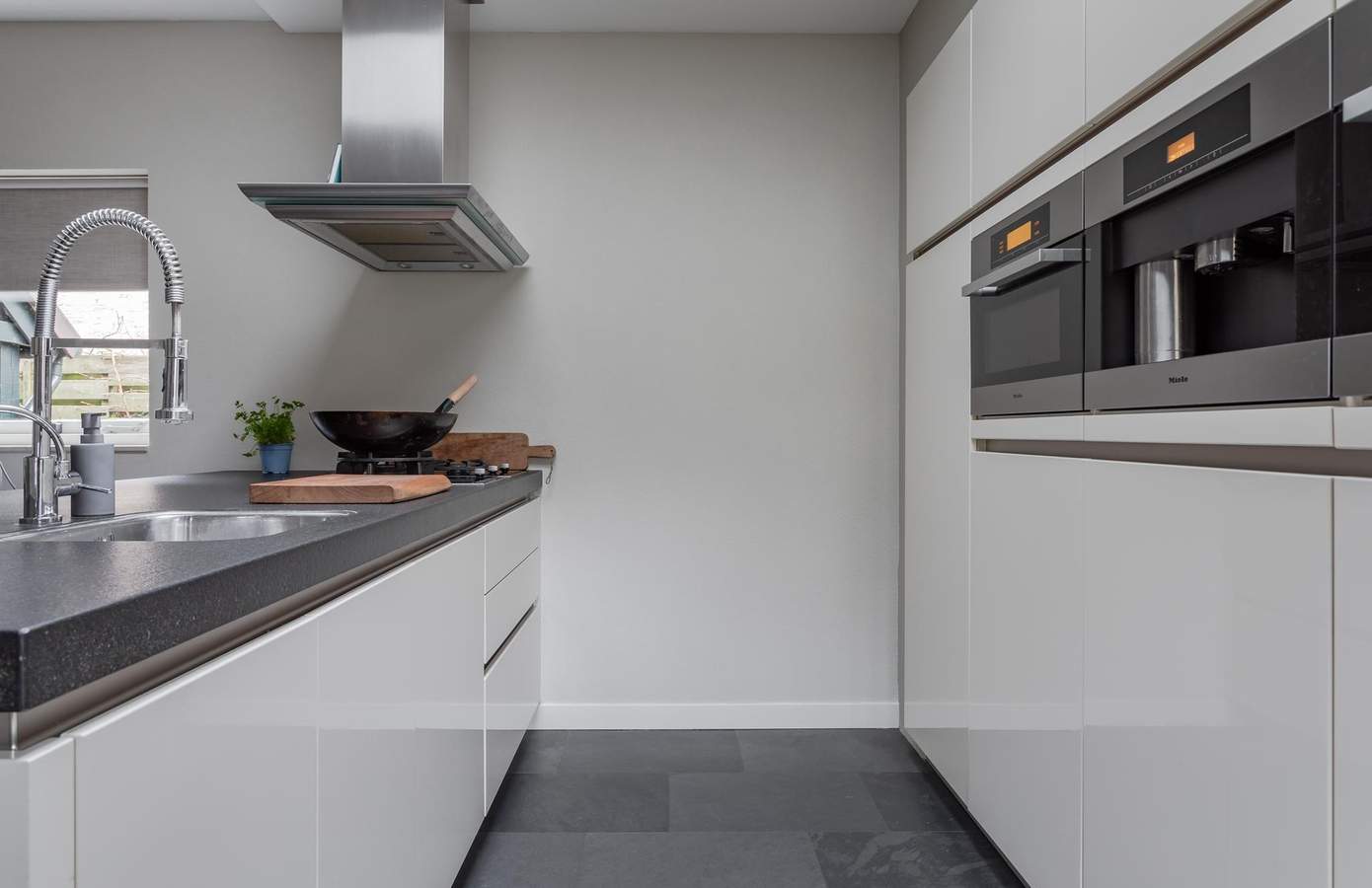 Geniet van de gezelligheid van de L-vormige woonkamer met een sfeervolle open haard en een schuifpui die uitkomt op de tuin. De royale keuken in de aanbouw is een droom voor kookliefhebbers, met een kookeiland en een scala aan inbouwapparatuur van Miele, waaronder een combi-magnetron, stoomoven, ingebouwd koffiezetapparaat, Gascomfort met wokbrander, Quooker kraan en meer. Het ingebouwde daklicht zorgt voor veel lichtinval. Naast de keuken is een handig kantoortje, ideaal voor thuiswerken. De begane grond vloer is van leisteen en is voorzien van vloerverwarming.