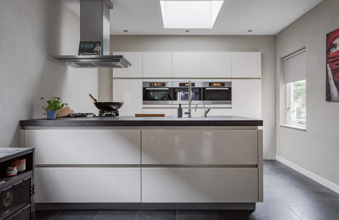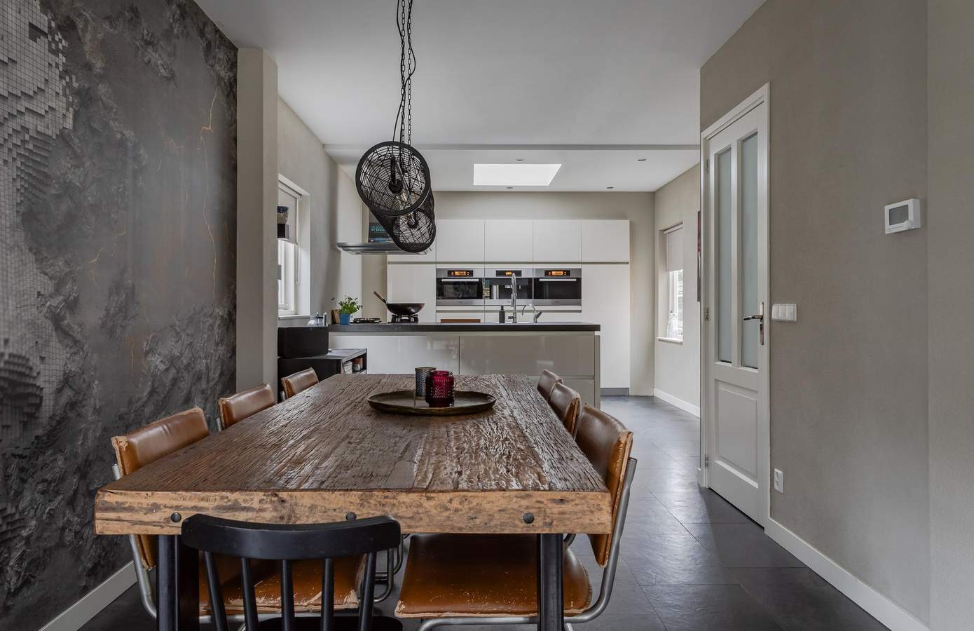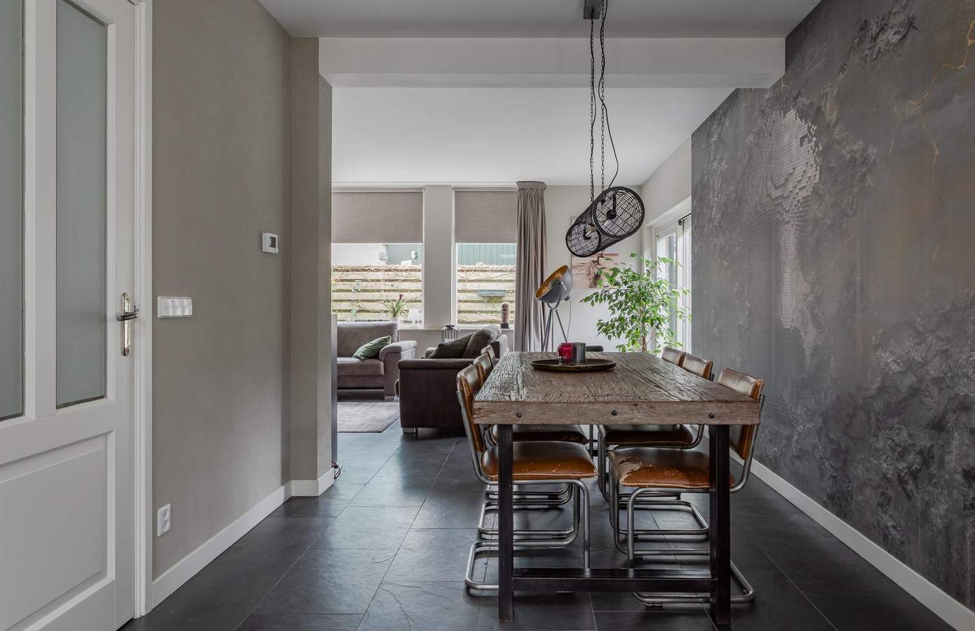 Geniet van de gezelligheid van de L-vormige woonkamer met een sfeervolle open haard en een schuifpui die uitkomt op de tuin. De royale keuken in de aanbouw is een droom voor kookliefhebbers, met een kookeiland en een scala aan inbouwapparatuur van Miele, waaronder een combi-magnetron, stoomoven, ingebouwd koffiezetapparaat, Gascomfort met wokbrander, Quooker kraan en meer. Het ingebouwde daklicht zorgt voor veel lichtinval. Naast de keuken is een handig kantoortje, ideaal voor thuiswerken. De begane grond vloer is van leisteen en is voorzien van vloerverwarming.