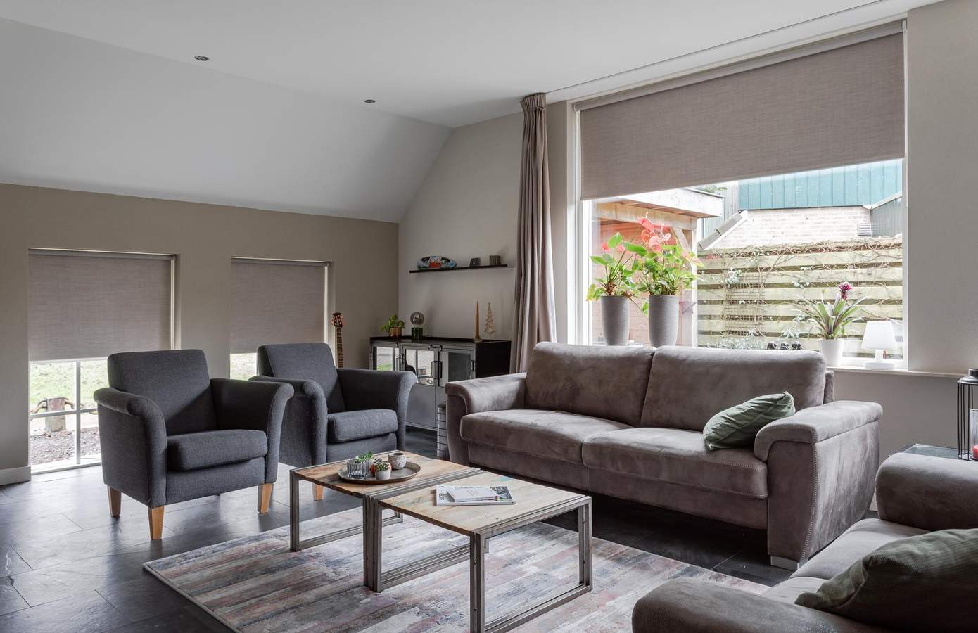 Door deze elementen alsmede door de lage roederamen en de twee dakkapelletjes aan de voorzijde heeft de woning een unieke uitstraling.
