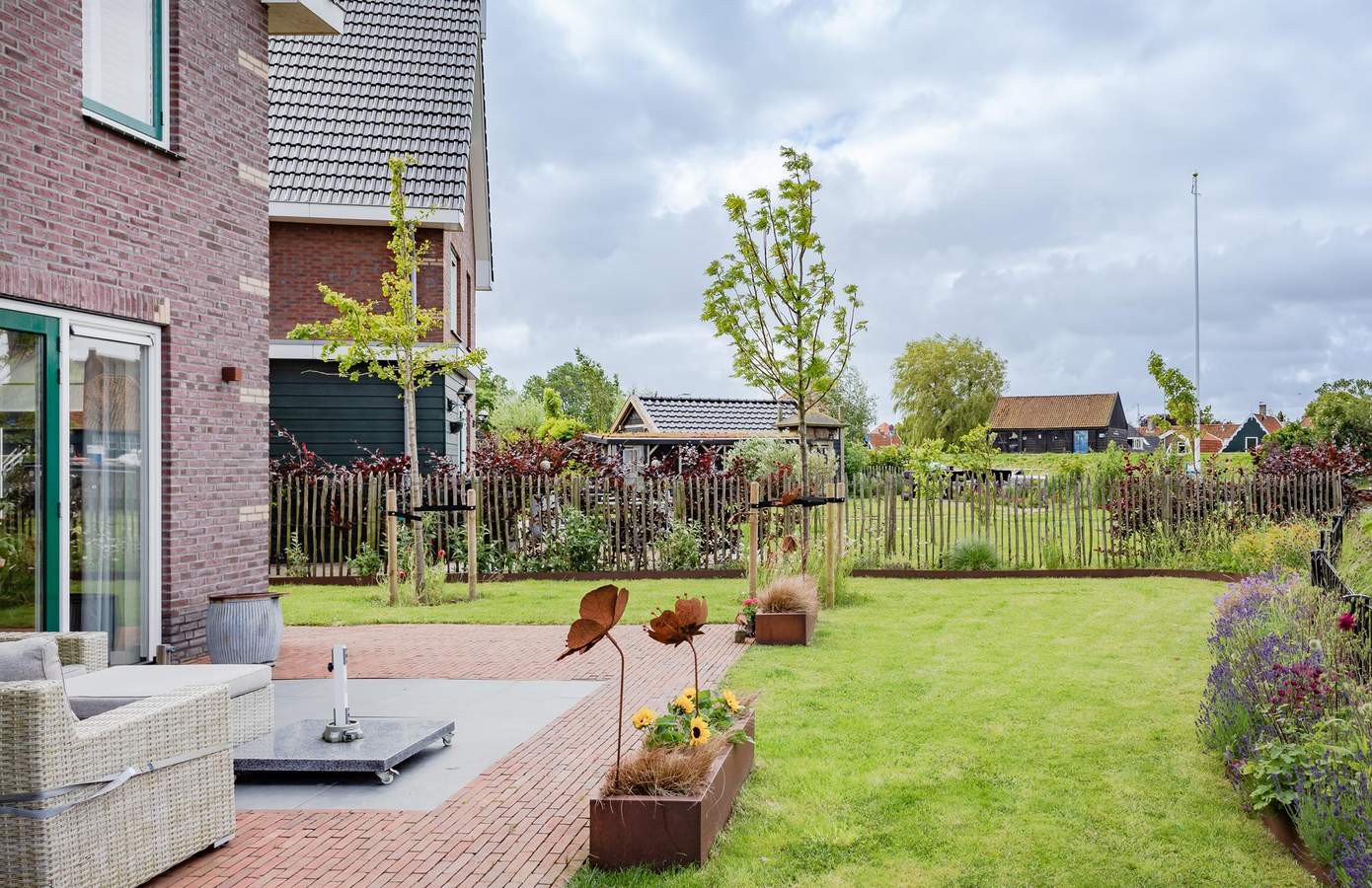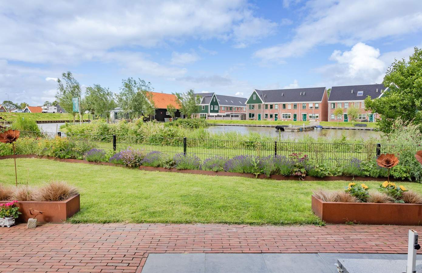 Stap naar buiten en ontdek de prachtige tuin die de hele woning omringt, met een groot gedeelte op het zonnige zuidwesten, perfect om te genieten van de stralende zonuren. Het adembenemende uitzicht over het water blijft elke dag betoverend, met rustig voorbijvarende bootjes. Bewust geplaatste lage schuttingen omringen de tuin, waardoor je ongestoord kunt genieten van het weidse panorama.