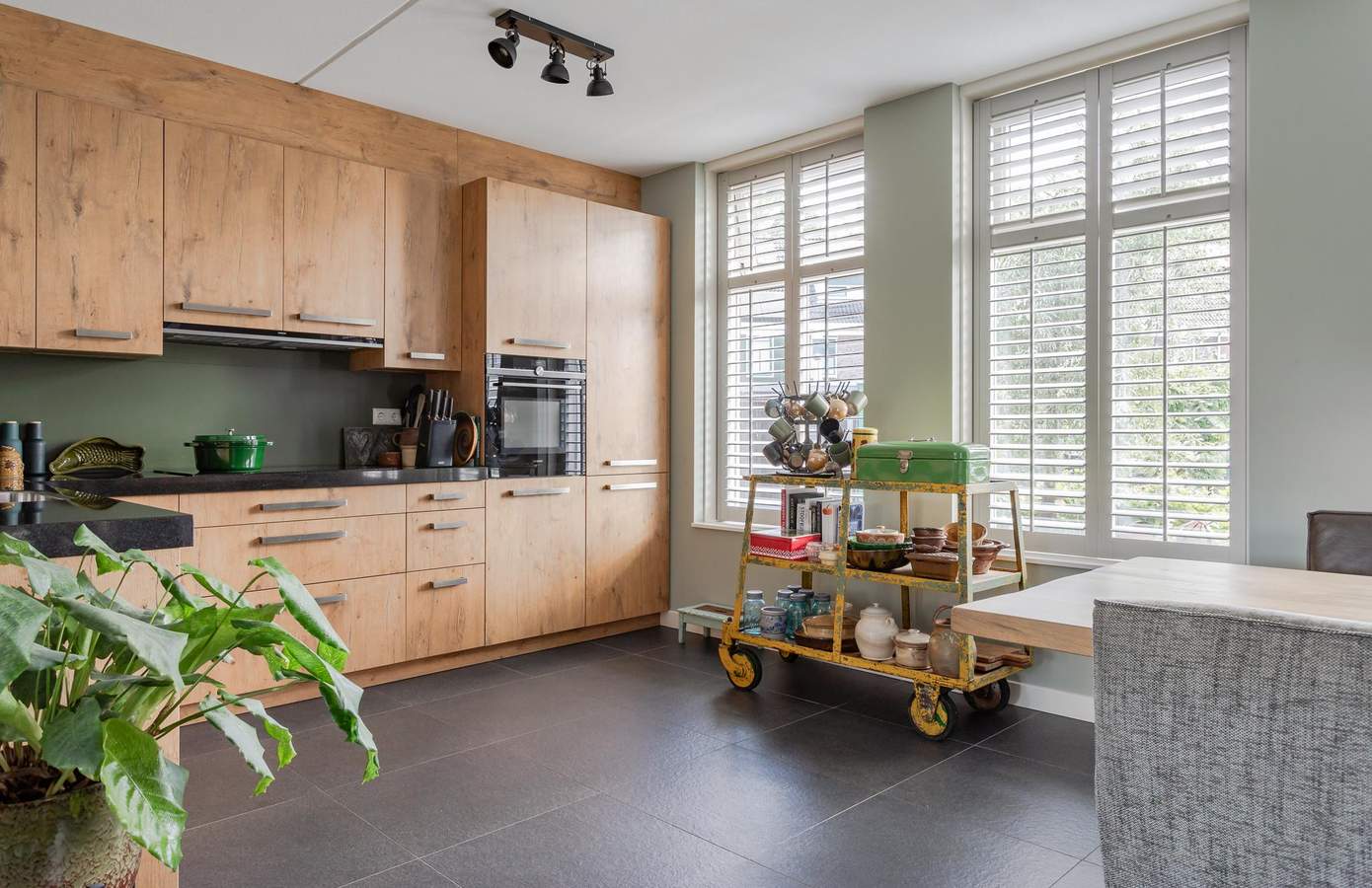 Aan de voorkant van het huis bevindt zich de open keuken, waar u gezellig aan de eettafel kunt zitten terwijl er voor u wordt gekookt. De moderne keuken is van alle gemakken voorzien. Deze sfeervolle ruimte kan worden afgesloten met prachtige stalen ensuite deuren, die een gevoel van luxe en stijl aan de woning toevoegen. Deze luxe en afwerking strekt zich uit door de hele woning, waarbij vloerverwarming zorgt voor warmte en comfort.