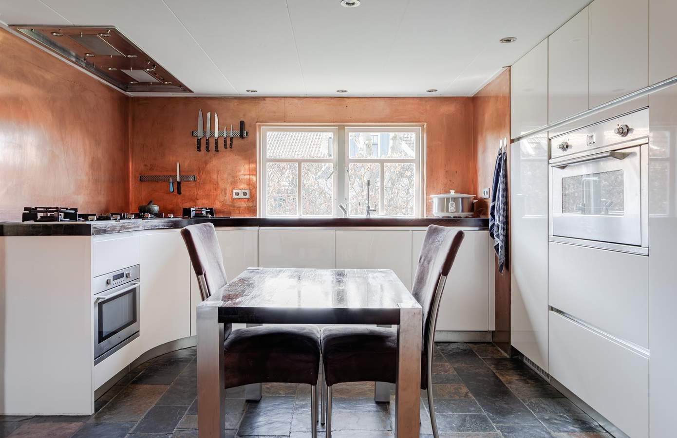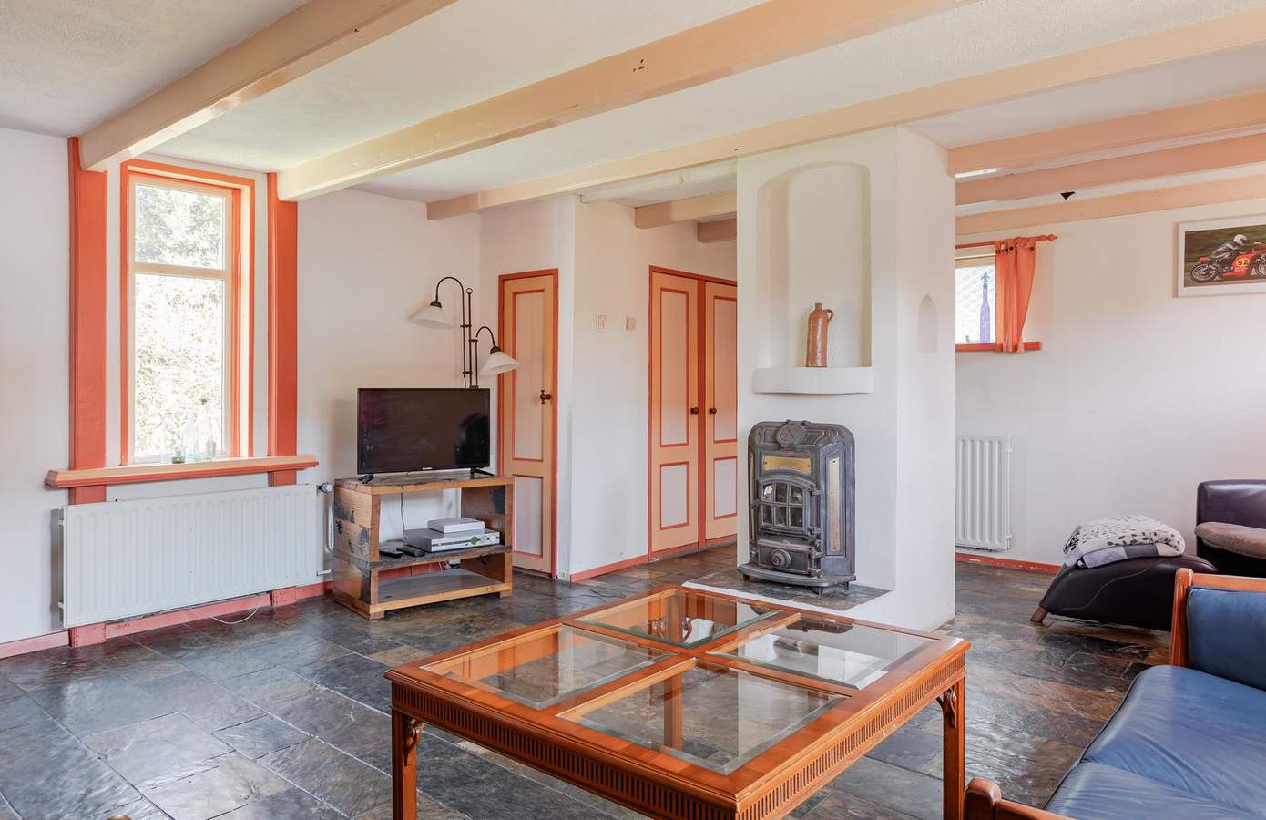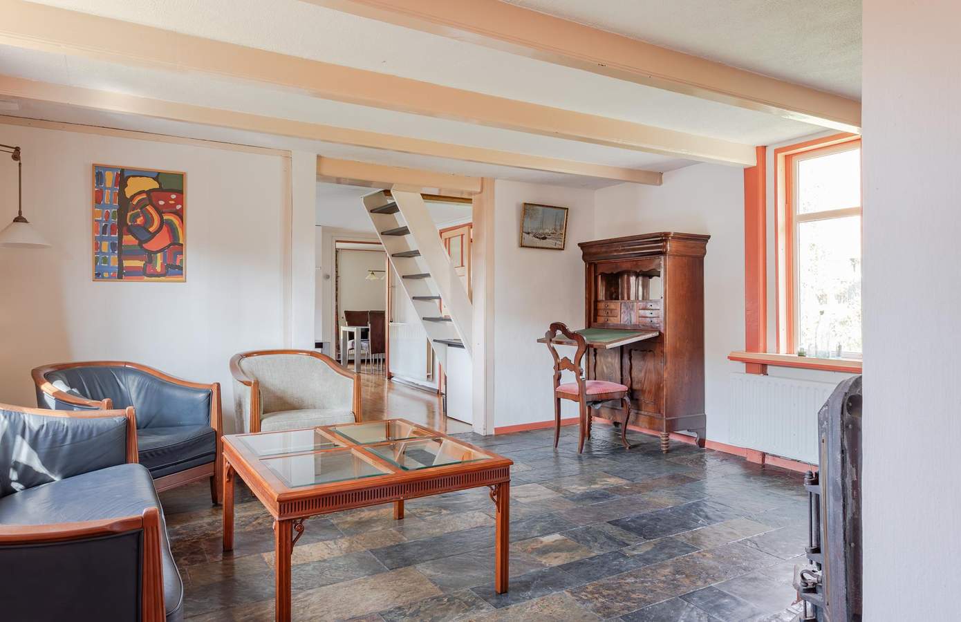 Bij binnenkomst ervaart u direct de unieke sfeer van deze karakteristieke woning. De woonkamer is voorzien van authentieke houten balken, lage vensterbanken en lambrisering, die samen een warme uitstraling geven. De keuken, met een opvallende koperen muur, is een waar ideale plek voor kookliefhebbers. Met een 6-pits gasfornuis, een royale oven en een Quooker is de keuken van alle gemakken voorzien. Aan de achterzijde van de woning bevindt zich een multifunctionele ruimte, die momenteel dienstdoet als eetkamer. Deze ruimte is desgewenst eenvoudig om te vormen tot een extra slaapkamer. Vanuit deze kamer heeft u via openslaande deuren toegang tot de fraai aangelegde tuin. Aangrenzend bevindt zich de badkamer, uitgerust met een ligbad, douche en wastafel.