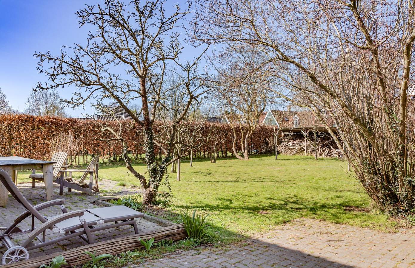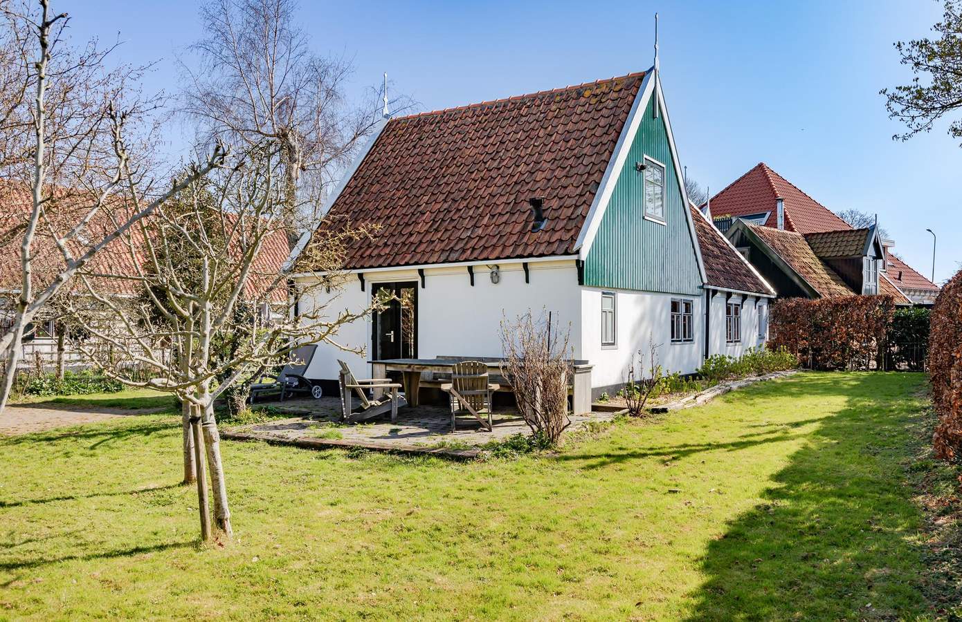 De woning beschikt over een diepe, fraai aangelegde tuin op het westen, waardoor u volop kunt genieten van de middag- en avondzon. De tuin wordt gesierd door een goed onderhouden grasweide en een diversiteit aan prachtige bomen en struiken, die niet alleen sfeer geven, maar ook volop privacy bieden. Achter in de tuin bevindt zich een ruime schuur, volledig in stijl met de woning — ideaal voor het opbergen van tuingereedschap of als klusruimte. De achterzijde van de tuin grenst direct aan het water, waar een royaal vlonderterras uitnodigt om in alle rust te genieten van het uitzicht over het water en de karakteristieke Laurenskerk. Vanaf hier stapt u zo in een bootje voor een ontspannen vaartocht door het pittoreske Kolhorn.