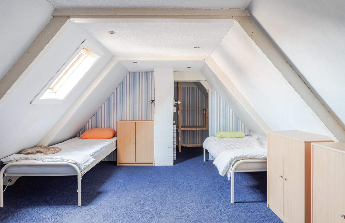 Op de eerste verdieping treft u momenteel twee royale slaapkamers. Aan de linkerzijde bevindt zich een ruime slaapkamer met een praktische inloopkast. Aan de rechterzijde zijn twee kamers gesitueerd, waarvan één is ingericht als slaapkamer en de andere als wasruimte.