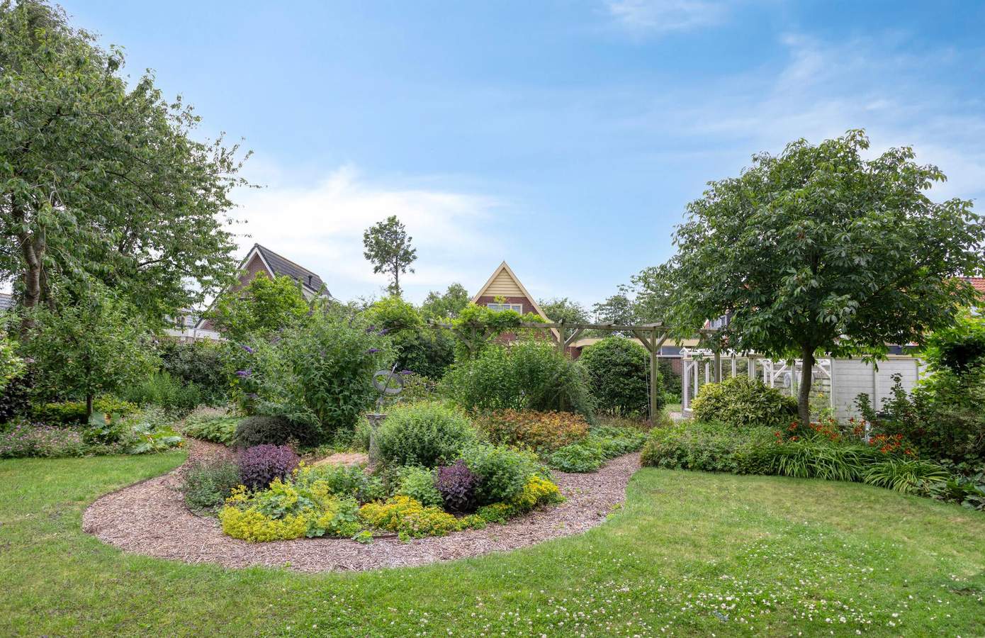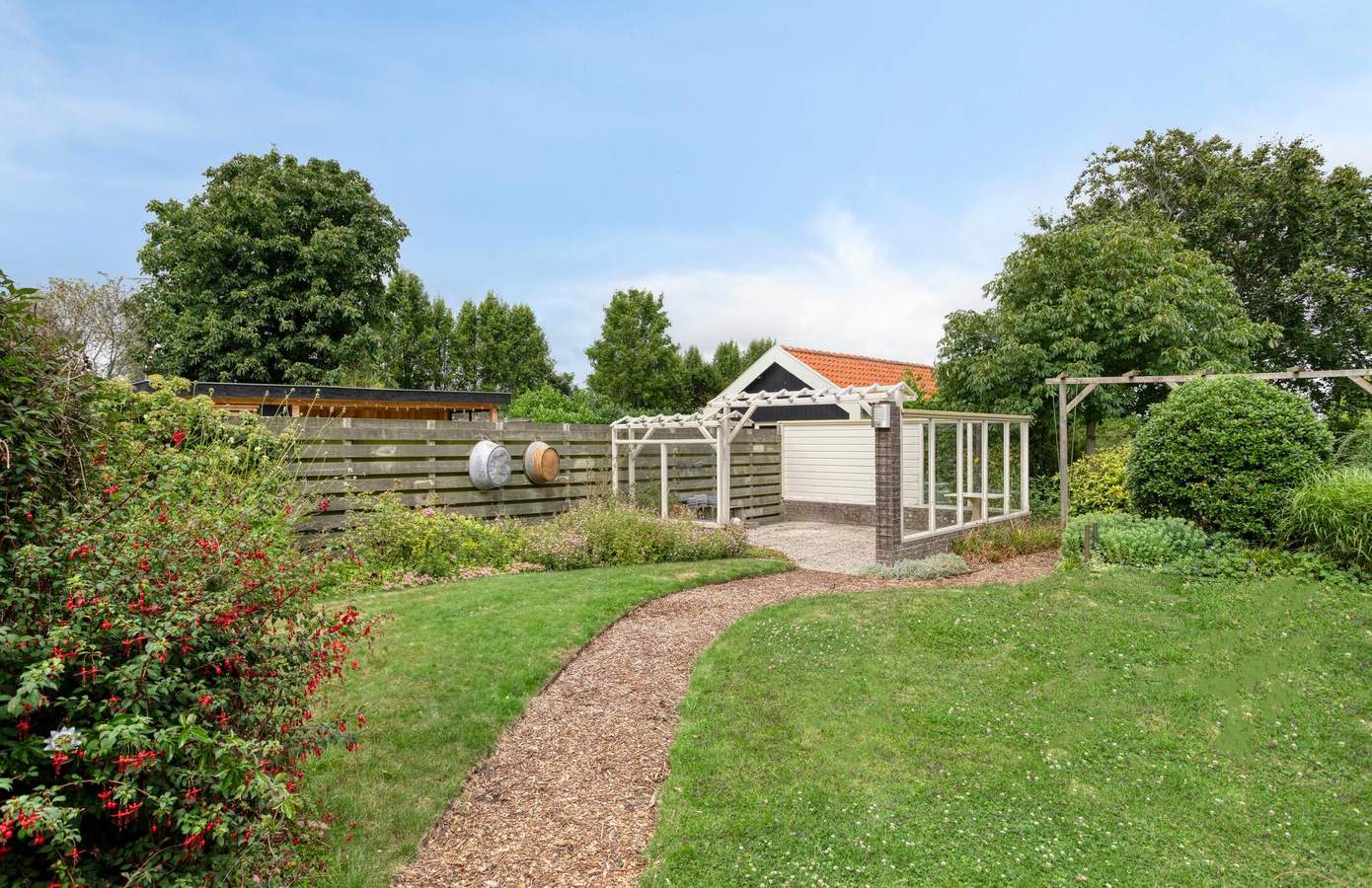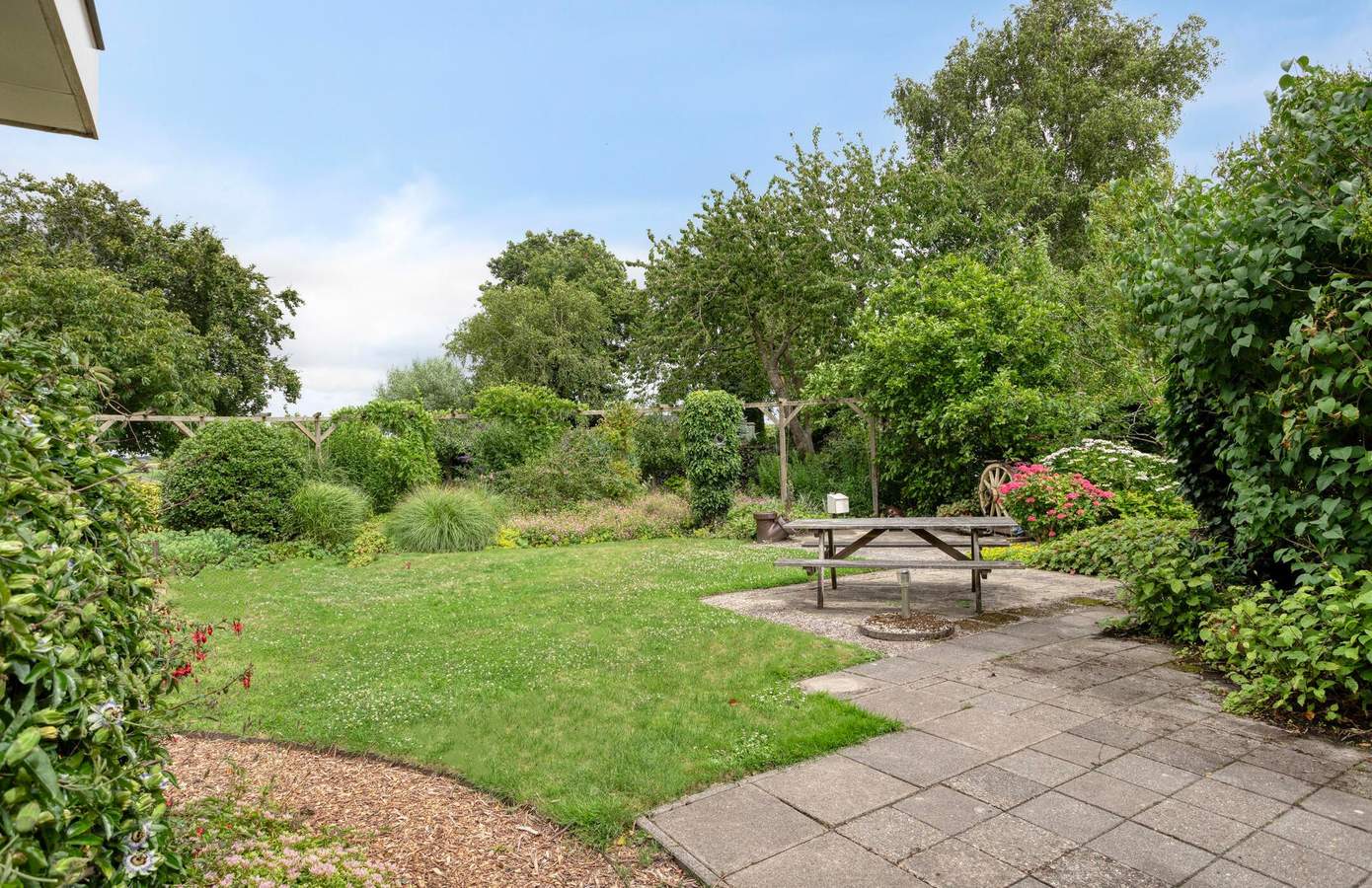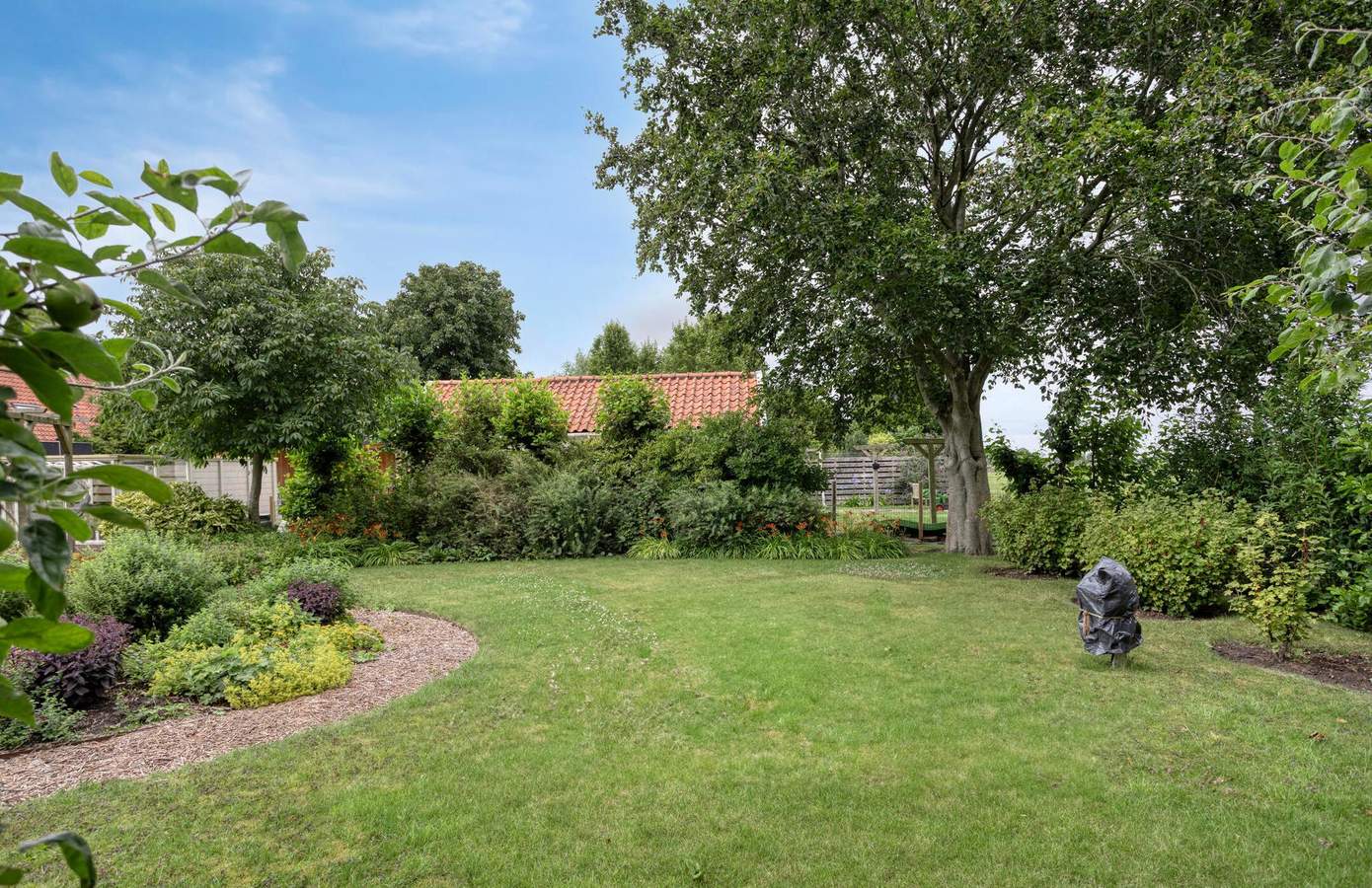 De tuin is meer dan een tuin: het is buitenleven in een van zijn mooiste vormen. Via het pad langs het huis wandelt u naar achteren, waar het houtsnipperpad u uitnodigt om te dwalen langs weelderige beplanting, fruitbomen en zonnige terrassen. Dit stukje groen geluk is met liefde ontworpen en aangelegd door hoveniersbedrijf Klaas Bart, een naam die in Noord-Holland synoniem staat voor vakmanschap. De tuin biedt een harmonieuze mix van gras, volgroeide bomen en bloeiende planten. Het groen verandert mee met de seizoenen en zorgt elk moment van het jaar voor kleur, beweging en geur. Achter in de tuin staan fruitbomen, terwijl uw blik wegdwaalt over de weilanden tot aan het gemaal en de Westfriesedijk. Achter in de tuin is een stroompunt aanwezig, perfect voor wie droomt van een atelier in het groen of een fijne werkplek waar inspiratie vanzelf komt. U woont hier op een zonnige plek, met karakter. Een plek waar de tuin niet alleen iets is om naar te kijken, maar een plek wordt waar u leeft, ontspant en geniet.