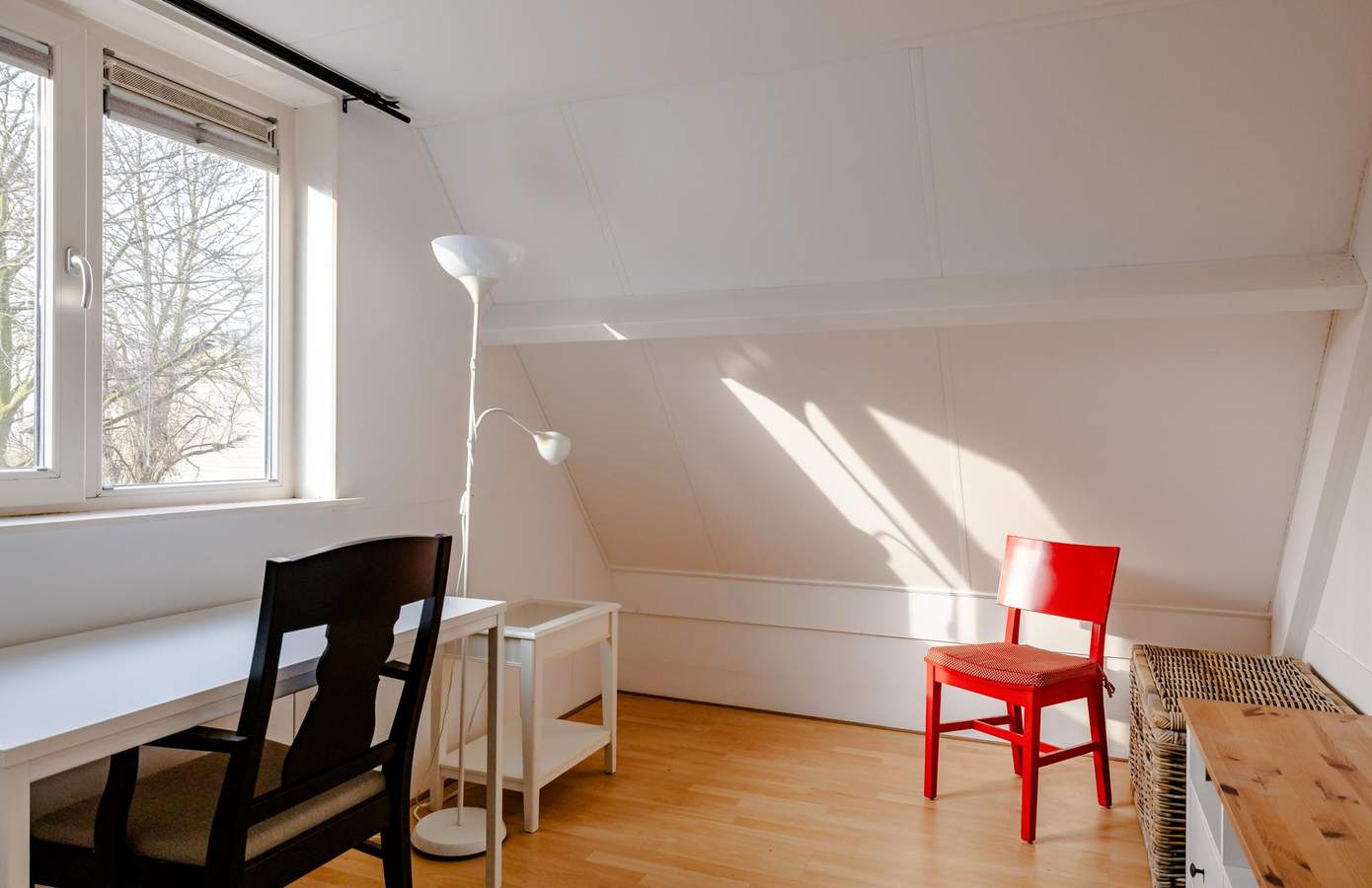 De zolderverdieping is bereikbaar via een vaste trap en biedt extra ruimte voor opslag en werken. Hier is een werkplek gerealiseerd en bevindt zich tevens de cv-installatie. Een functionele verdieping waar ook nog opbergruimte is.