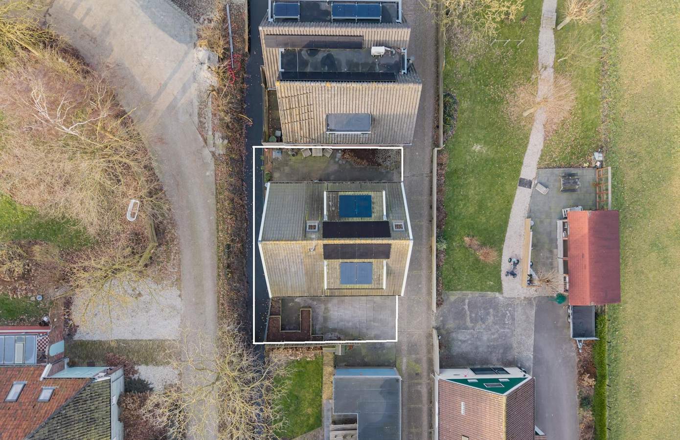 Het perceel van 190 m² is compact, maar functioneel ingericht en voorzien van een parkeerplek. Door de ligging achter het dorpslint is er sprake van een beschutte buitenruimte, met voldoende privacy om buiten te zitten en te genieten van de omgeving. Het beperkte formaat maakt de tuin overzichtelijk en onderhoudsvriendelijk, passend bij wie buiten wil zijn zonder veel onderhoud.