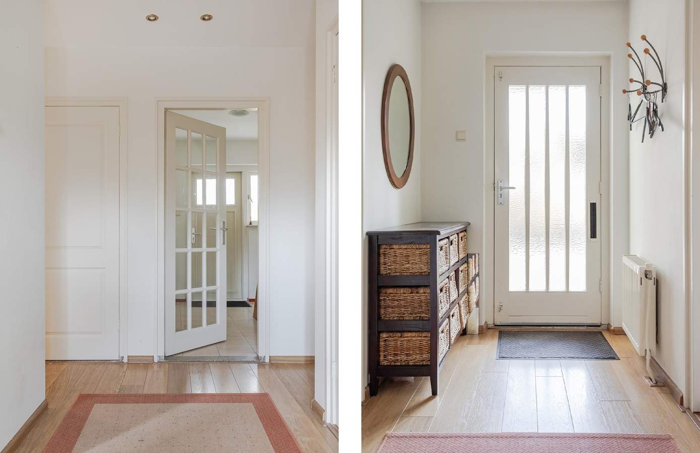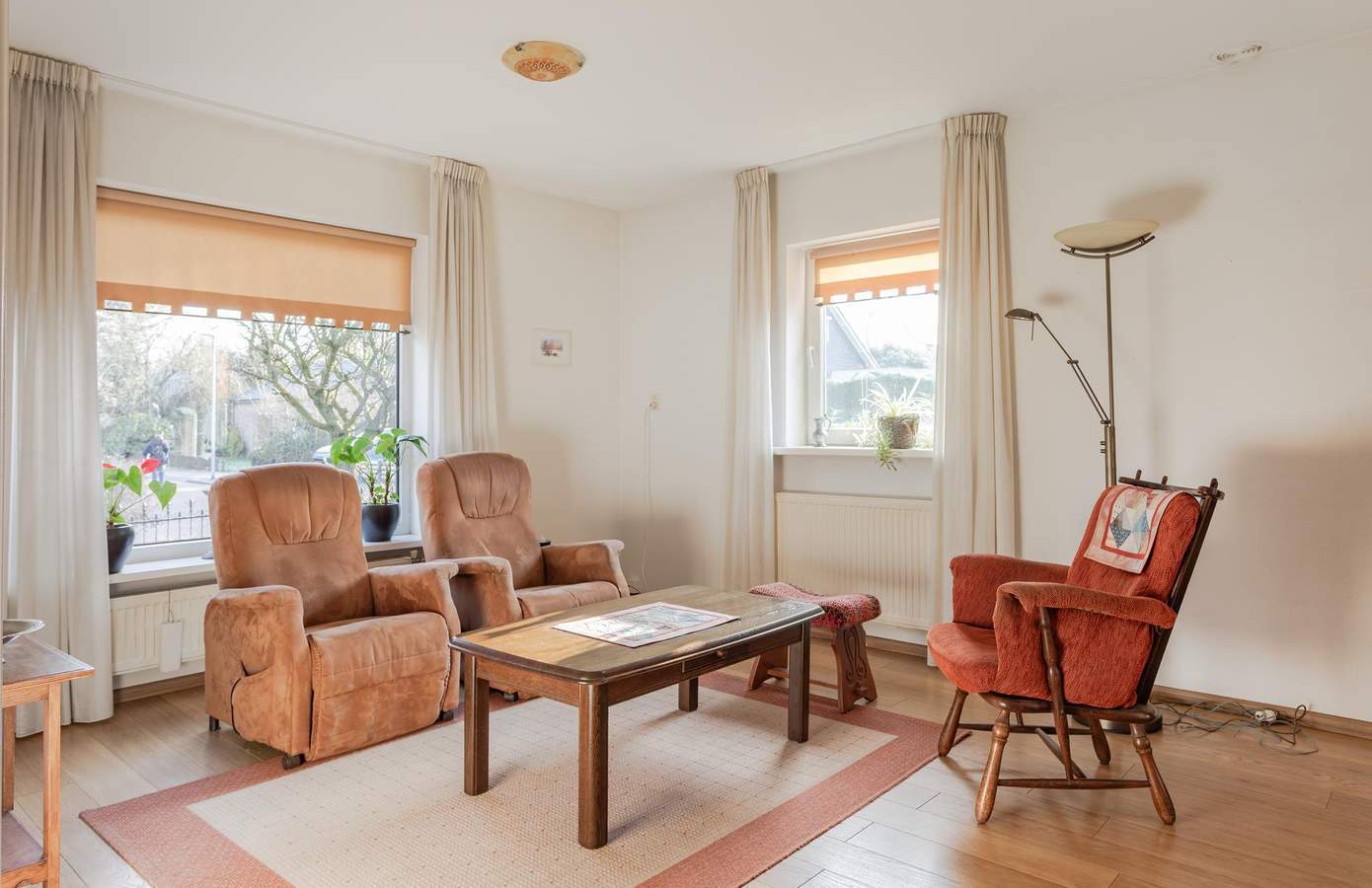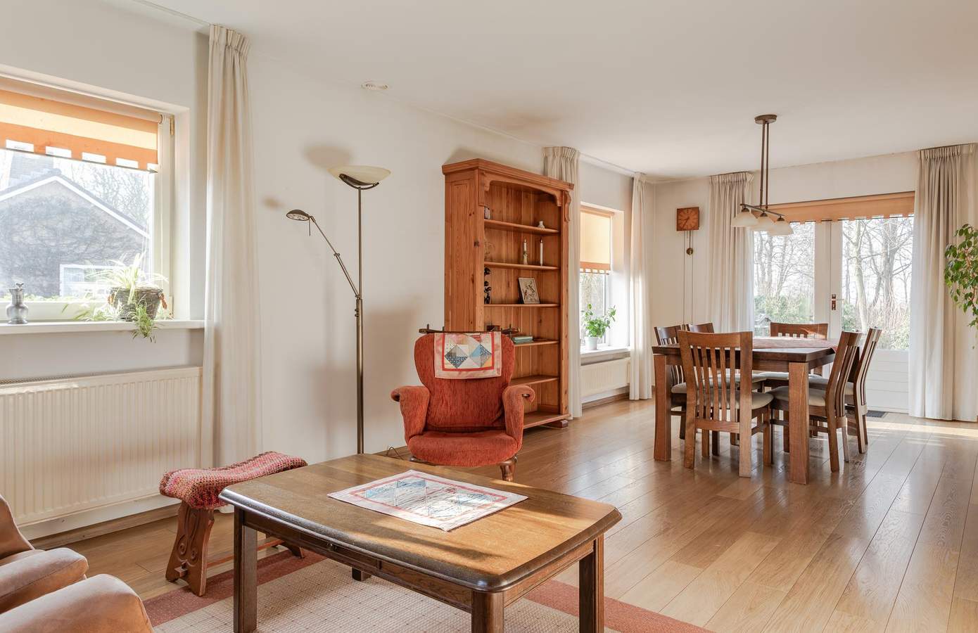 Bij binnenkomst valt direct de praktische indeling op. De woonkamer en open keuken hebben een ruimtelijke uitstraling door de aanpassing die in het verleden is doorgevoerd. De begane grond biedt verder twee comfortabele slaapkamers en een goed onderhouden badkamer, wat het leven op één verdieping mogelijk maakt. Slapen op de begane grond én een ruimte om thuis te werken behoort hier tot de mogelijkheden. Op de eerste verdieping zijn drie slaapkamers.