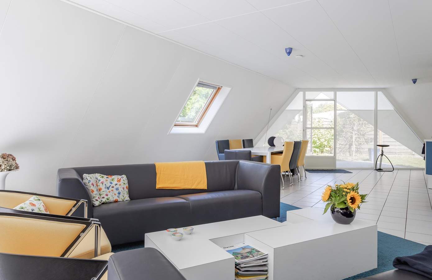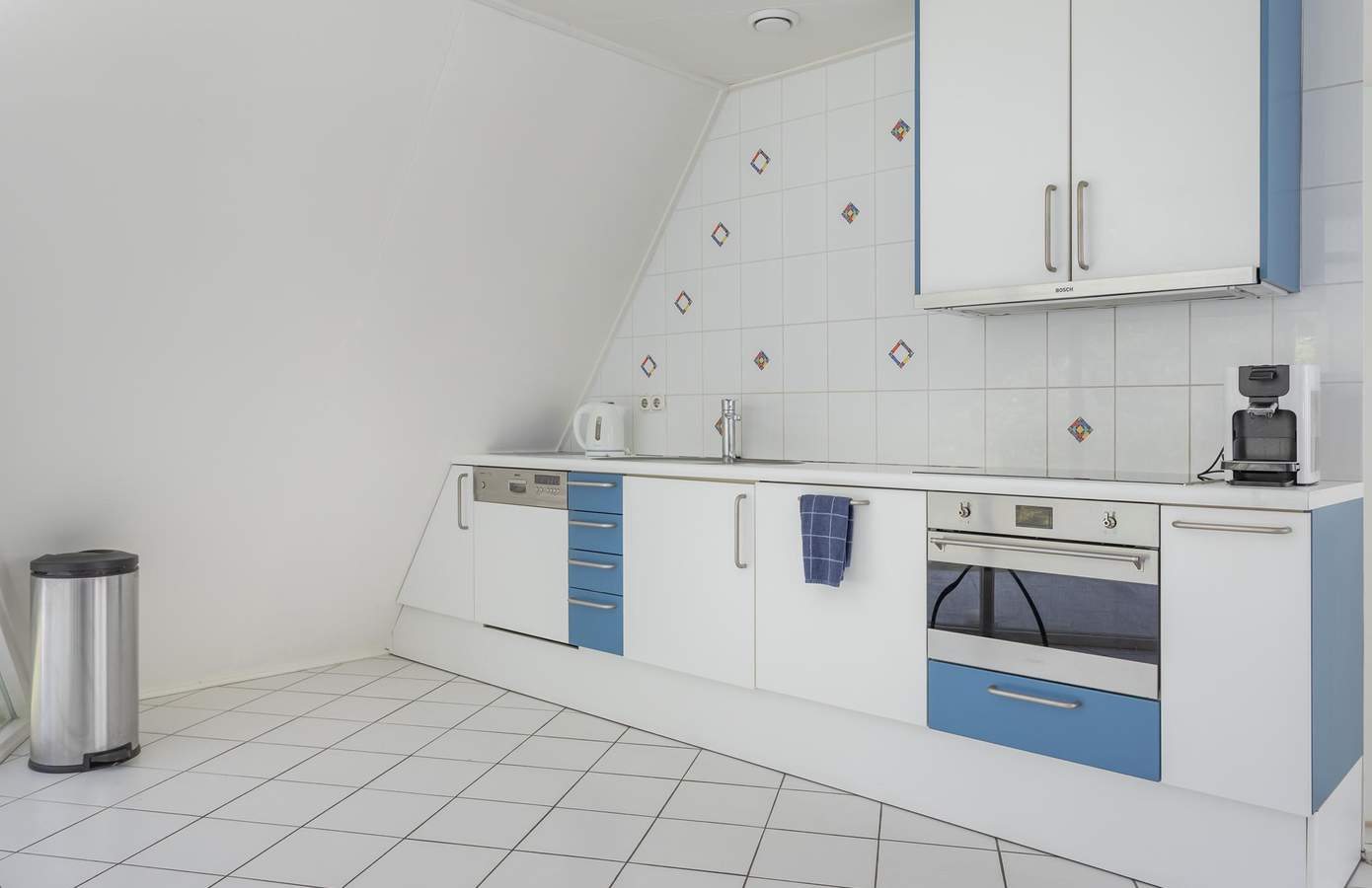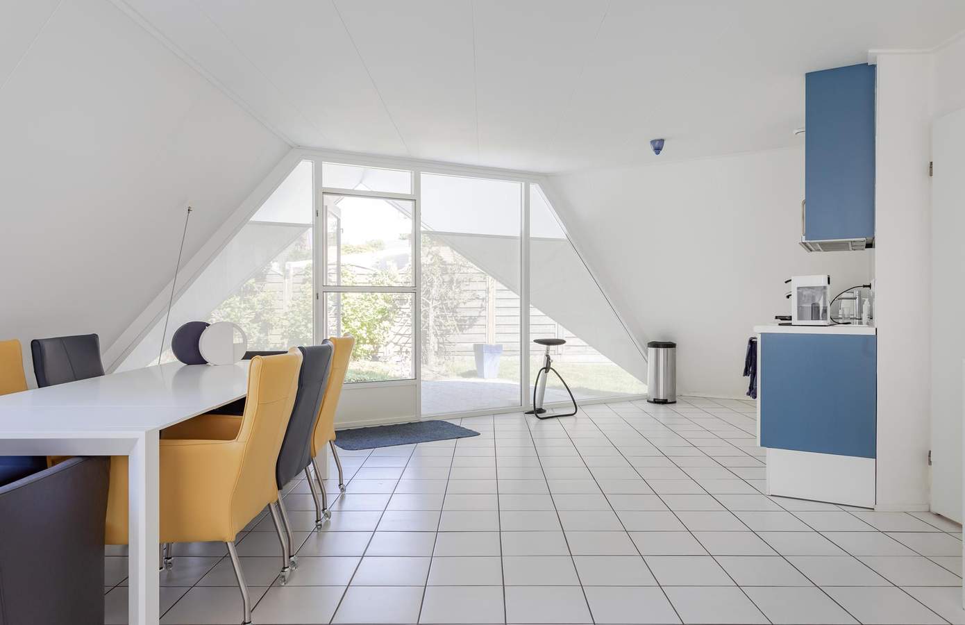 Aan de woonkamer grenst een extra ruimte met een badkamer op de begane grond. Momenteel in gebruik als een open kantoor, kan deze ruimte eenvoudig worden omgebouwd tot een extra slaapkamer met eigen badkamer, waardoor gelijkvloers wonen mogelijk wordt. De keuken is uitgerust met inbouwapparatuur en heeft een deur in de glazen pui die toegang biedt tot de tuin, wat de verbinding tussen binnen en buiten versterkt. De gehele begane grond is voorzien van zowel vloerverwarming als luchtverwarming, wat zorgt voor een aangenaam binnenklimaat.