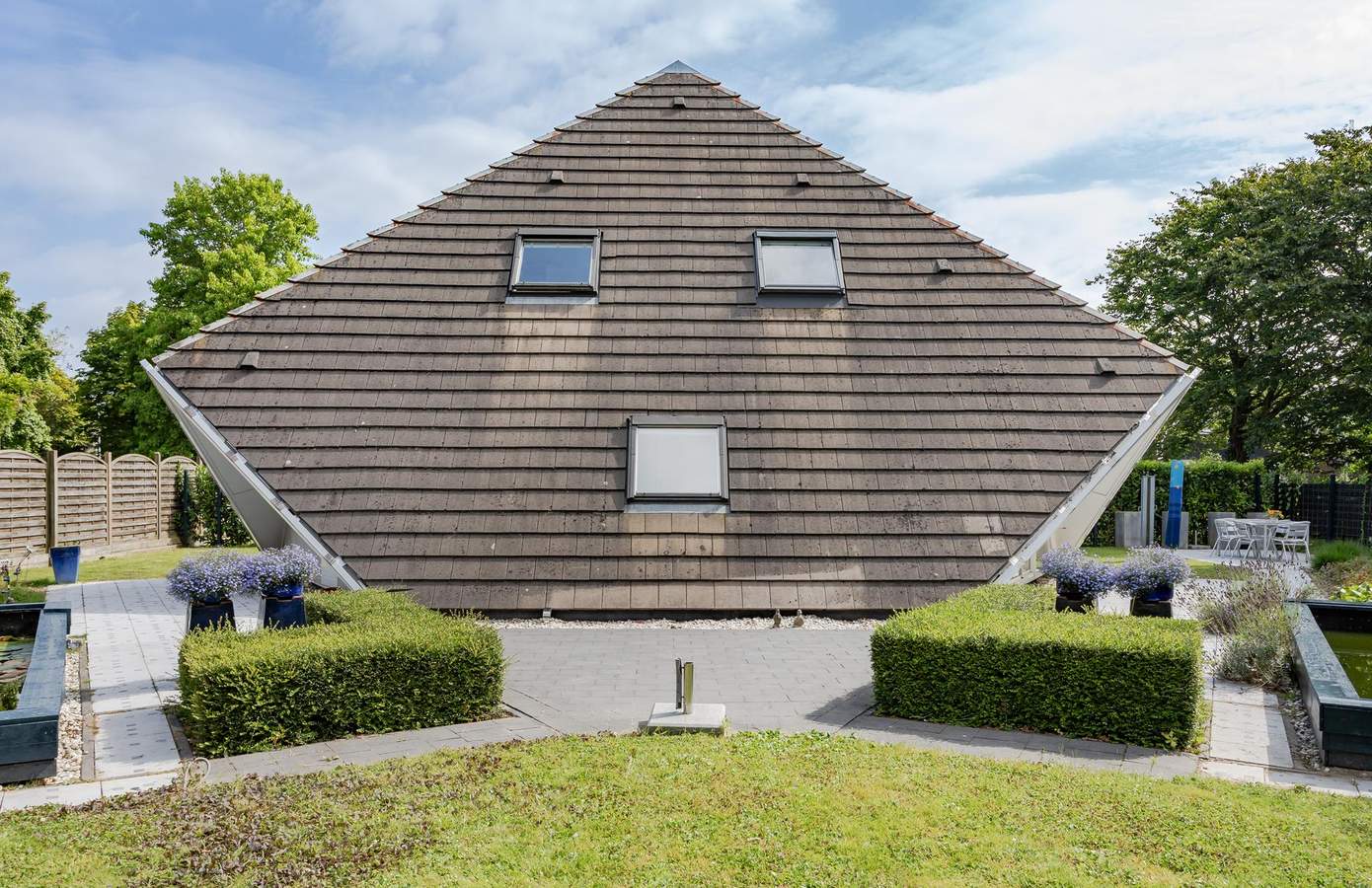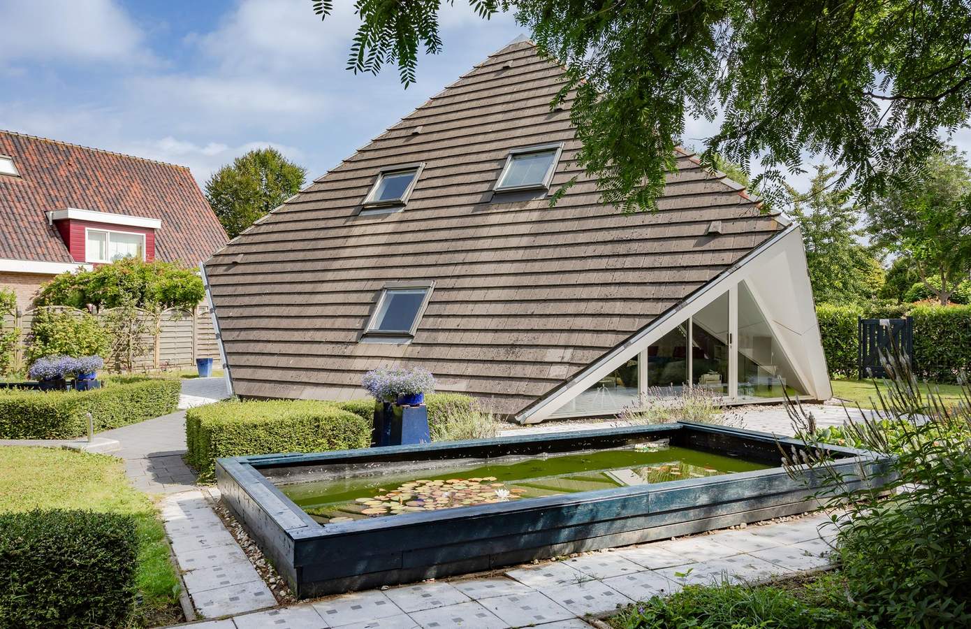 De architectuur van deze unieke woning in Middenmeer is gebaseerd op een strikt mathematisch ontwerp van een halve kubus. De structuur ontstaat door een kubus in twee gelijke delen te verdelen met een vlak dat loodrecht staat op een inwendige diagonaal. Het grondvlak van het huis is een regelmatige zeshoek, met drie gelijke dakvlakken en drie gelijkvormige driehoekige glazen puien.