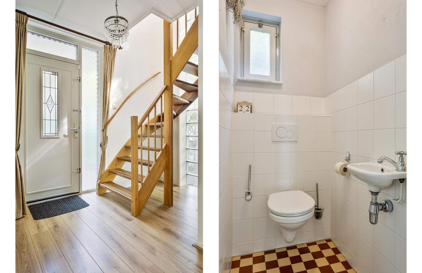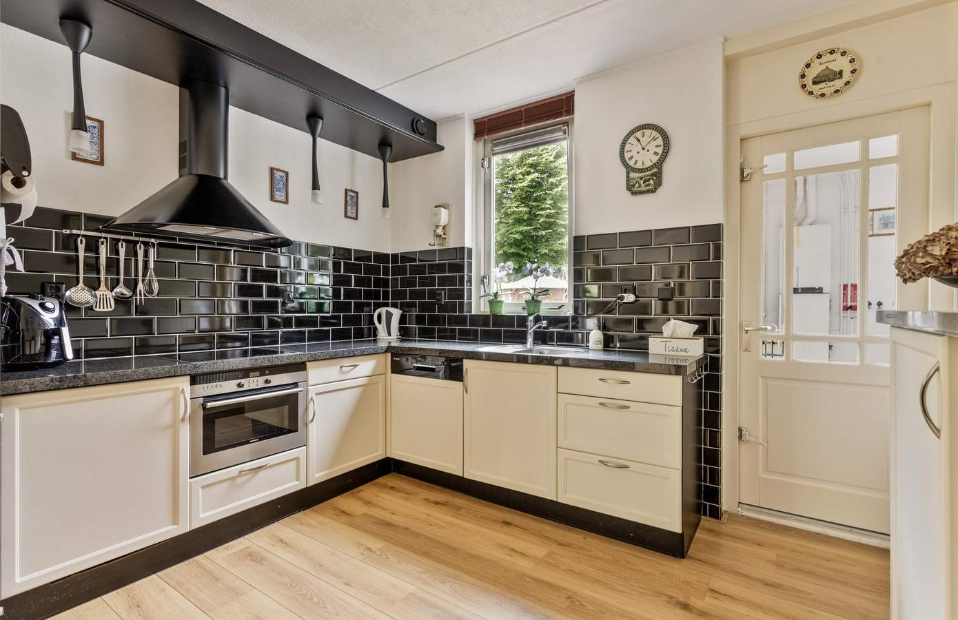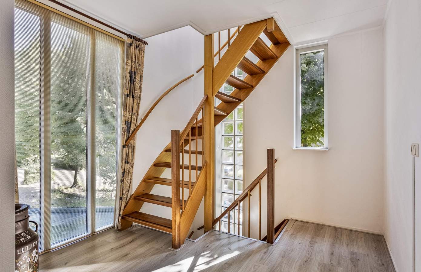 Bij binnenkomst via de voordeur wordt u verwelkomd in de hal. In deze ruime, lichtvolle hal vindt u de meterkast, het toilet, de trap naar de eerste verdieping en toegang tot de woonkamer. De woonkamer heeft veel ramen, waardoor er prachtig licht binnenkomt. De halfopen keuken is volledig uitgerust met een vaatwasser, combi-oven, inductiekookplaat en een koelkast. Vanuit de keuken heeft u tevens toegang tot de ruime bijkeuken met een vliering. Vanuit de bijkeuken bereikt u inpandig de garage, die voorzien is van een elektrische roldeur en ruimte biedt voor een auto, fietsen of als klusplek. Op de eerste verdieping bevindt zich een riante overloop met veel licht en ramen. Hier vindt u drie ruime slaapkamers en een badkamer. De masterbedroom, gelegen aan de achterzijde van de woning met uitzicht op de tuin, heeft eigen toegang tot de badkamer. Ook de zolder is een ruime en aangename plek, met de mogelijkheid om een vierde slaapkamer te realiseren.