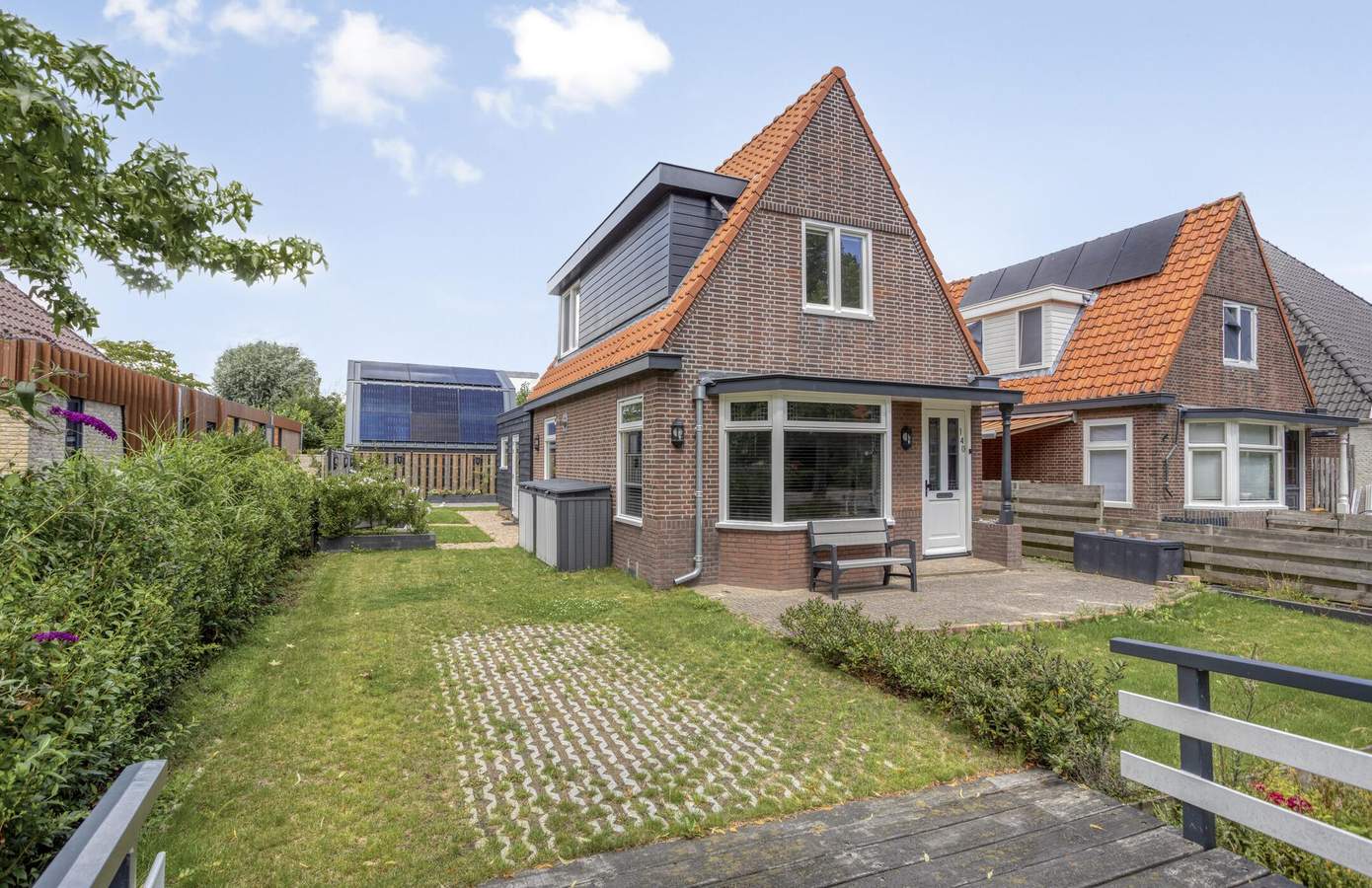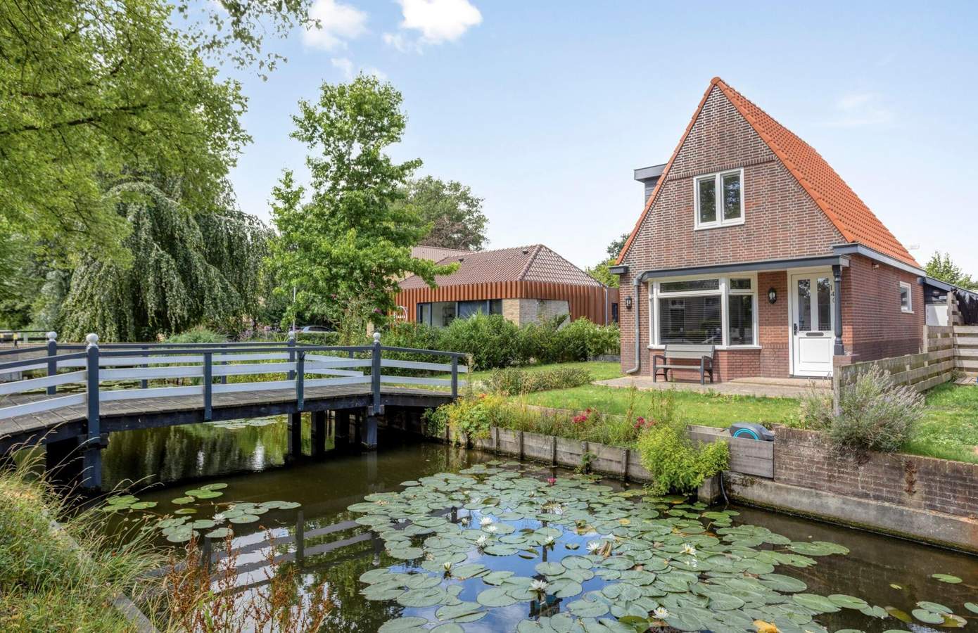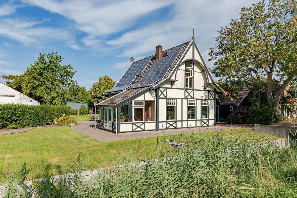 Ook buiten is het volop genieten. Het perceel is bereikbaar via een eigen brug en ligt aan de voorzijde aan het water, de karakteristieke voorsloot die zo kenmerkend is voor het dorpsbeeld van Nieuwe Niedorp. Aan de zijkant van de woning vindt u een zonnig terras met zuidwestelijke ligging en een verzorgd gazon. Vanuit de tuin heeft u toegang tot het multifunctionele bijgebouw, dat momenteel in gebruik is als werk-/hobbyruimte. Volledig geïsoleerd en voorzien van eigen voorzieningen biedt dit gebouw talloze mogelijkheden: van praktijkruimte tot atelier of extra slaapkamer.