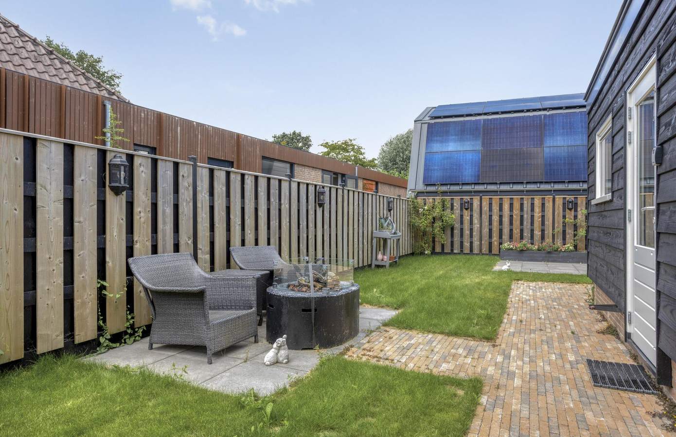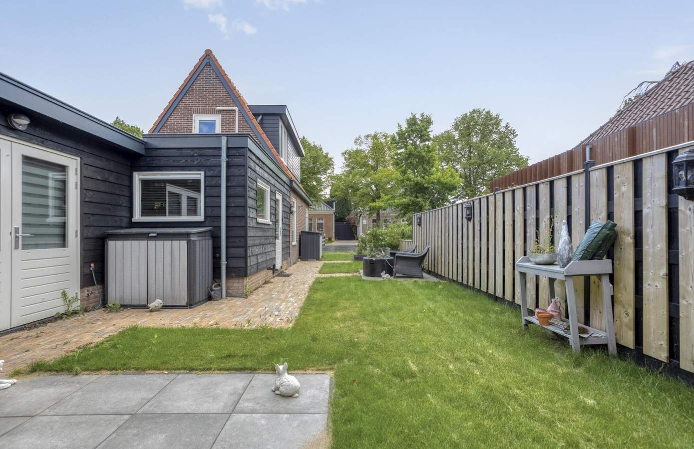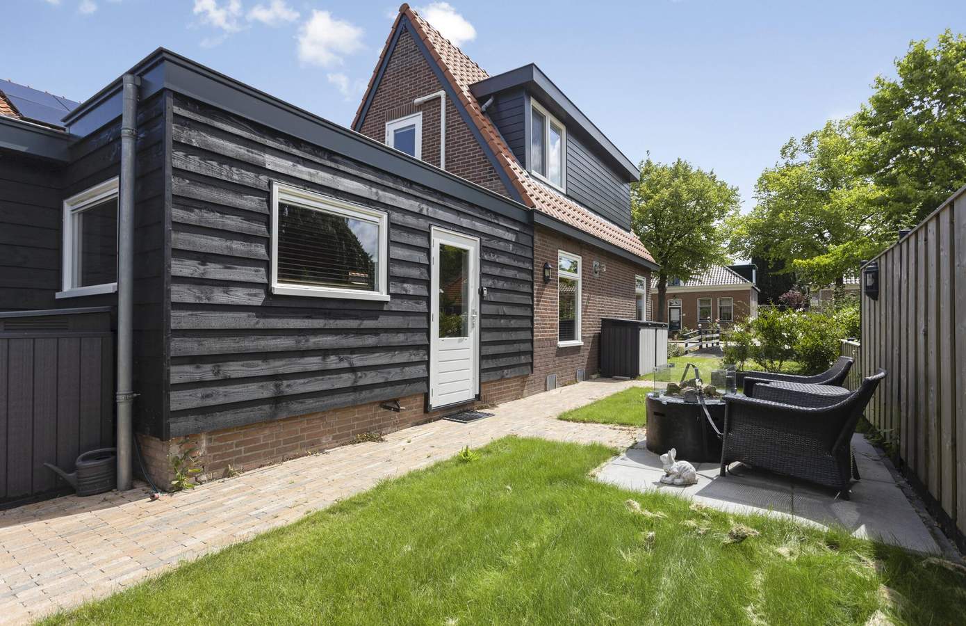 Ook buiten is het volop genieten. Het perceel is bereikbaar via een eigen brug en ligt aan de voorzijde aan het water, de karakteristieke voorsloot die zo kenmerkend is voor het dorpsbeeld van Nieuwe Niedorp. Aan de zijkant van de woning vindt u een zonnig terras met zuidwestelijke ligging en een verzorgd gazon. Vanuit de tuin heeft u toegang tot het multifunctionele bijgebouw, dat momenteel in gebruik is als werk-/hobbyruimte. Volledig geïsoleerd en voorzien van eigen voorzieningen biedt dit gebouw talloze mogelijkheden: van praktijkruimte tot atelier of extra slaapkamer.