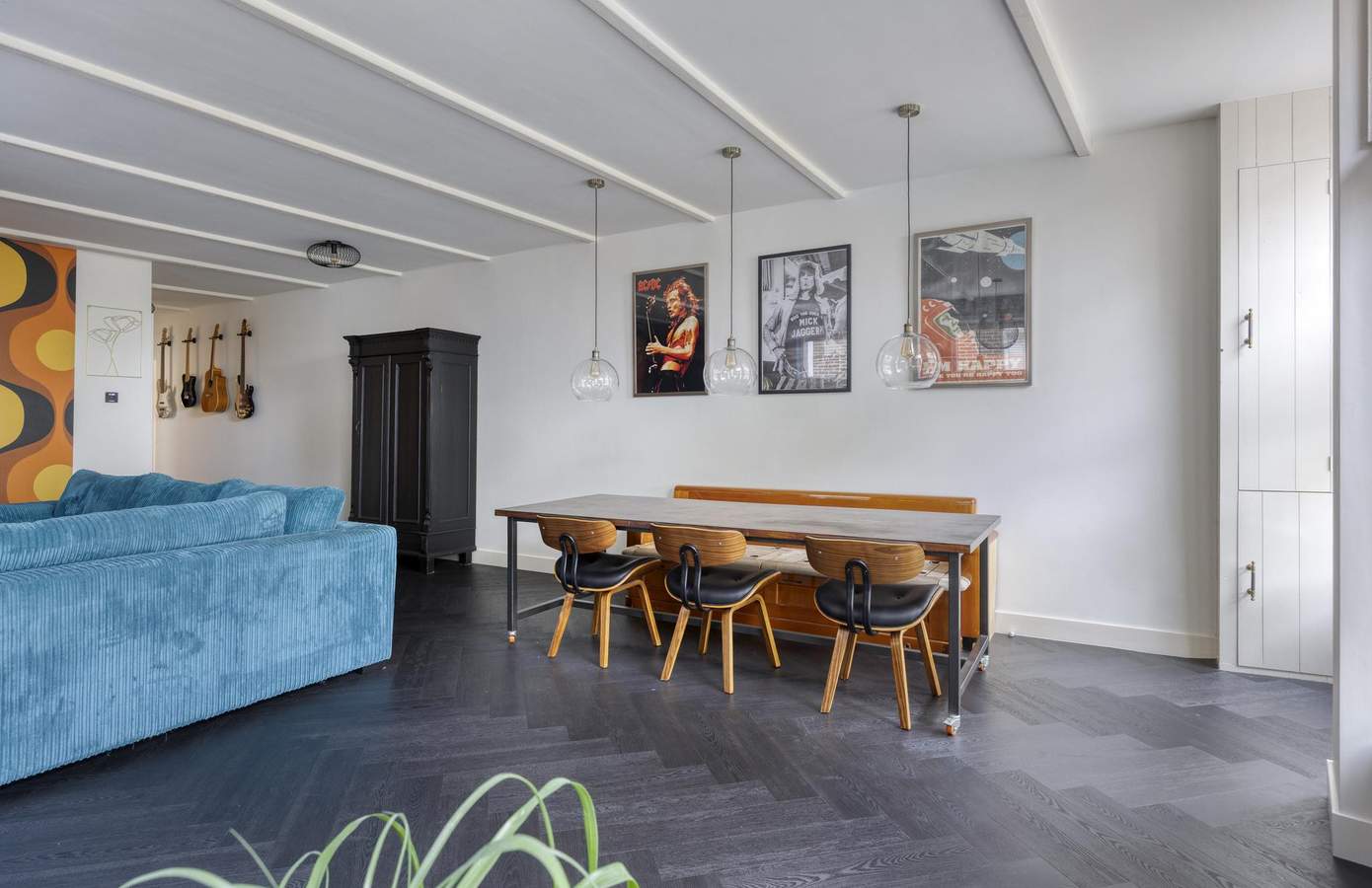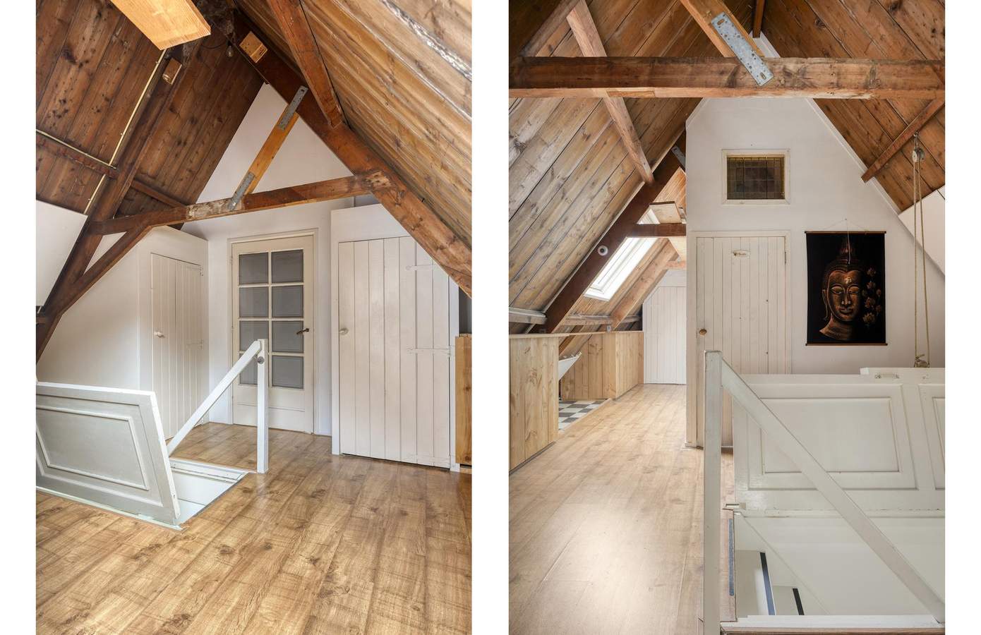 Zodra u de robijnrode voordeur opent, ervaart u de warme sfeer die dit huis eigen is. De hoge ramen met boogvormige kozijnen zorgen voor een prachtige lichtinval in de woonkamer, waar een sfeervolle en onderhoudsvriendelijke PVC-vloer en een strak gestuct plafond elkaar versterken. Aan de voorzijde van de woning bevindt zich de zitkamer met zicht op de Dorpsstraat. Voor wie thuiswerkt of behoefte heeft aan een slaapkamer op de begane grond, is er vanuit de woonkamer toegang tot de multifunctioneel te gebruiken kamer. De open keuken aan de achterzijde is modern uitgevoerd, met eigentijdse kleuraccenten, een inductiekookplaat, combi oven, vaatwasmachine en een afzuigkap. Vanuit de keuken bereikt u de bijkeuken waar ook de toegang tot het toilet en de badkamer zijn. In de badkamer, is een douche, wastafelmeubel en de aansluitingen voor de wasmachine en droger. In de bijkeuken hangt ook de cv-ketel en de deur naar de achtertuin. Op de verdieping zorgen de houten spanten en het zichtbare dakbeschot voor een rustieke, bijna loftachtige sfeer. De overloop verbindt drie slaapkamers, waarvan de grootste aan de achterzijde is gelegen. Op de verdieping is veel opbergruimte in de diverse vaste kasten op de verdieping.